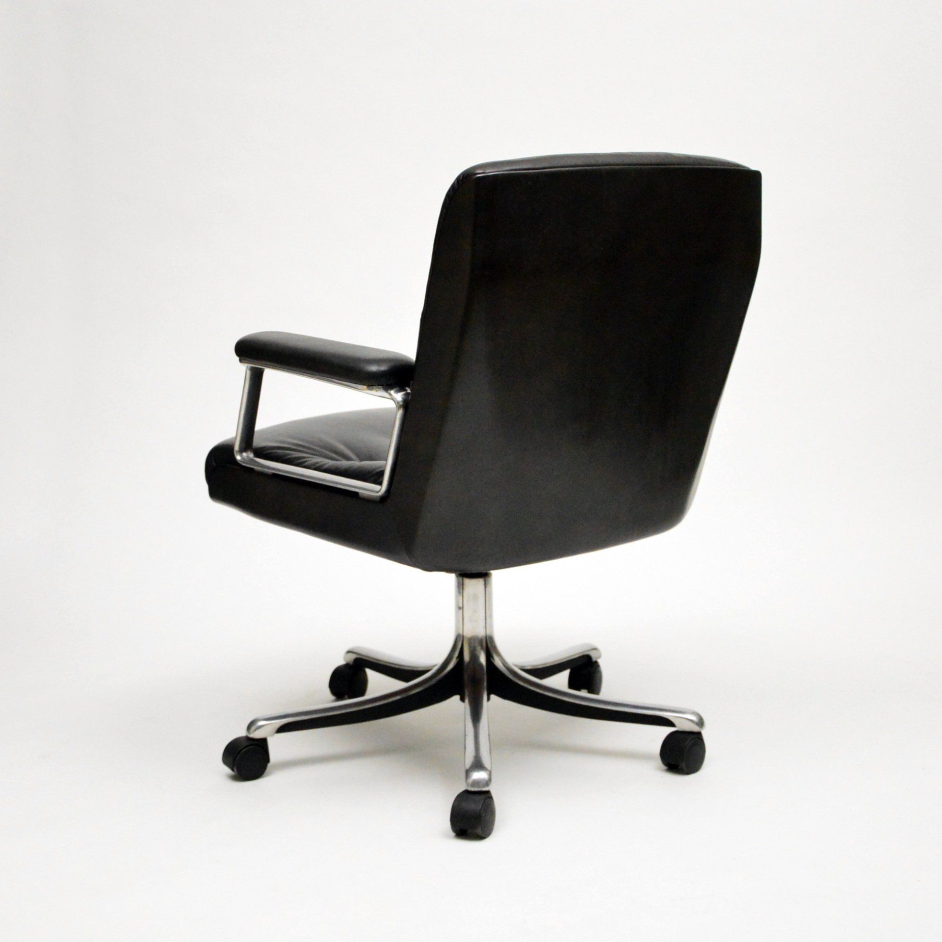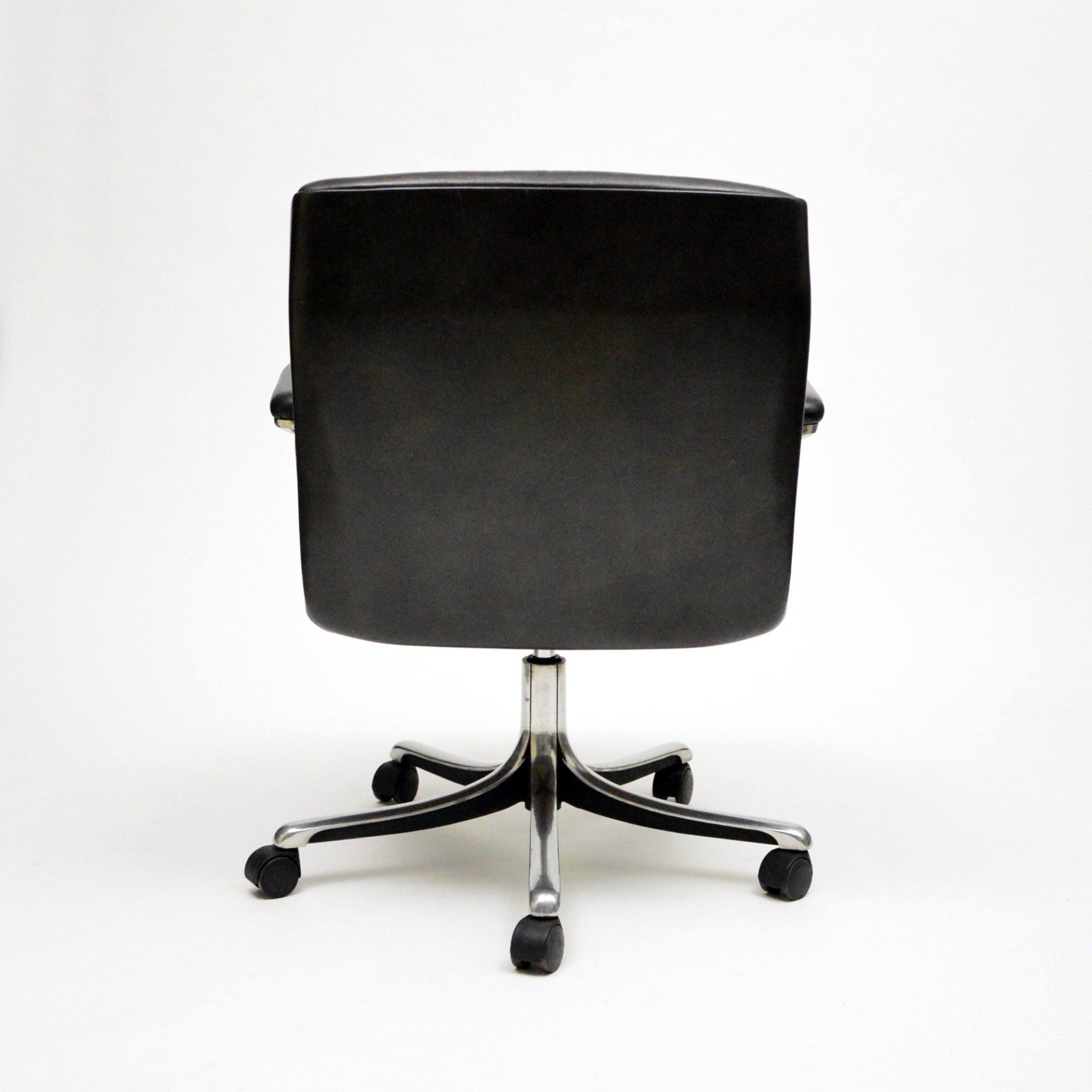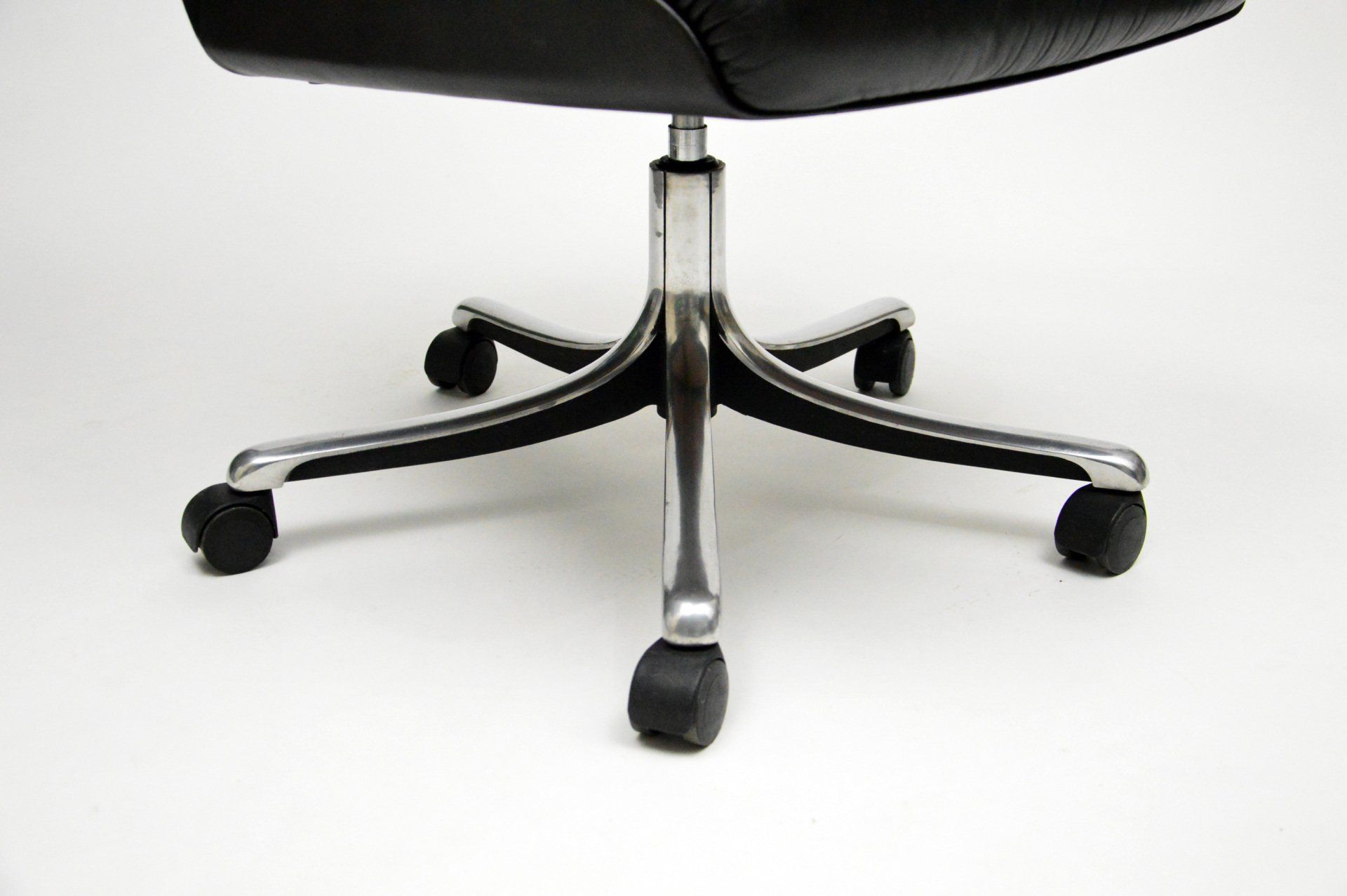 The P126 armchair was designed in the 1960s by Osvaldo Borsani for Tecno. This version is made of leather, is swivel, has wheels but is not adjustable in height.