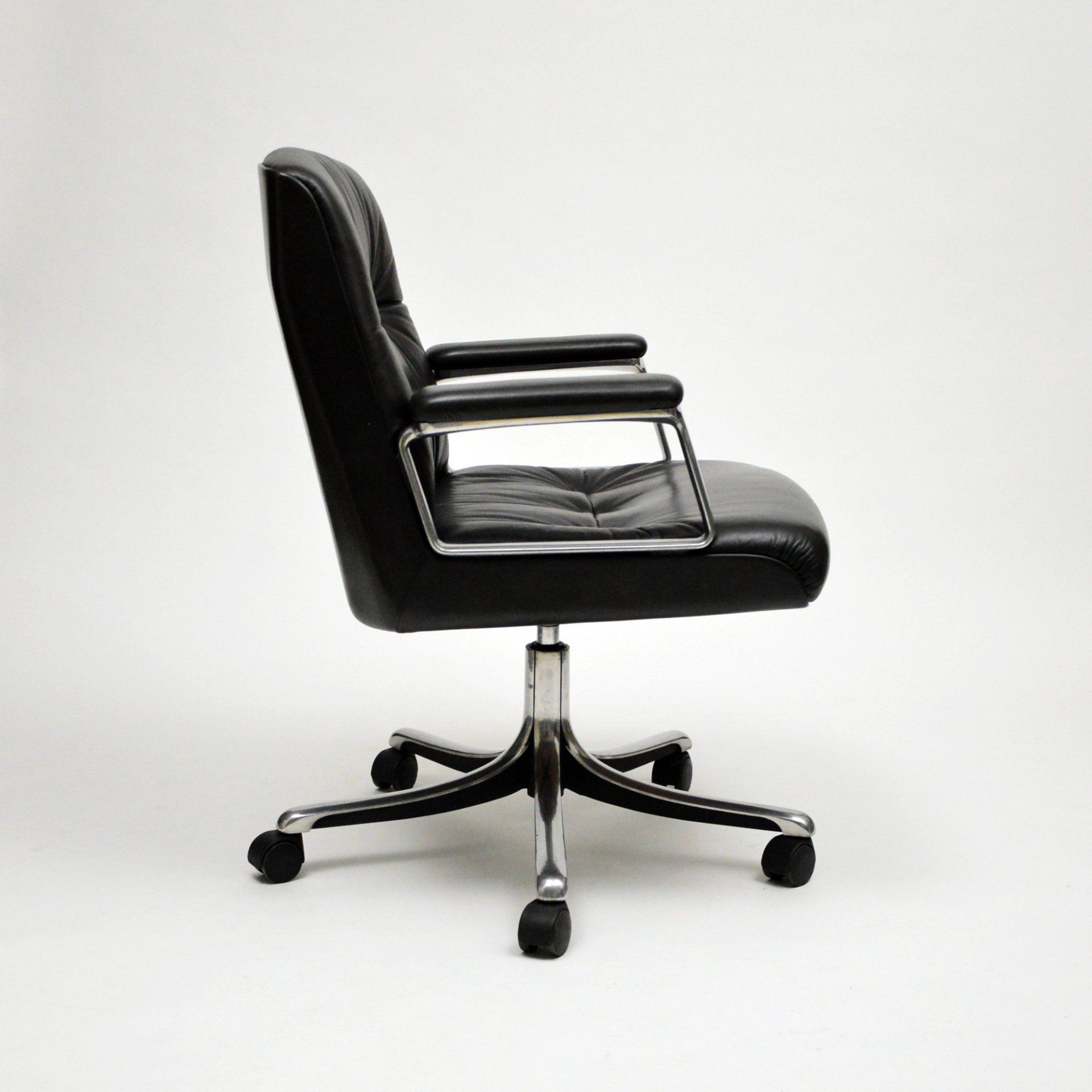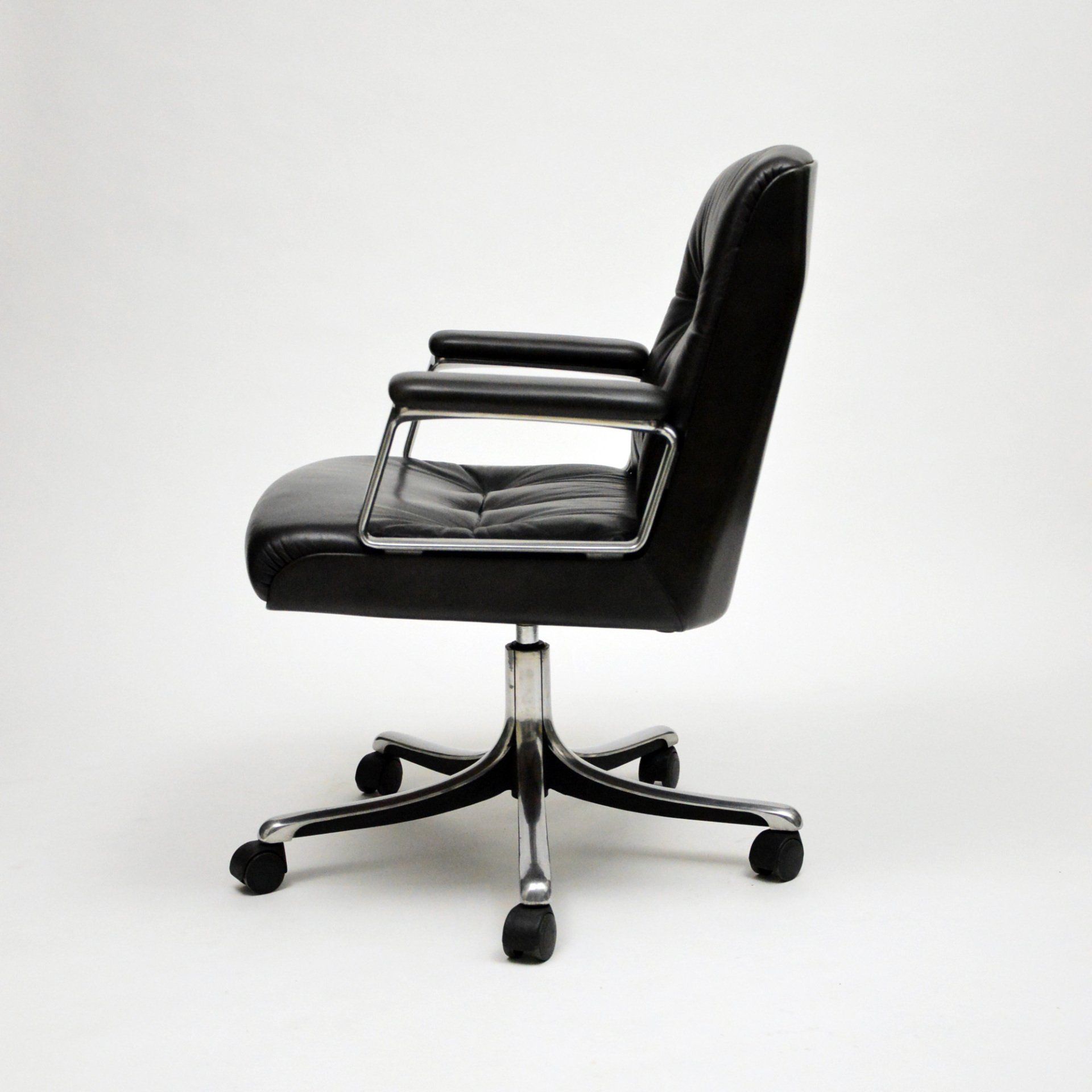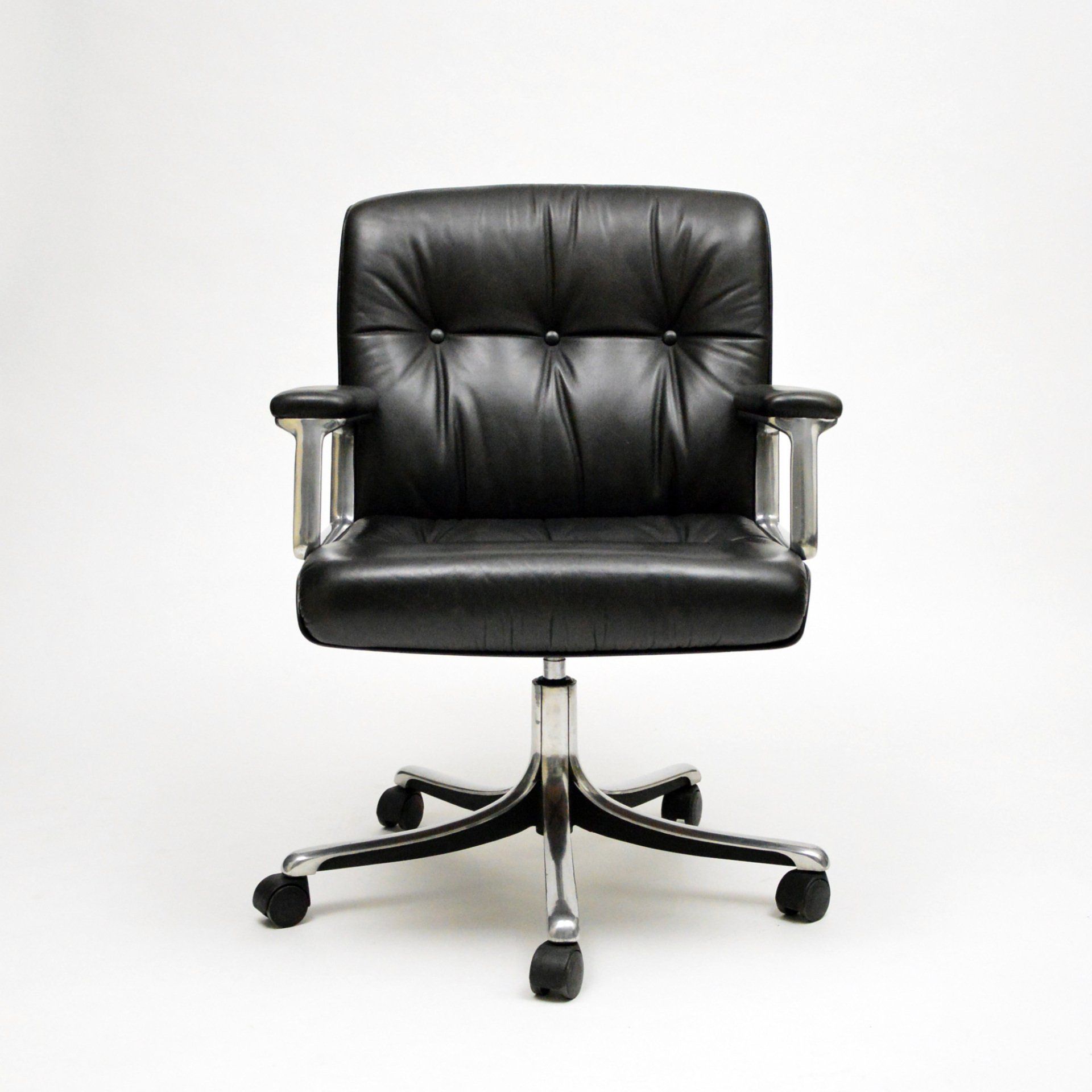 The P126 armchair was designed in the 1960s by Osvaldo Borsani for Tecno. This version is made of leather, is swivel, has wheels but is not adjustable in height.