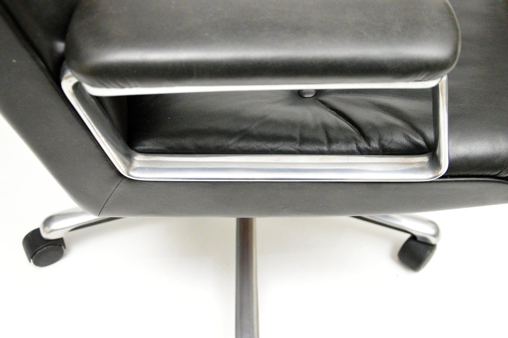 The armchair has been completely disassembled, the aluminium parts polished and the leather cleaned and nourished.The armchair has a scratch on the right armrest (superficial) and has a couple of light marks on the backrest as can be seen in the photos. These imperfections are reported purely as a matter of conscientiousness because the armchair is in excellent condition.
