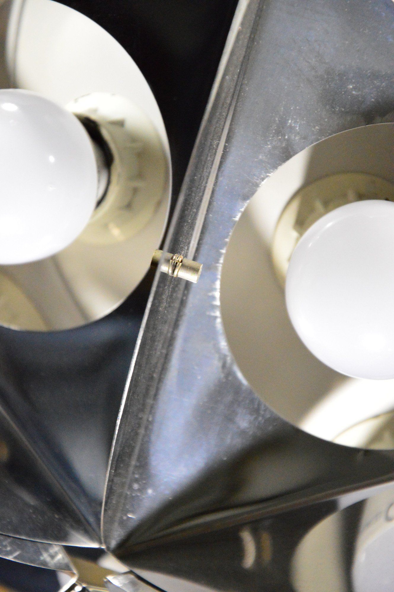 Trio of chromed metal spotlights produced by the german company Staff and designed by Rolf Krüger in 1966.