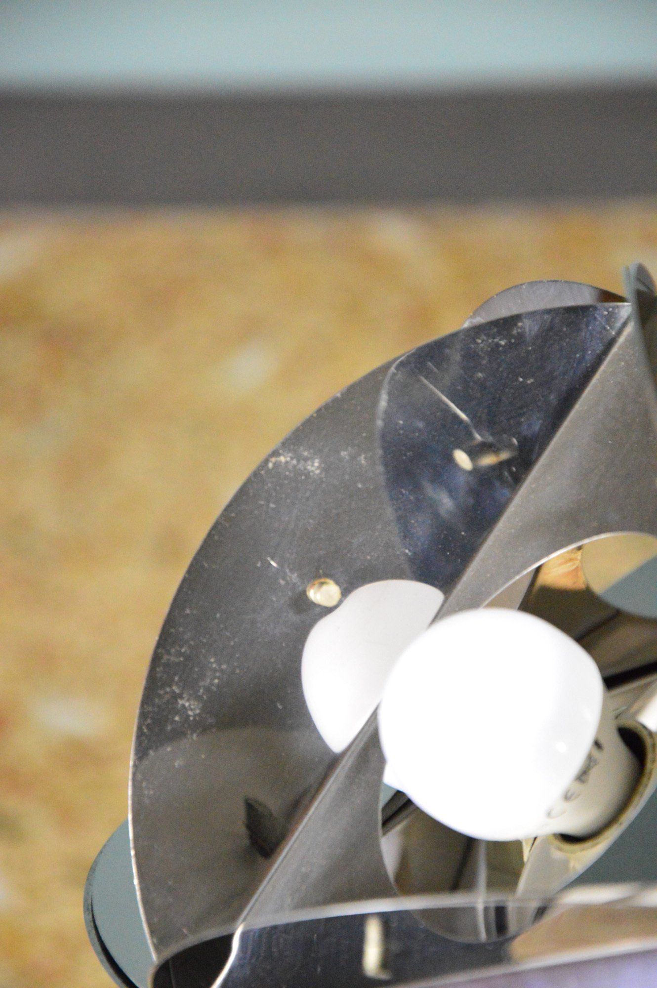 The lamp is in good condition, there are three small holes on the metal top cap, the reason for which is unclear - cm 60øx90h