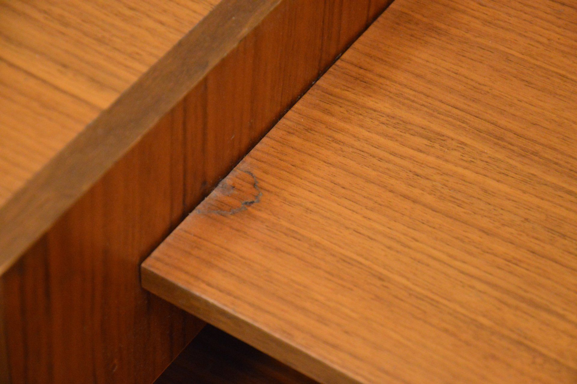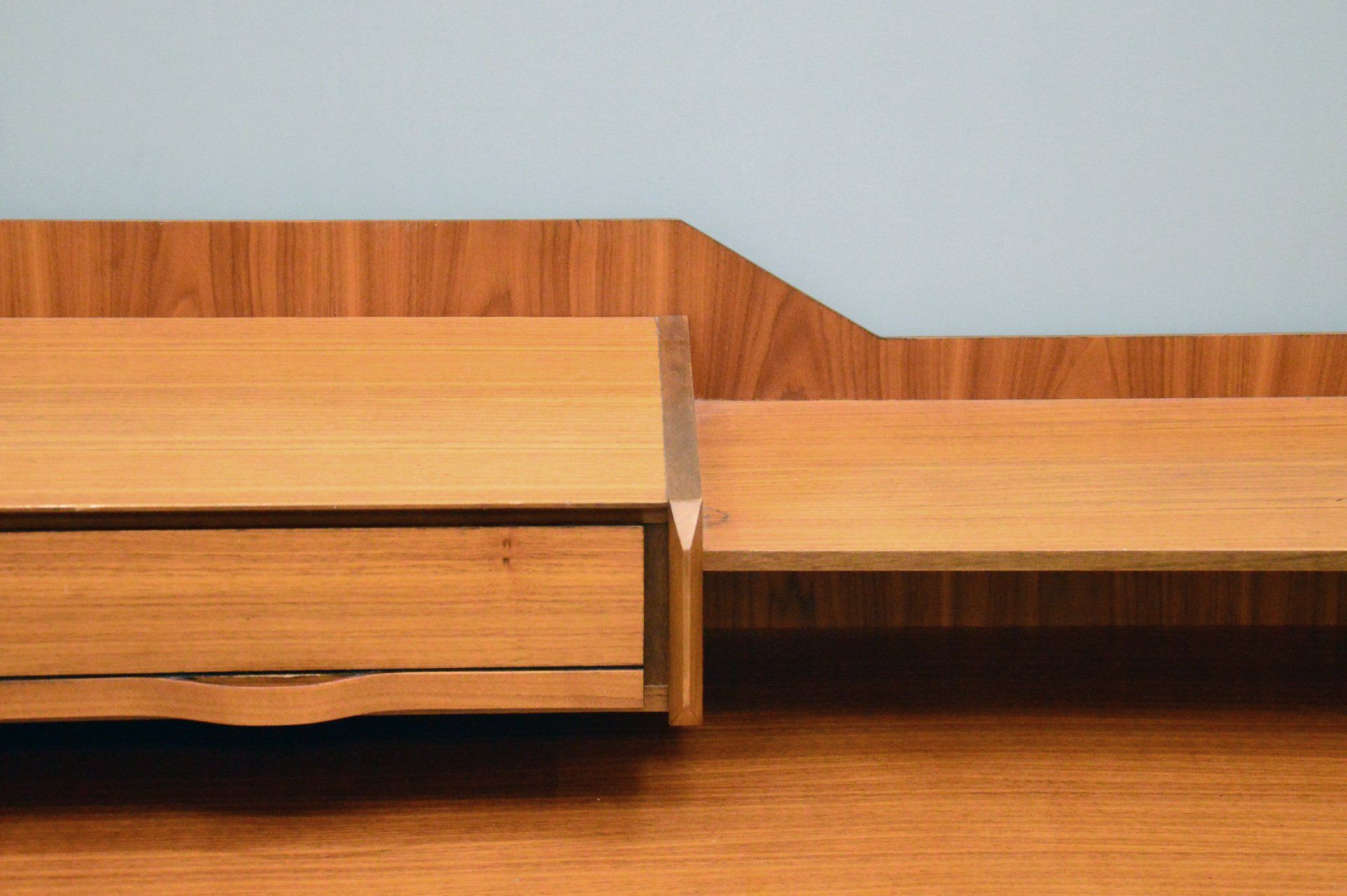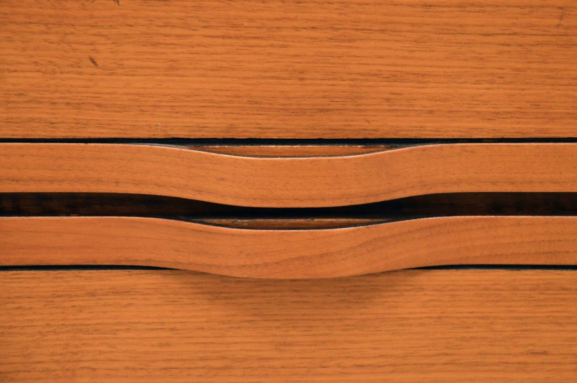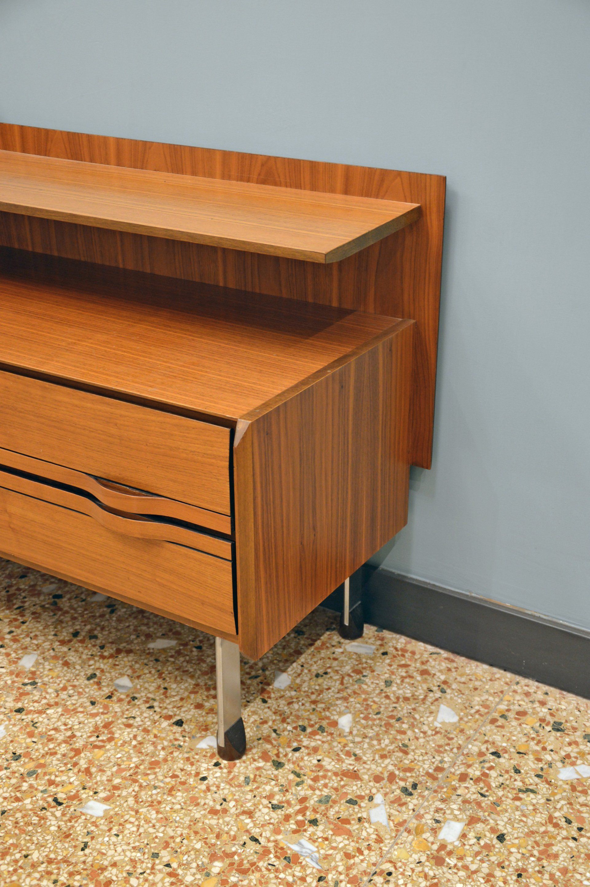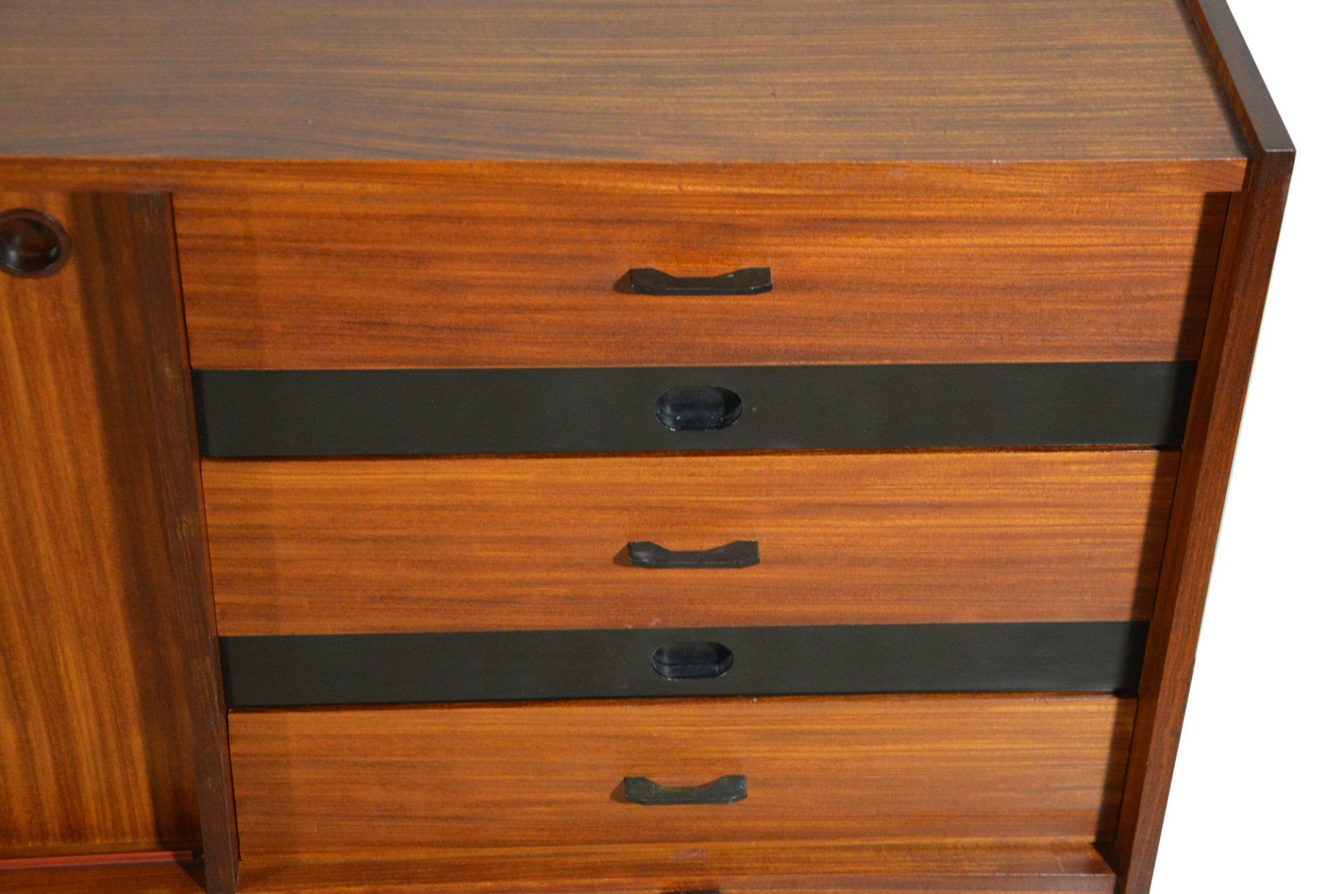 Teak sideboard or chest of drawers produced in the 1960s by La Sorgente dei Mobili in Arosio. The piece of furniture lends itself to various uses, both in the bedroom and in the living room also as a TV stand. The sideboard is in good condition, the item has no defects but shows slight traces of wear. A light mark is visible on one of the shelves- cm 73hx185x45