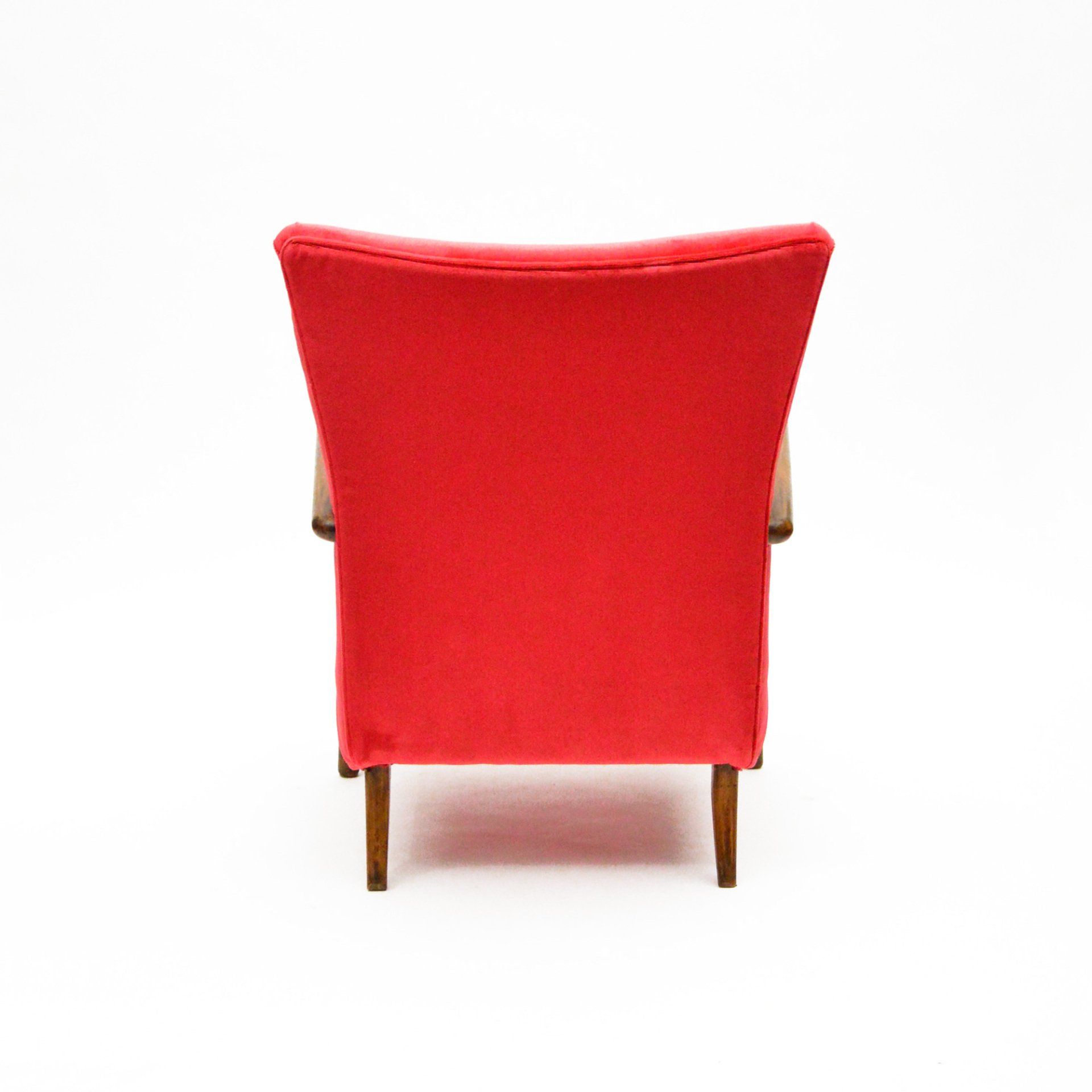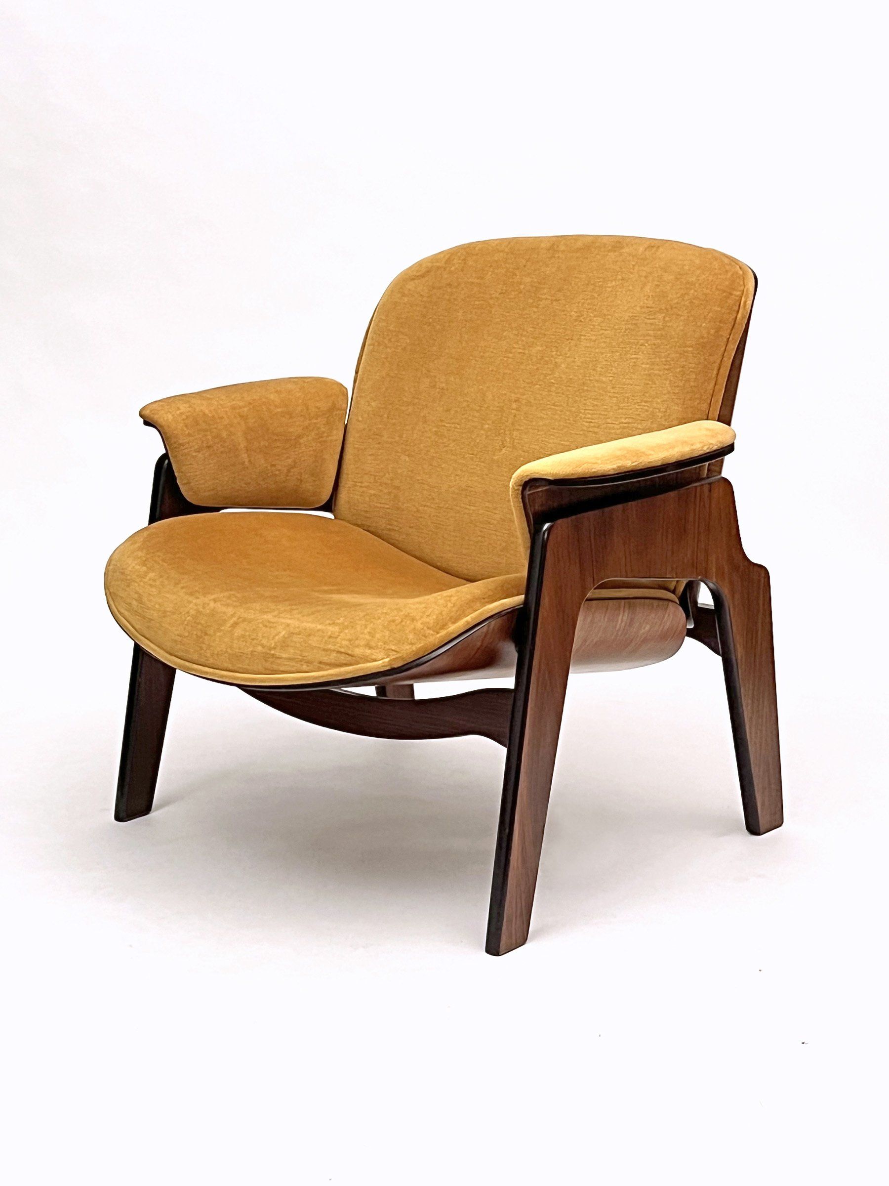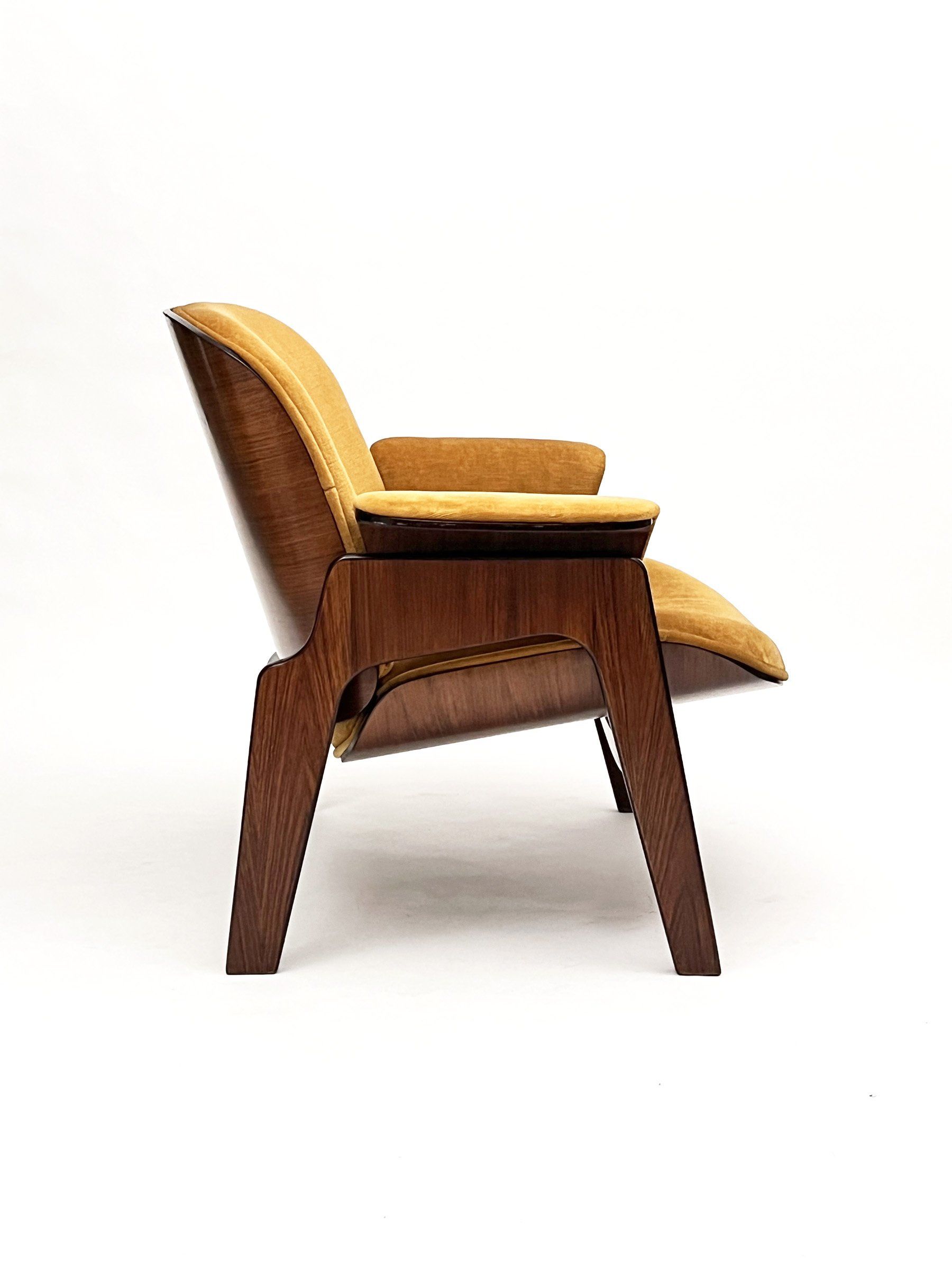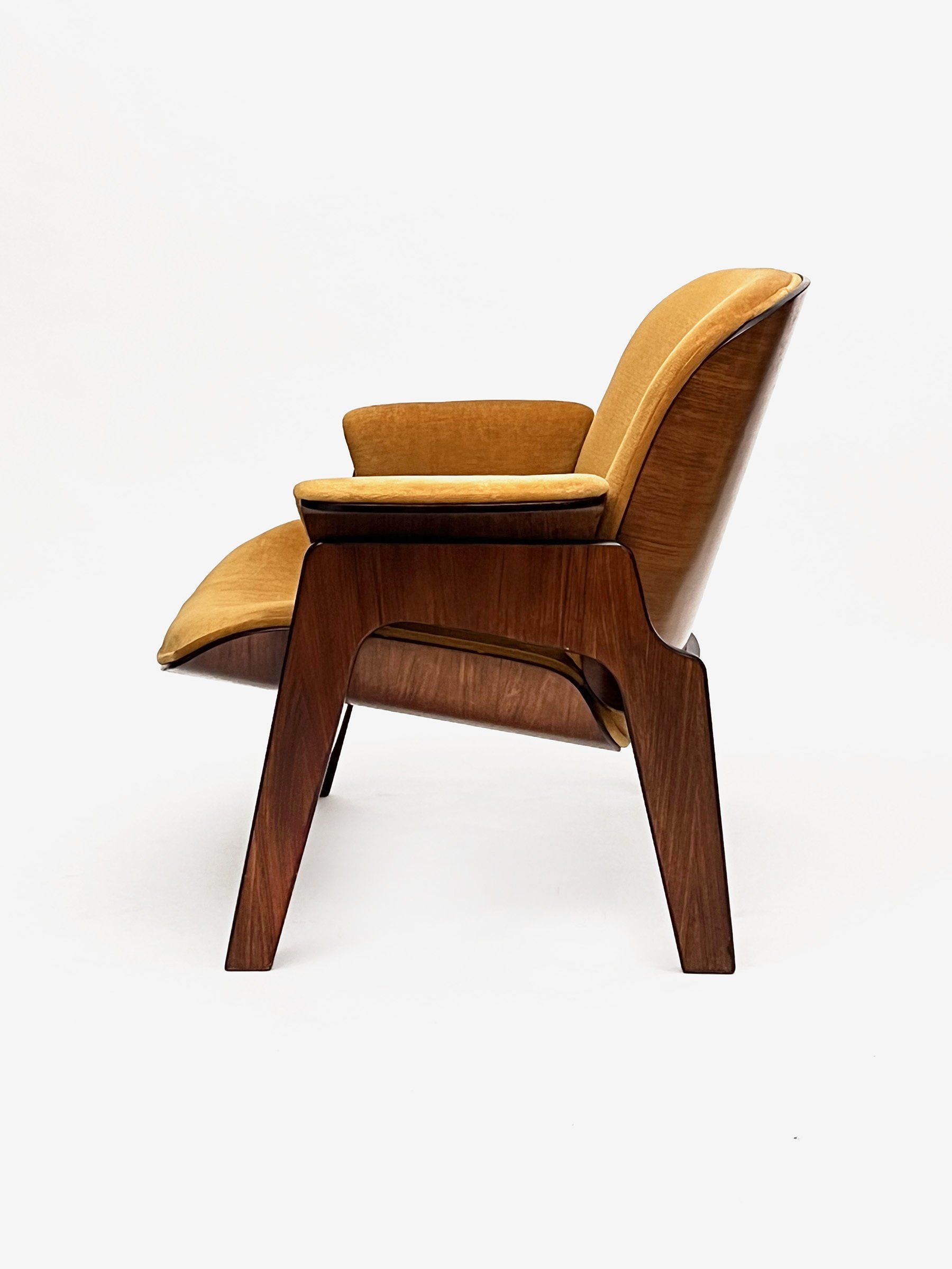A 1960s armchair designed by Ico Parisi for MIM Roma, made of curved plywood and velvet.