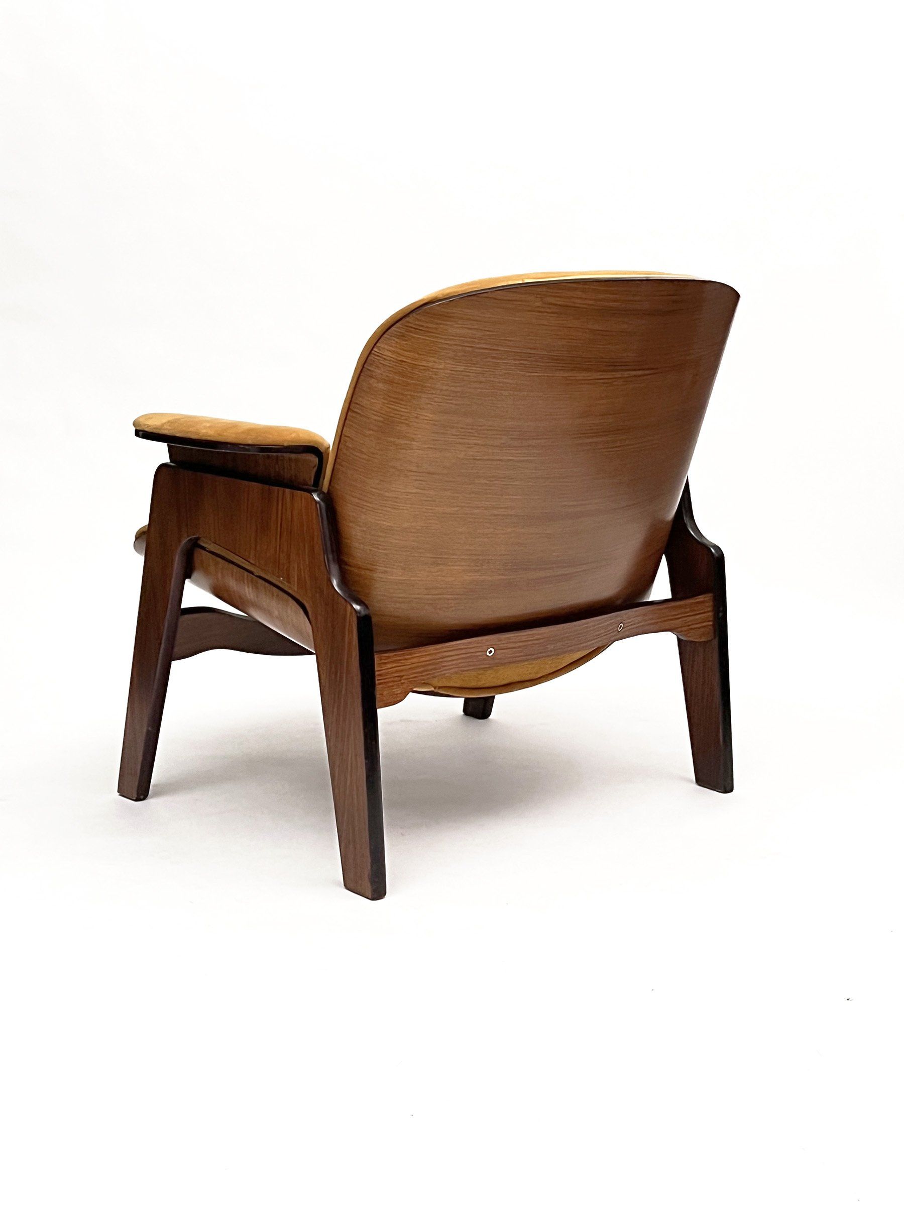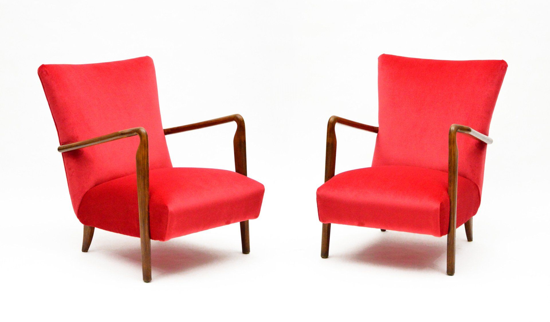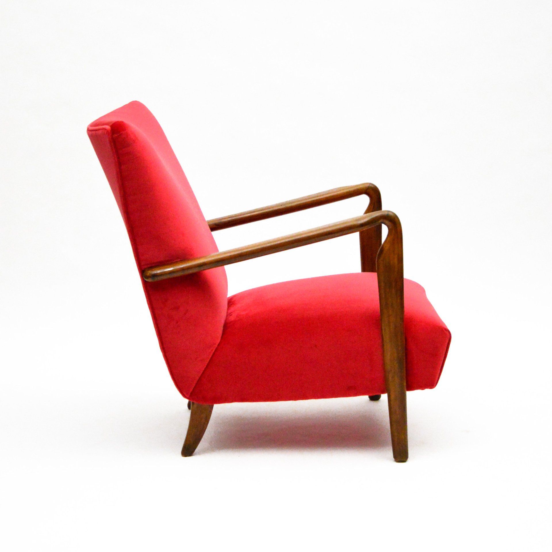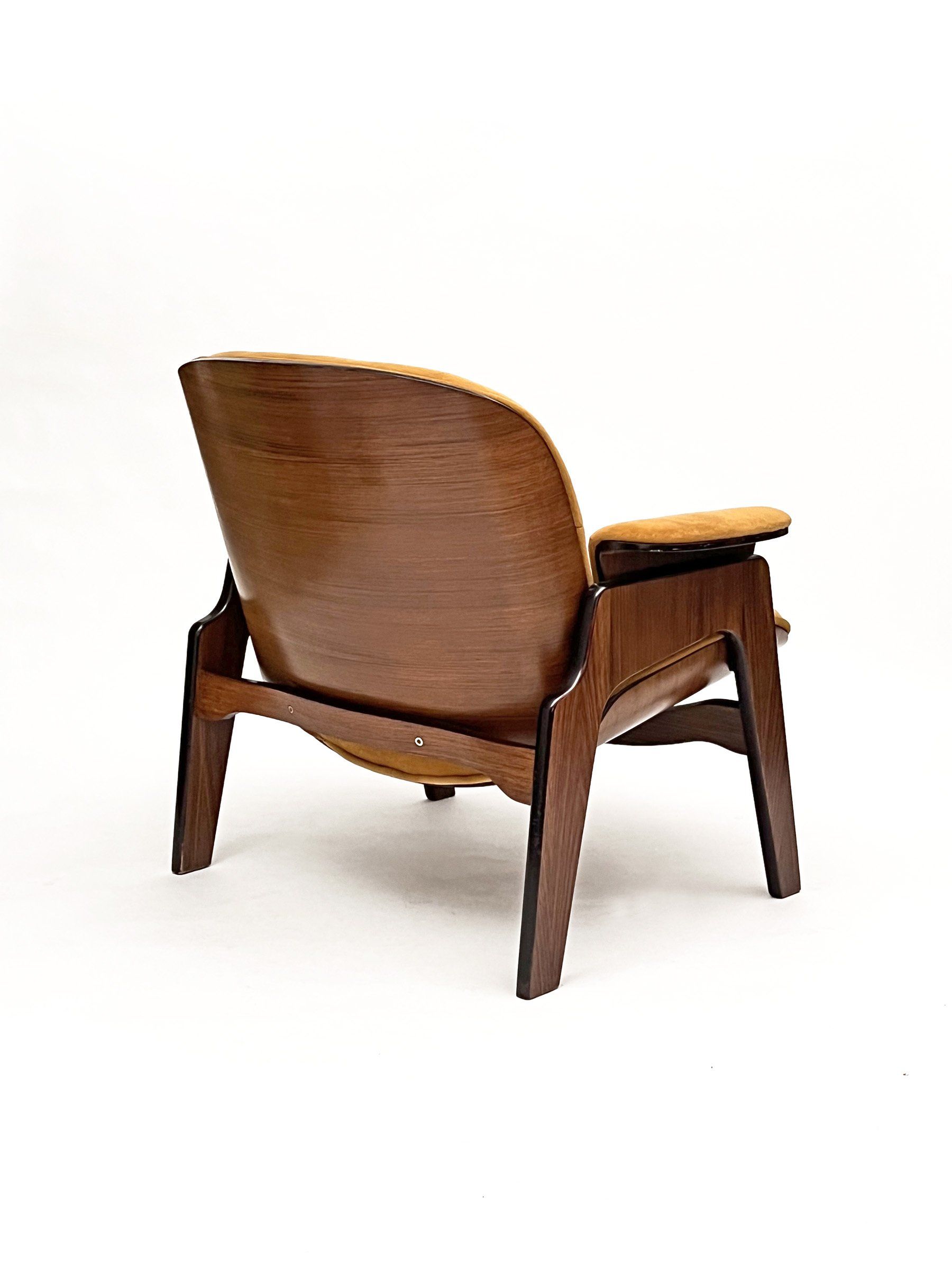 A 1960s armchair designed by Ico Parisi for MIM Roma, made of curved plywood and velvet.