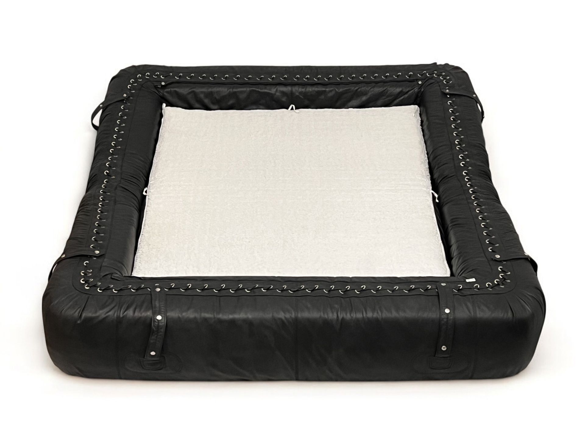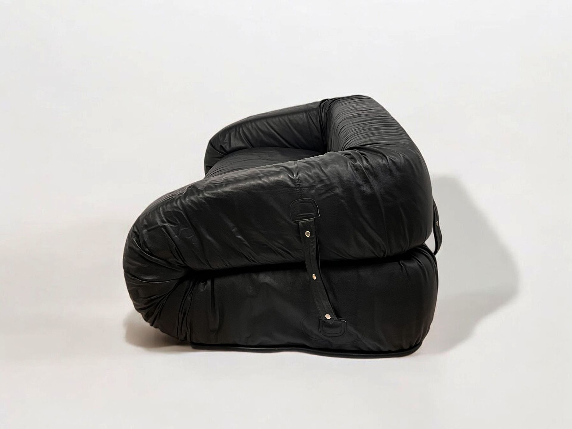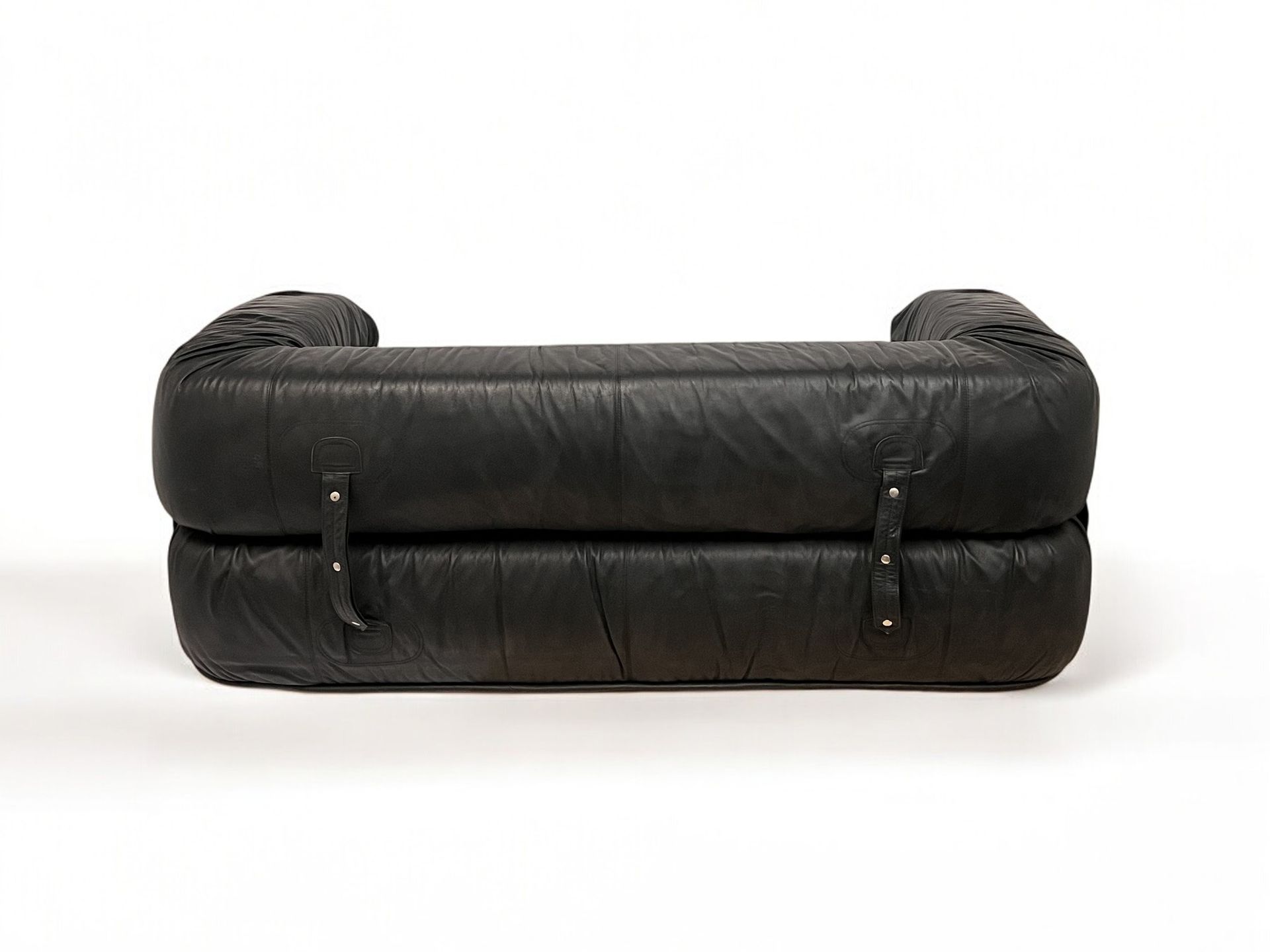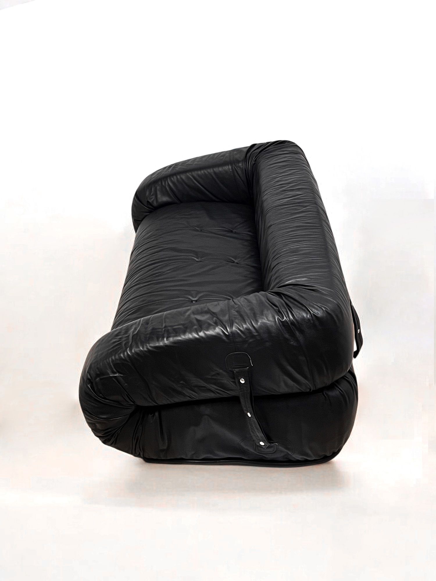 Anfibio sofa in black leather by Alessandro Becchi for Giovannetti 1970