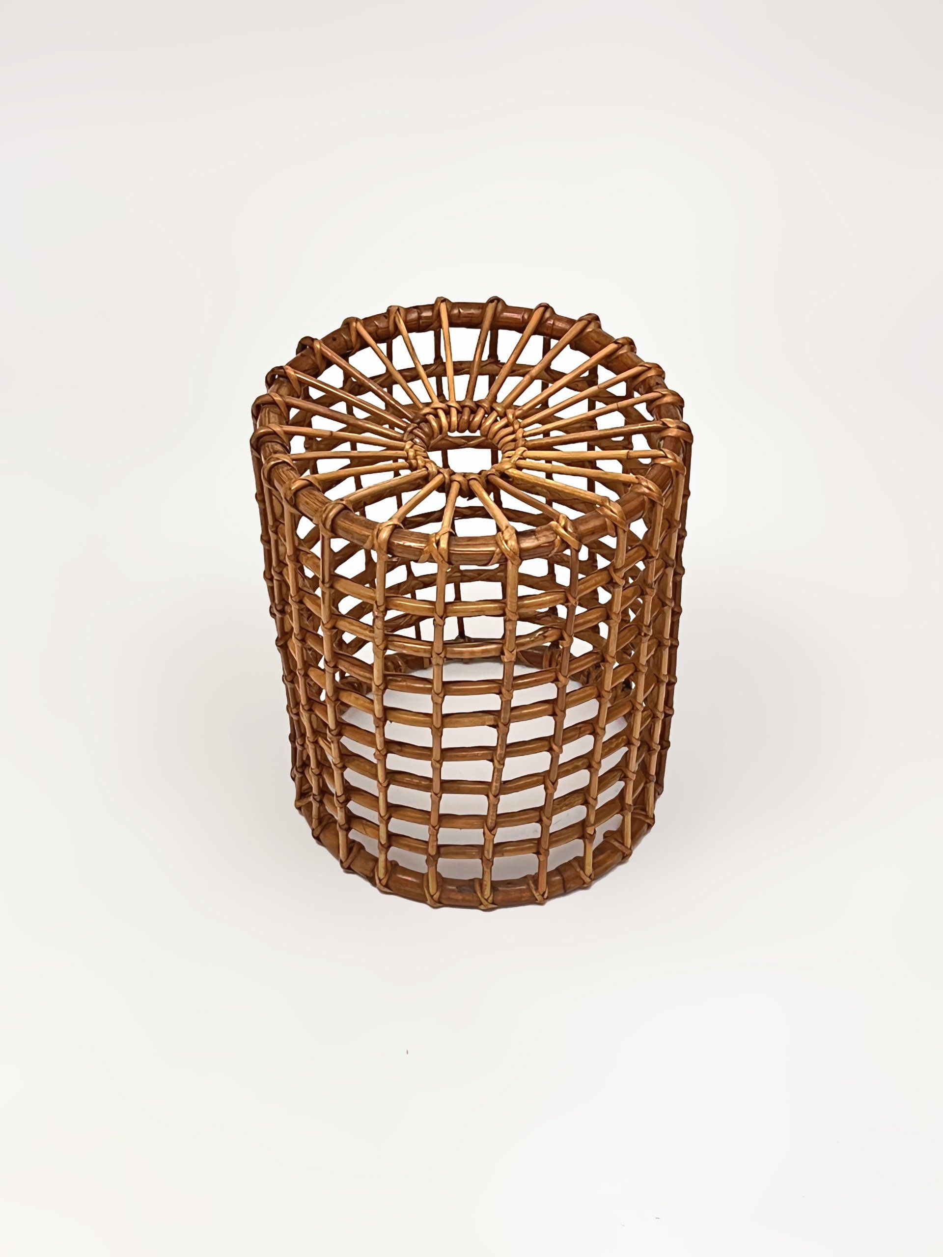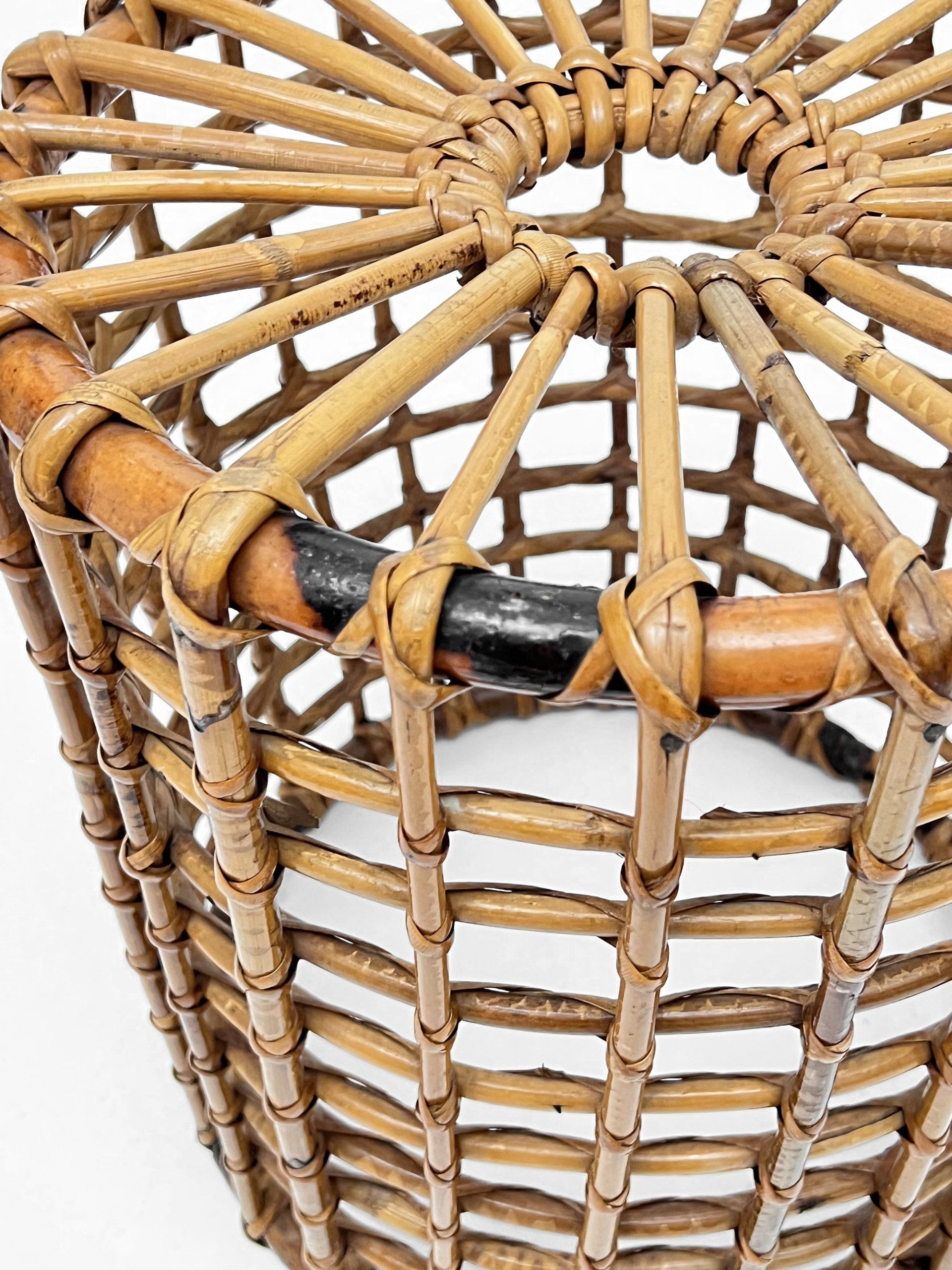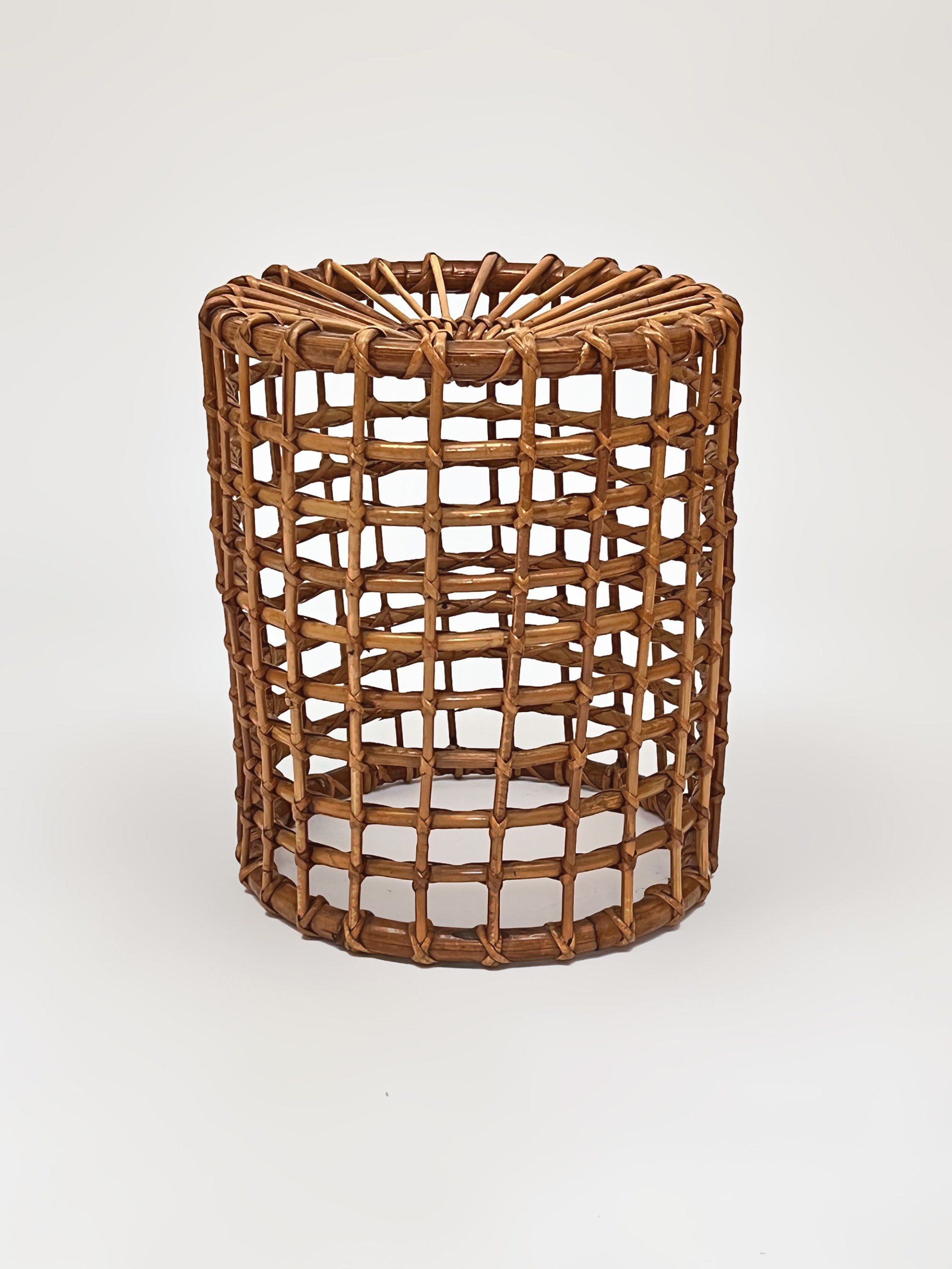 The condition is very good, one of the stools has some minor repairs to the base and some more pronounced marks in the wicker, the latter due to the nature of the material.
