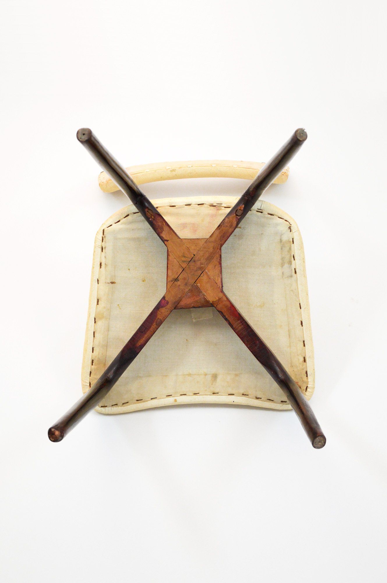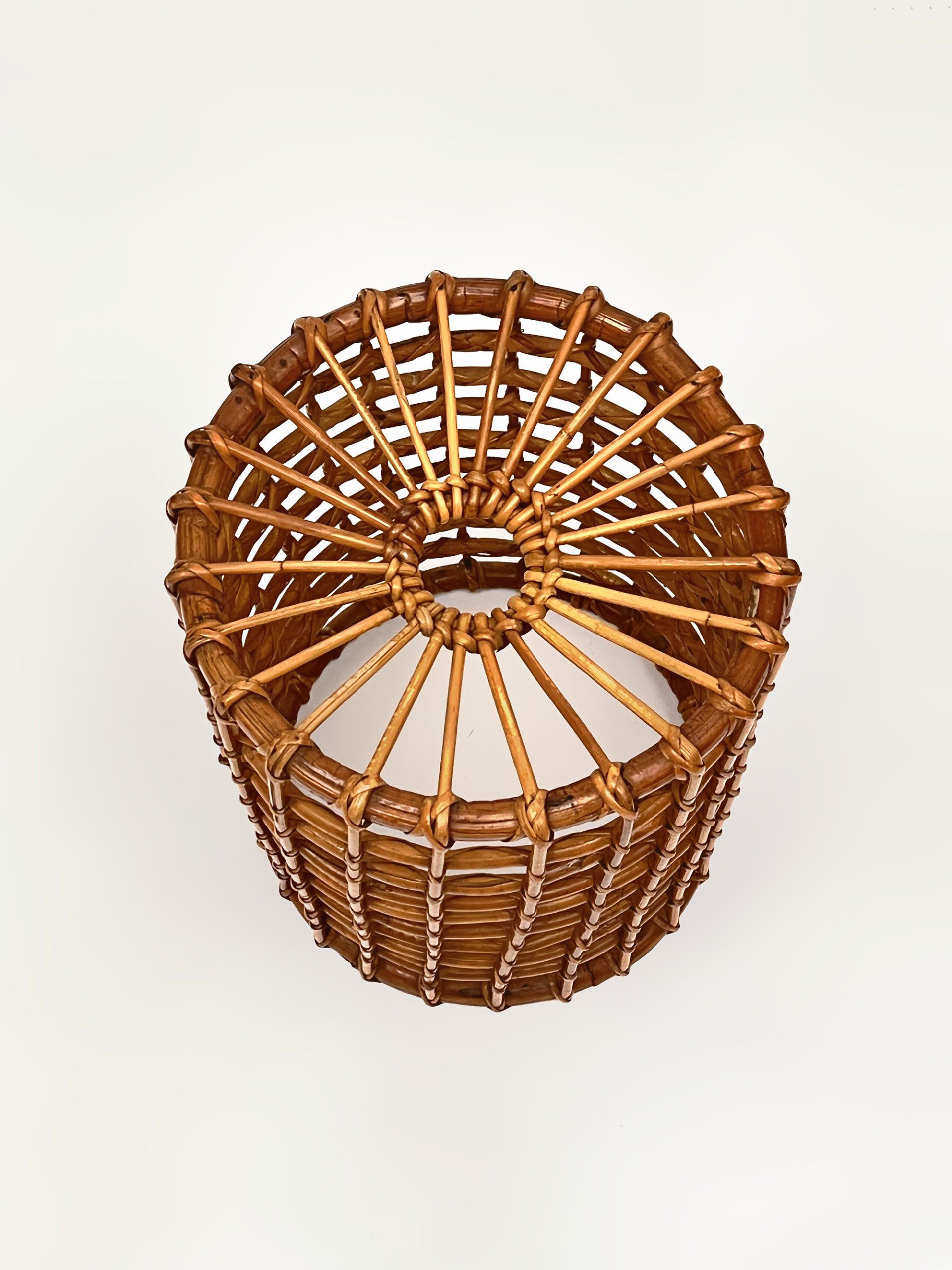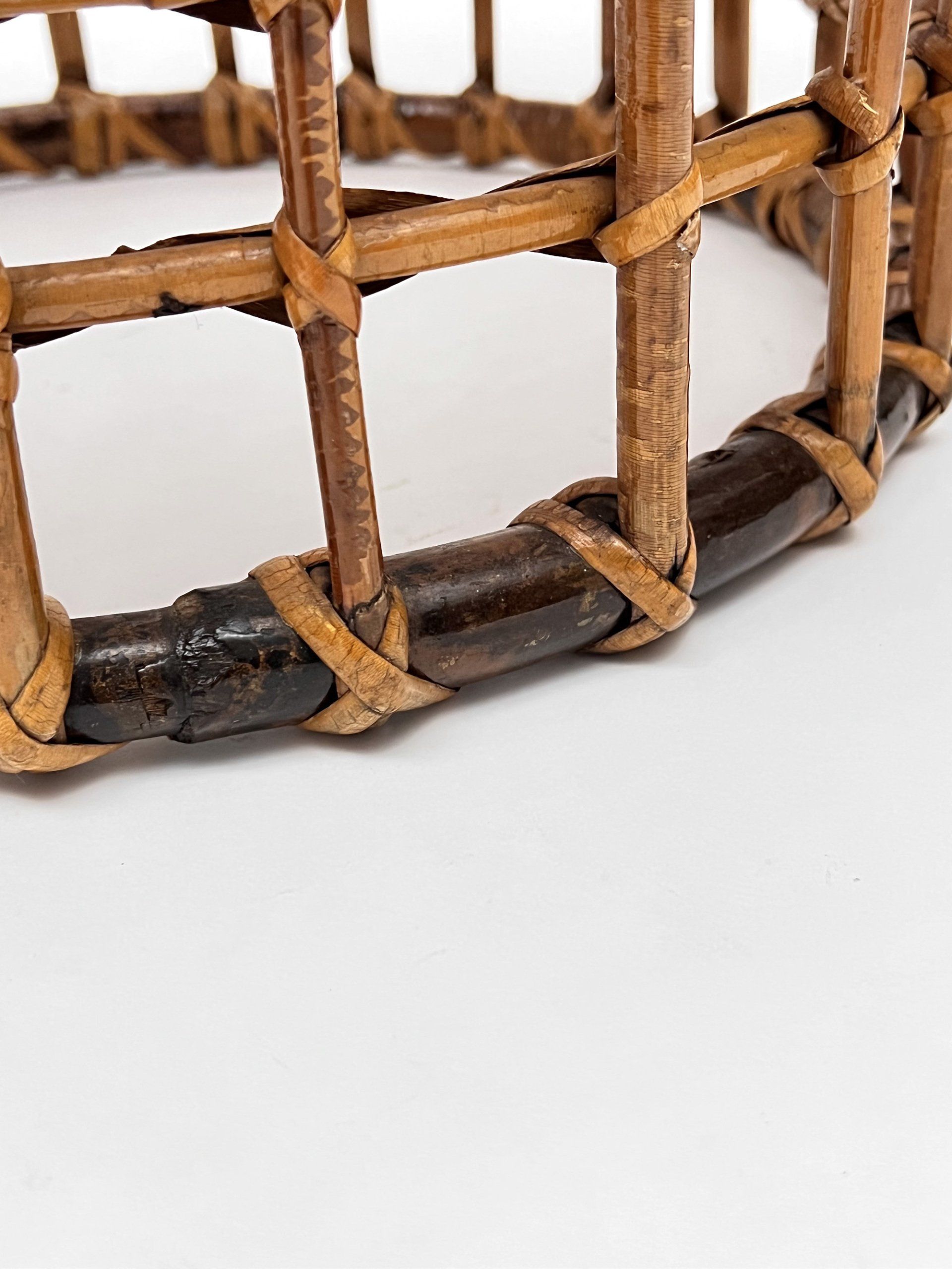 The condition is very good, one of the stools has some minor repairs to the base and some more pronounced marks in the wicker, the latter due to the nature of the material.