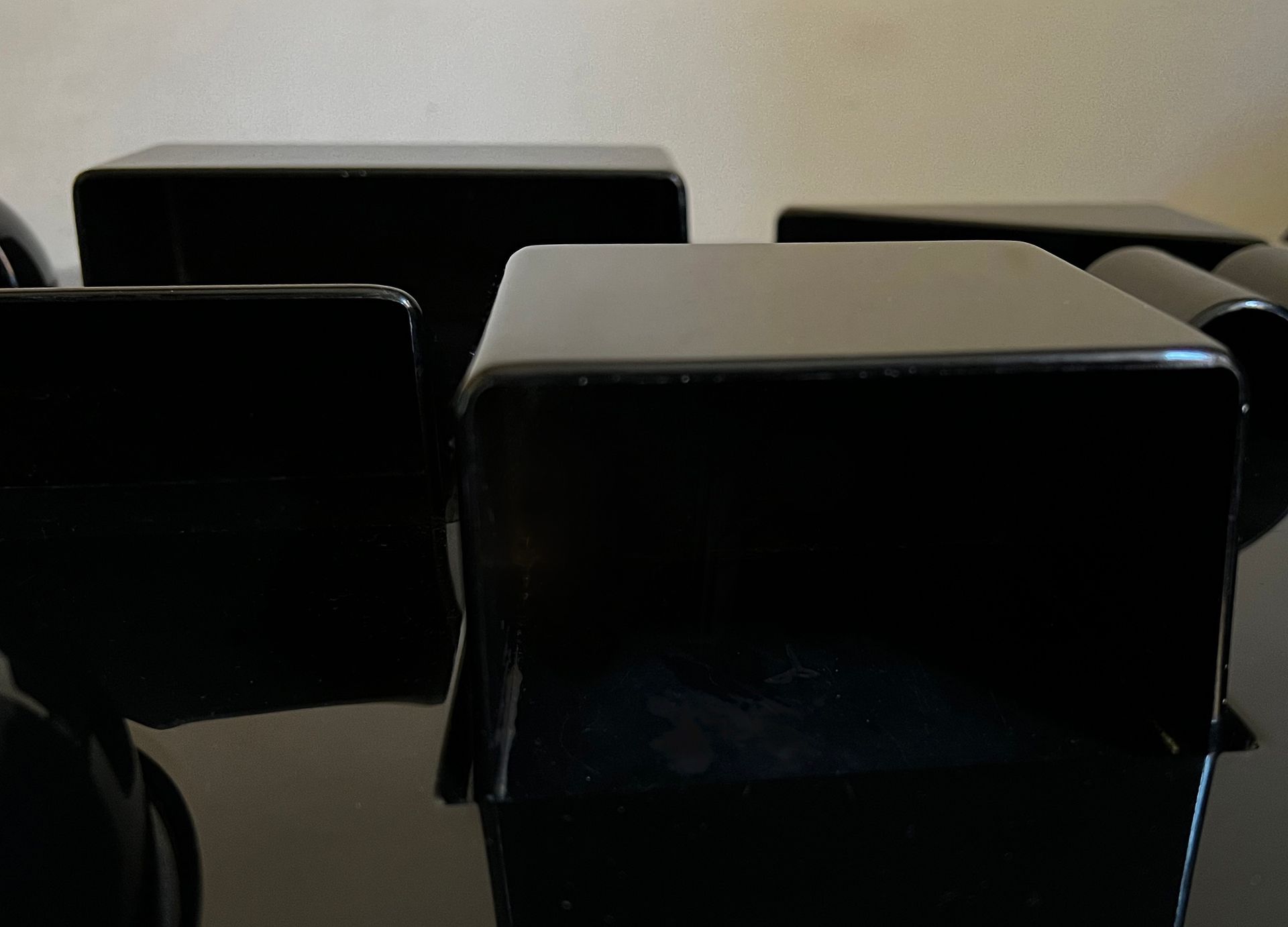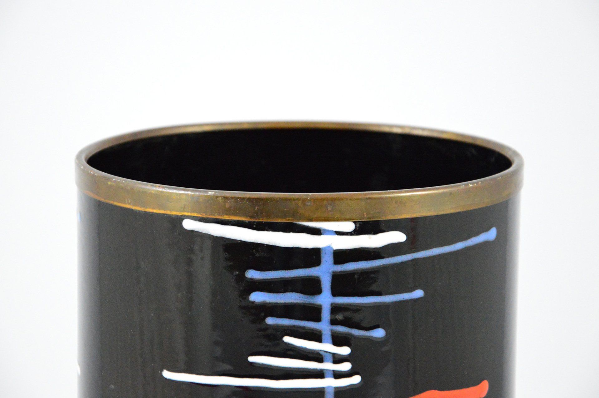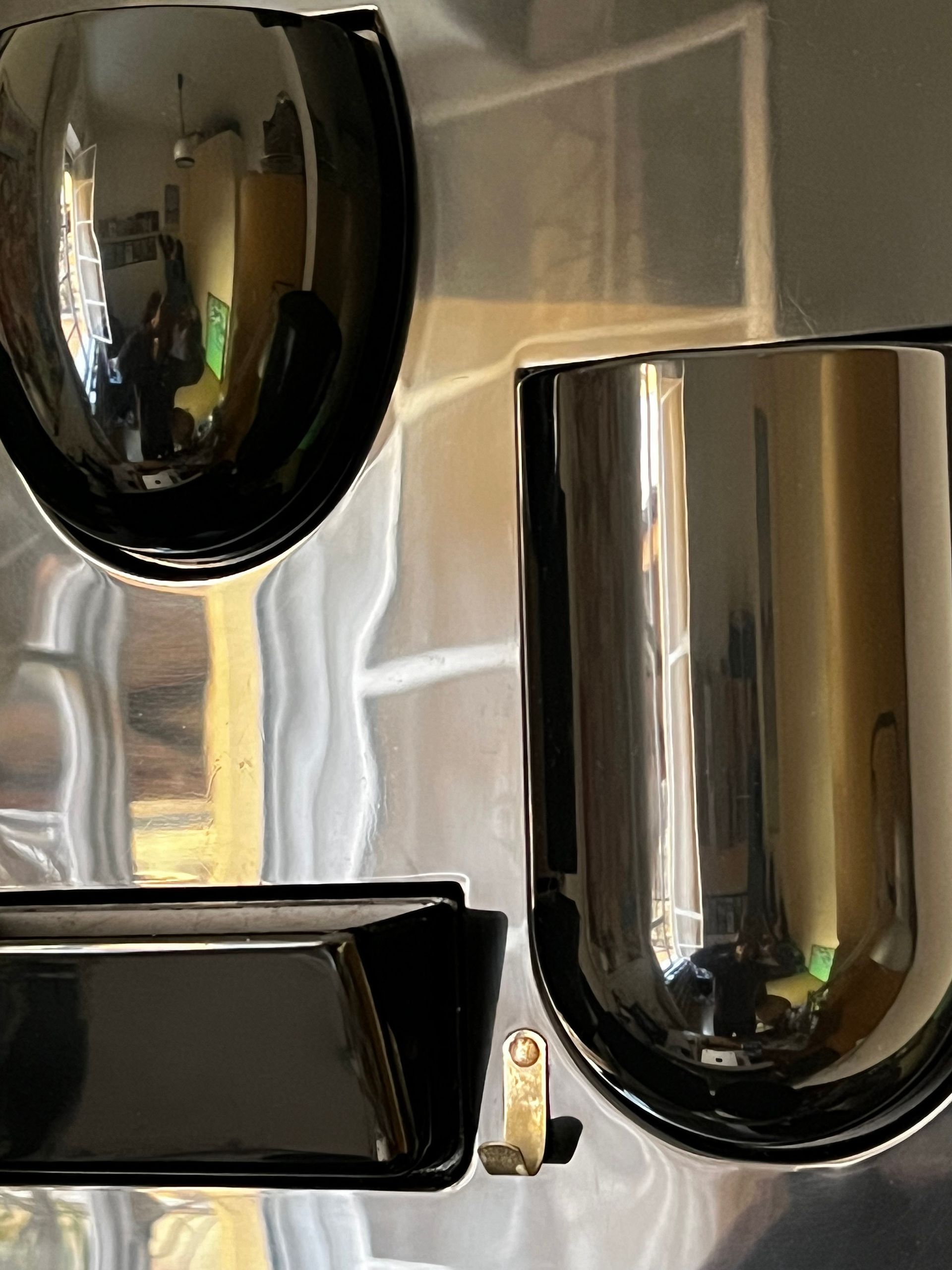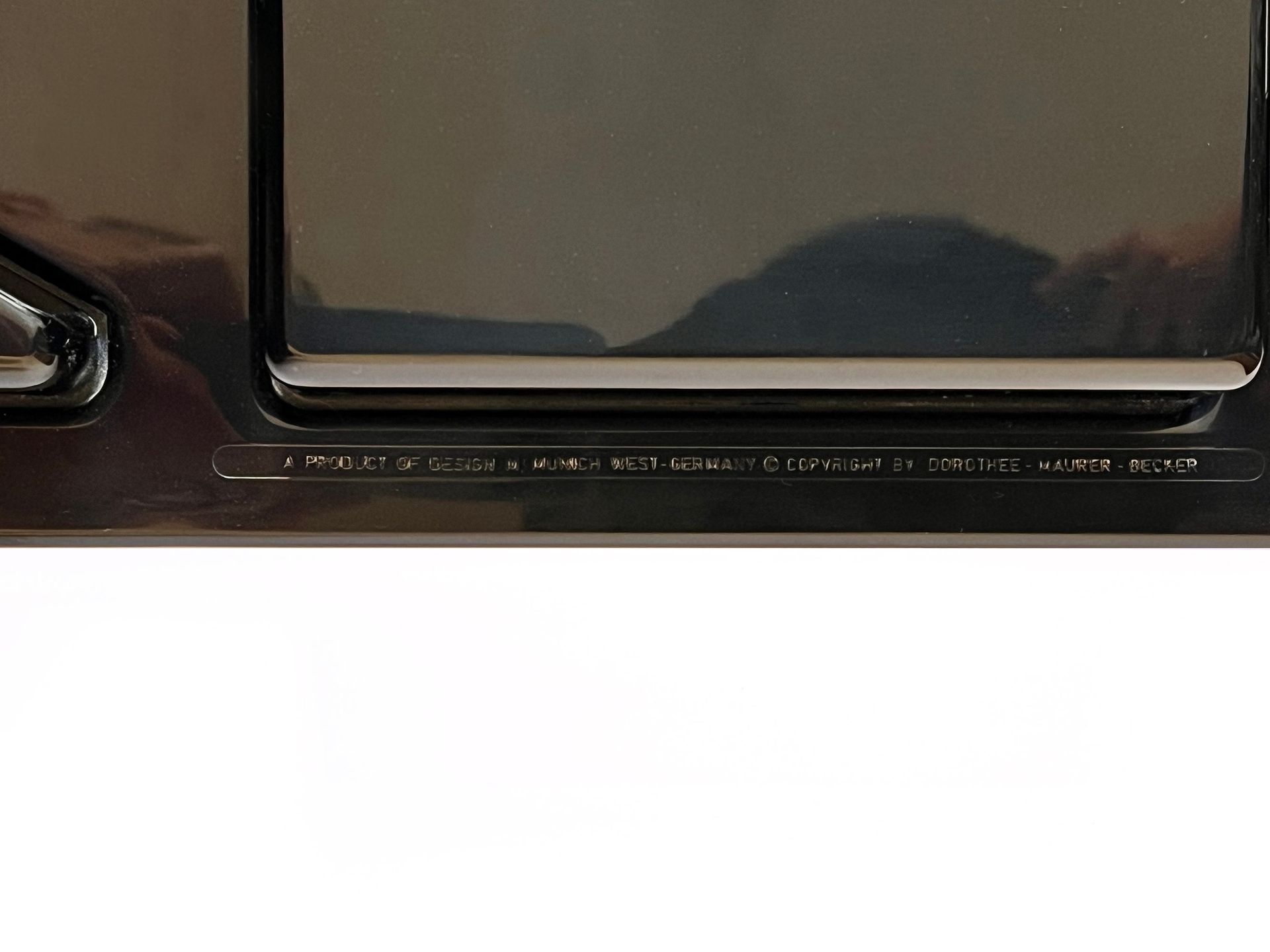 Uten.Silo is an object designed by Dorotee Becker and produced together with her husband Ingo Maurer by studio M. This object has become an innovative 1960s design icon both for a new vision of how to live in the home and the workplace, as well as for the overall approach to design from project to production carried out by the two designers. It was in fact with studio m that Ingo Maurer began his activity as a publisher. The item is in very good condition apart from a couple of scratches on the top edge and a few marks on the pen holder element. In the photos the marks look more substantial than they are in reality. The insides of the pockets are dulled.
