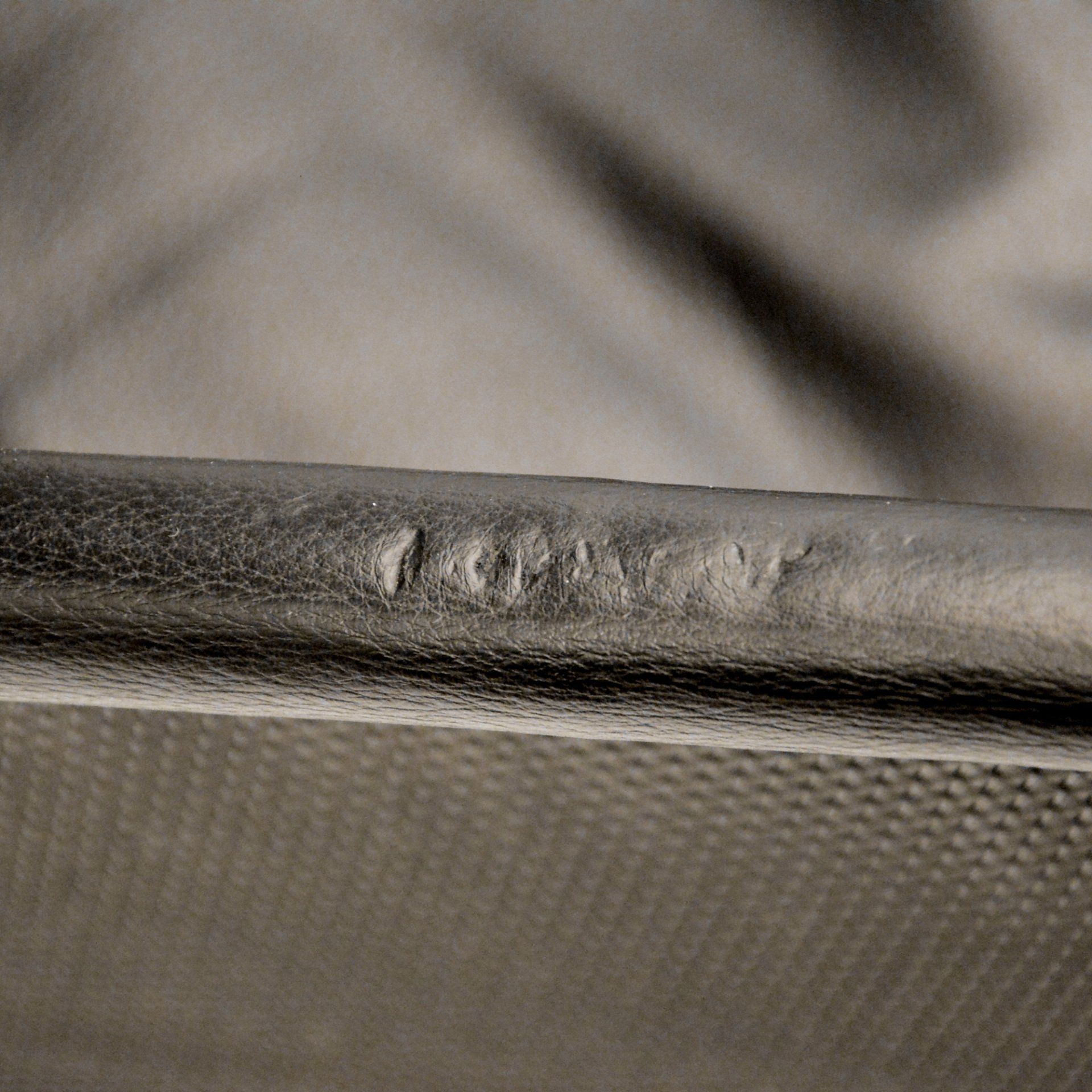 The sofa is in excellent condition, the leather is soft and supple and shows no wear. The only signs to note are: a scratch on the right armrest and two slight deformations of the leather at the armrests. Also worth noting is that the slider on one of the two zippers is missing the puller, which does not prevent it from working, as the slider slides smoothly.