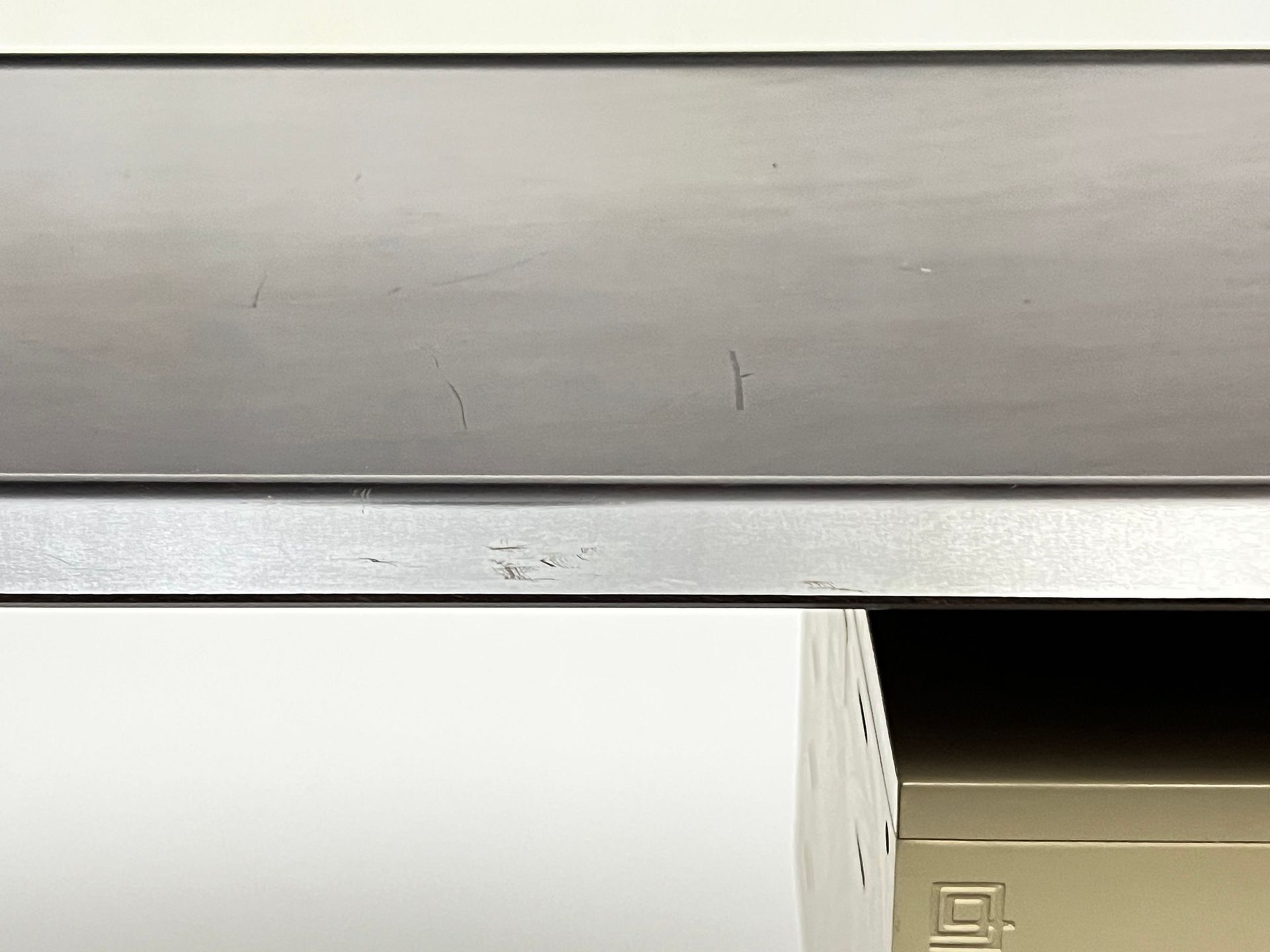 The desk is in good condition apart from a break in one of the drawers, one of the feet and some slight marks on the top. cm H69 x W112 x D42