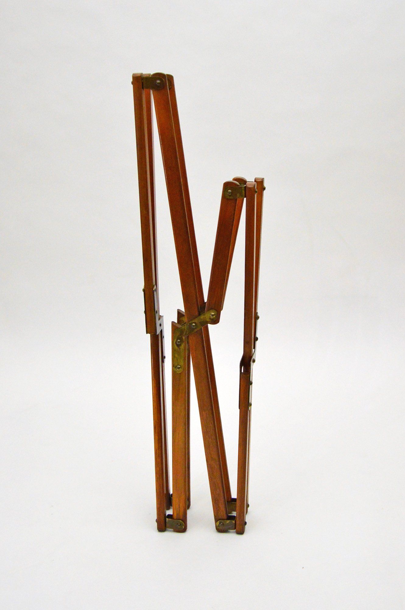 Stained Maoghany. In excellent condition, it had holes caused by woodworms. An anti-woodworm treatment was carried out and the holes were filled. The glass trays have normal signs of use. The wheels are new.