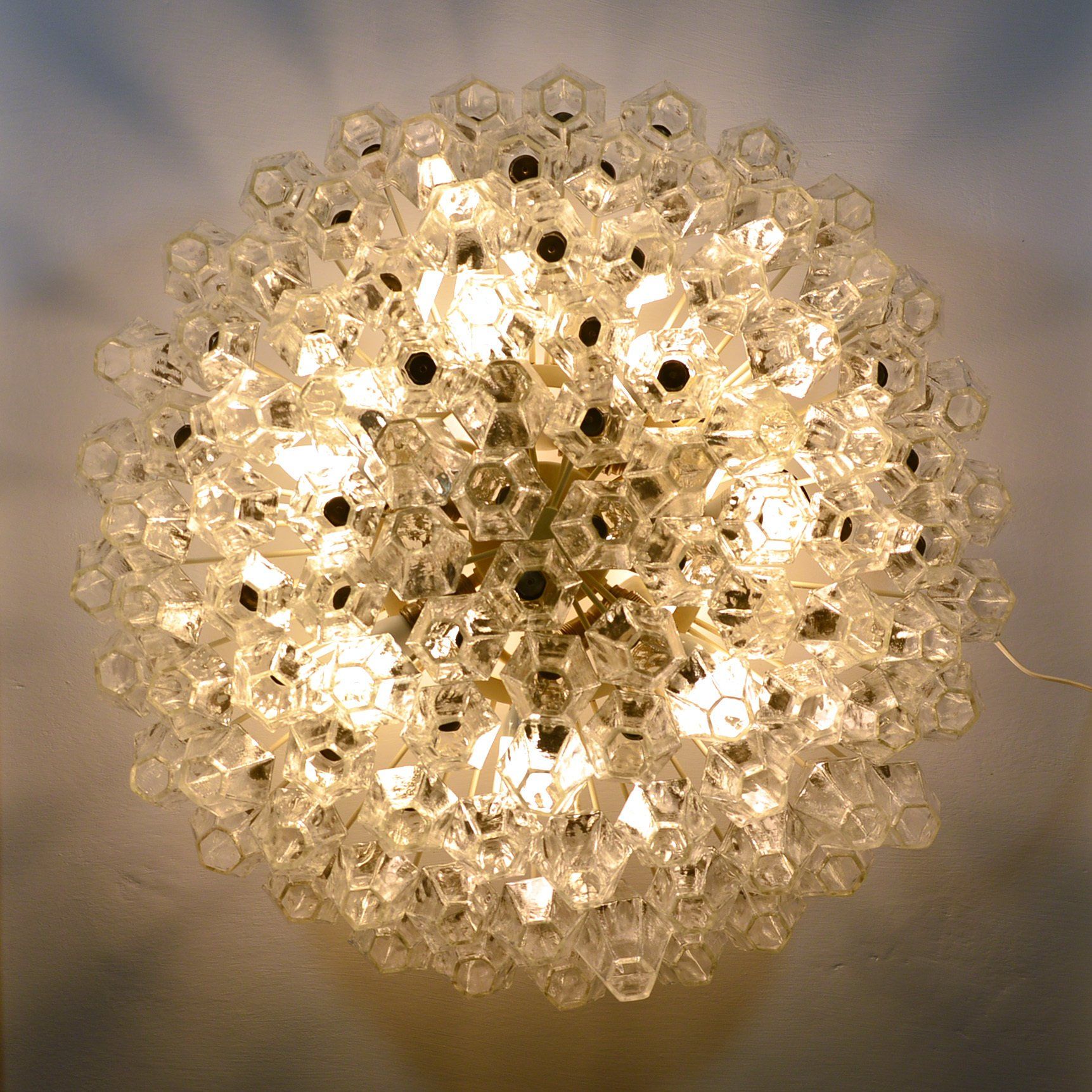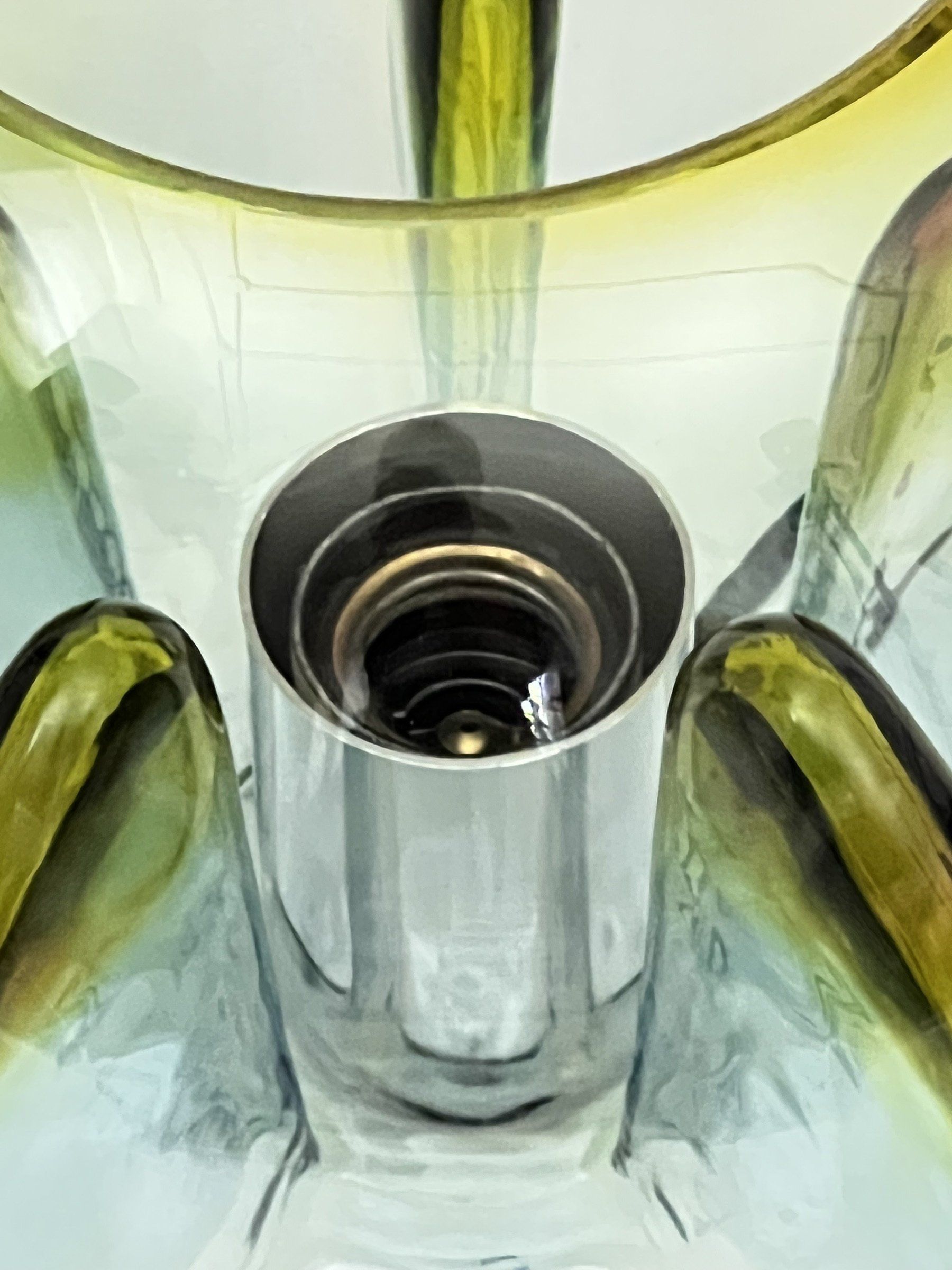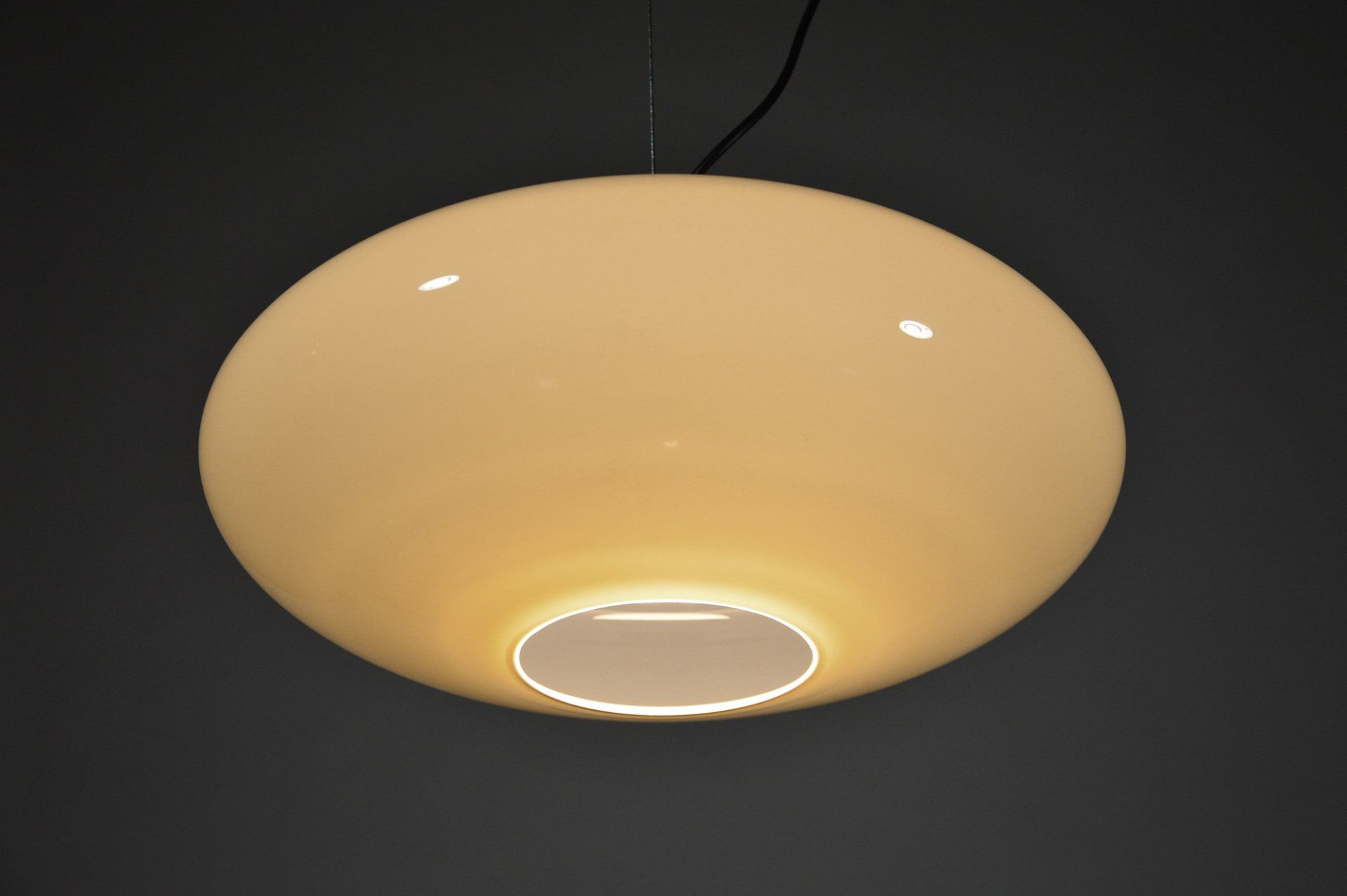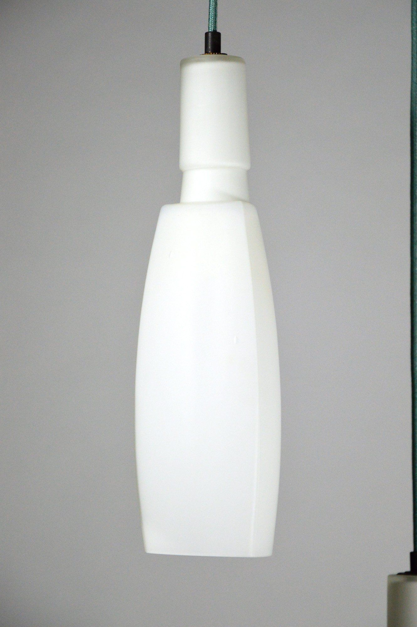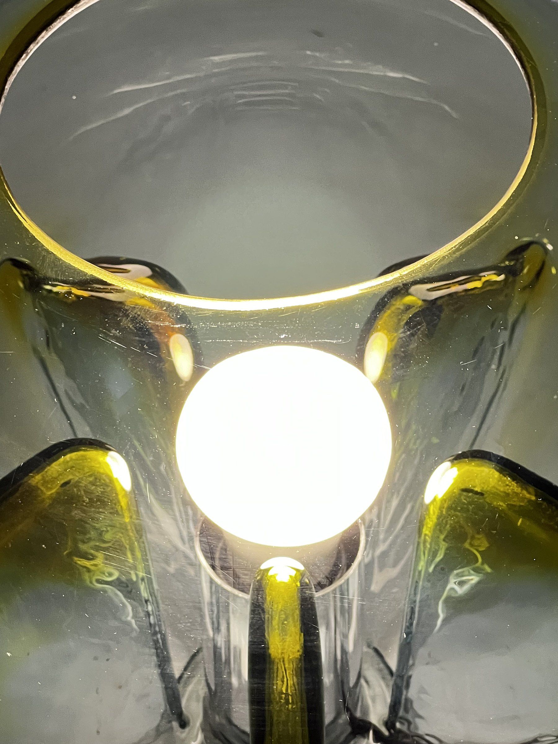 Glass diffusers in perfect condition, small defects almost invisible to the ceiling plate. H120.0 x ø40.0 cm