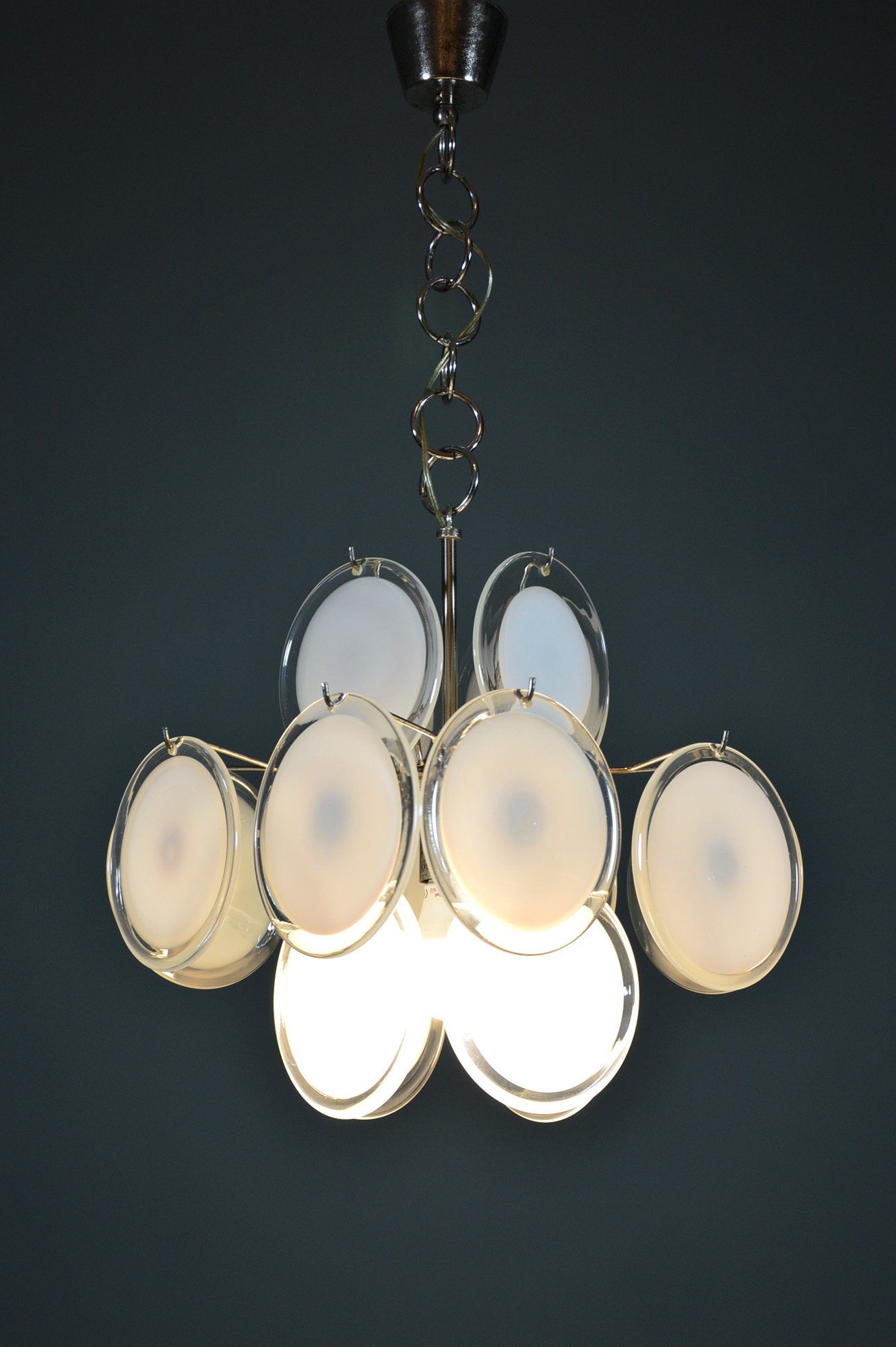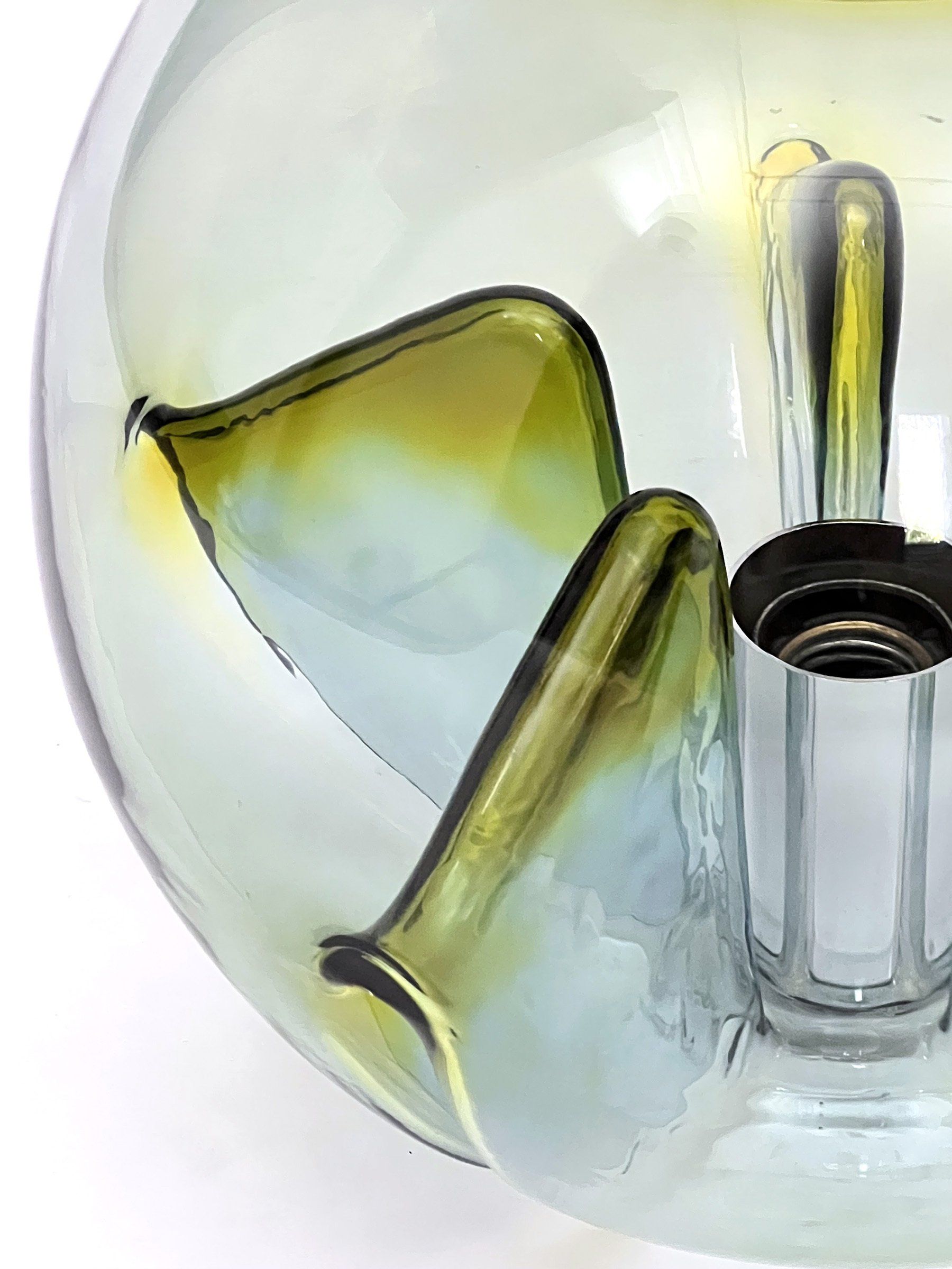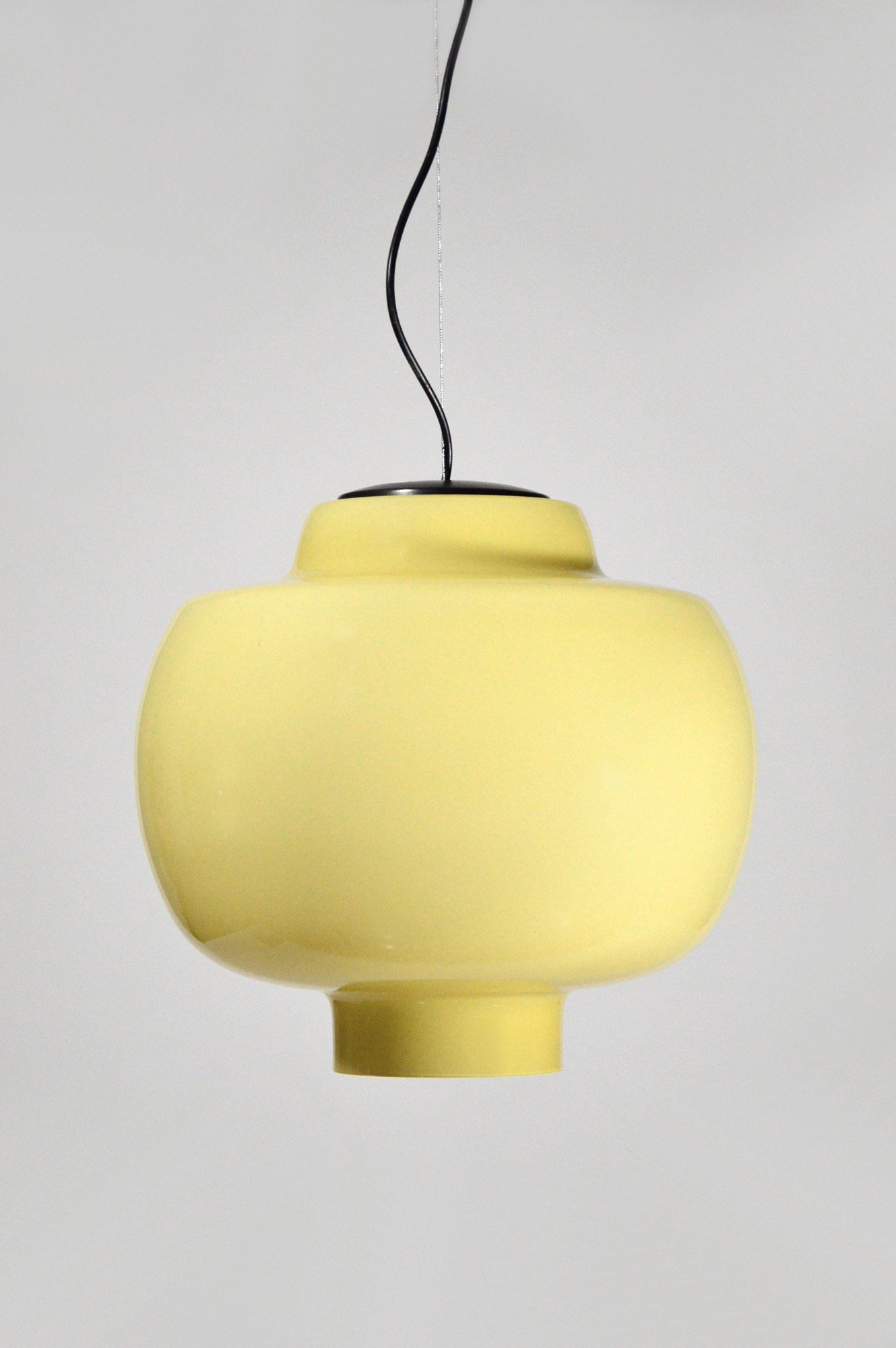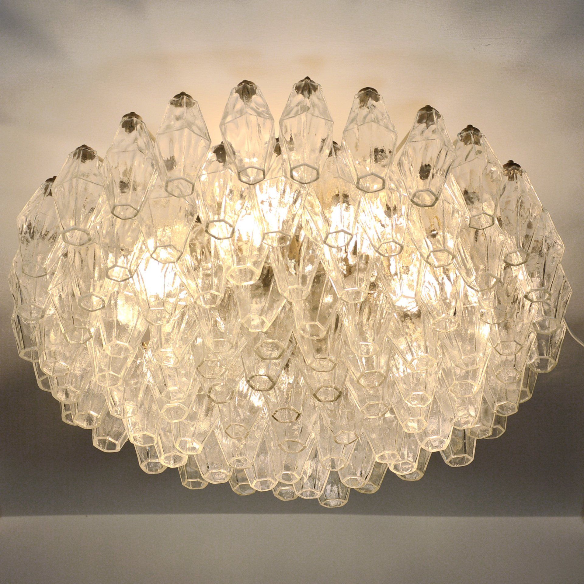 Glass diffusers in perfect condition, small defects almost invisible to the ceiling plate. H120.0 x ø40.0 cm