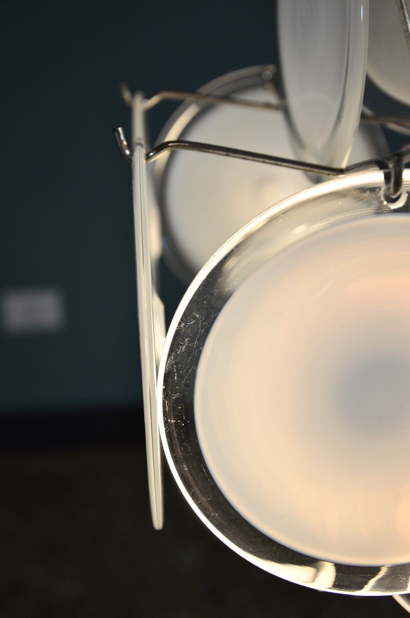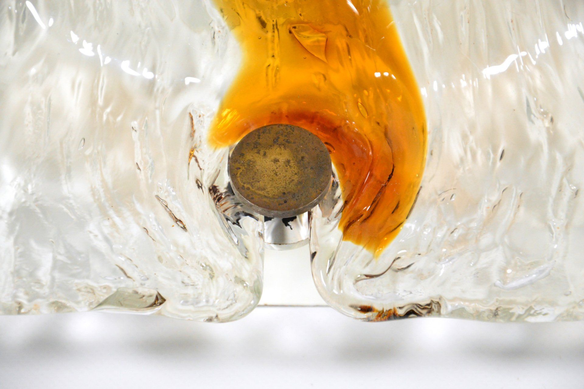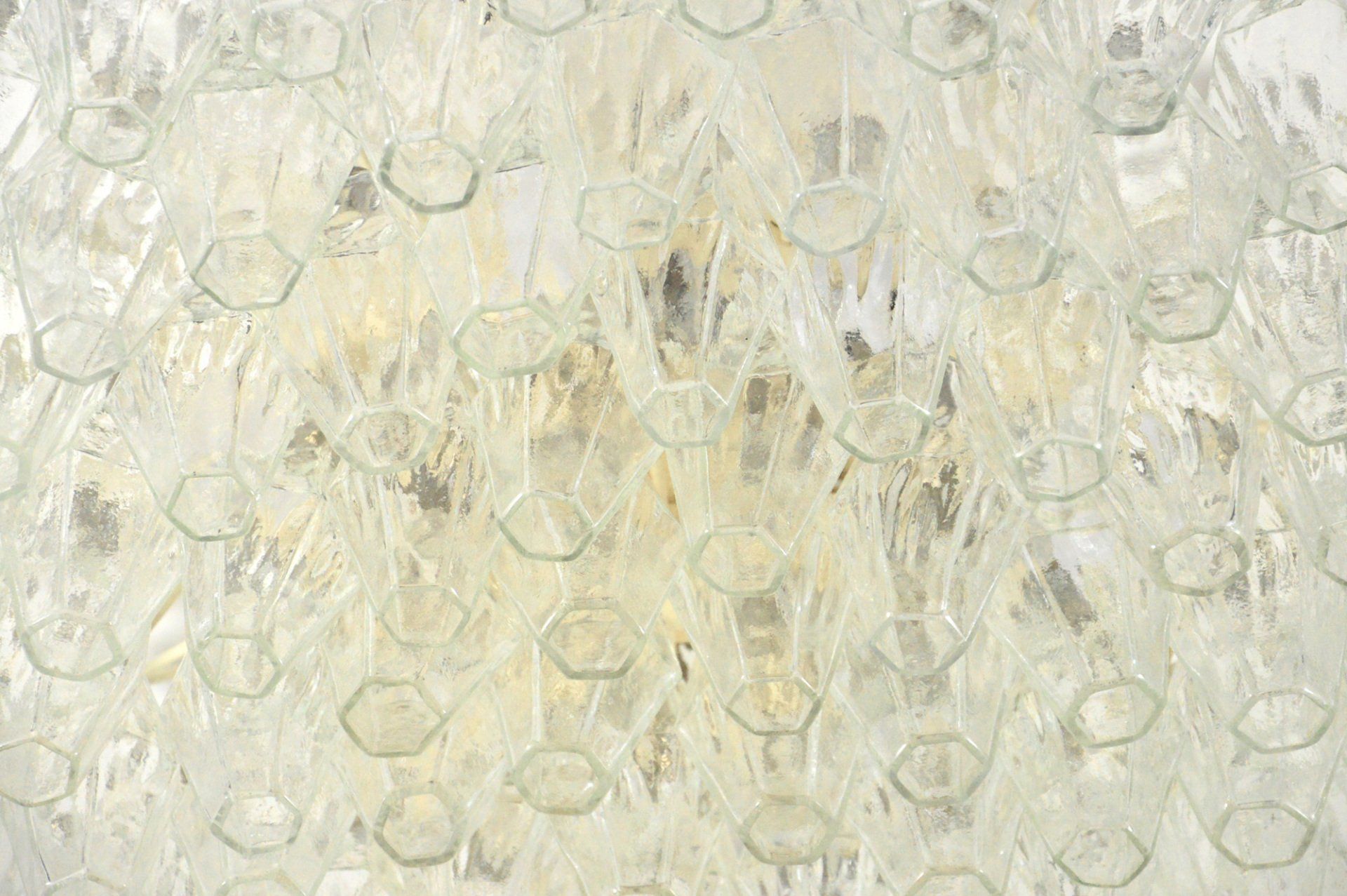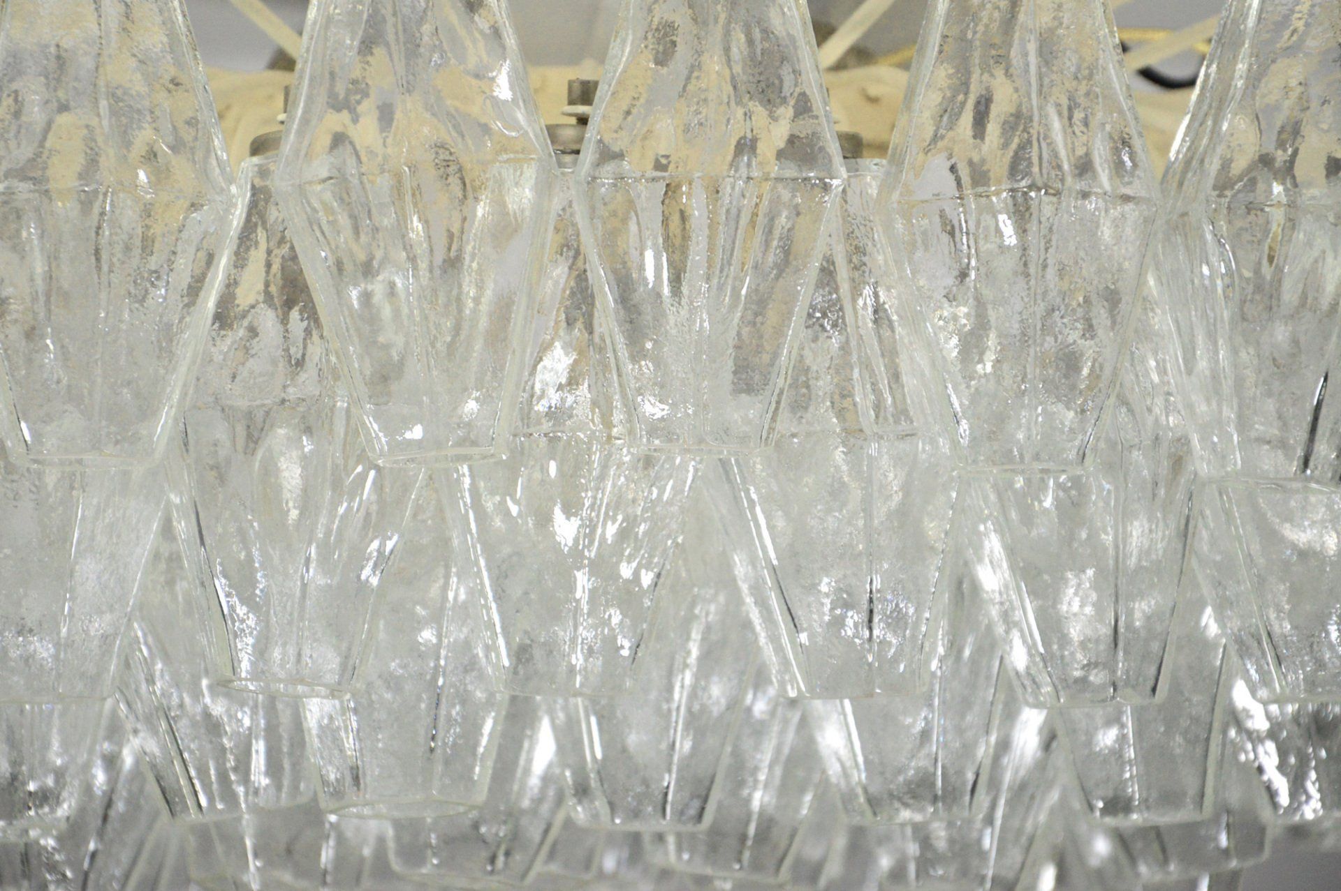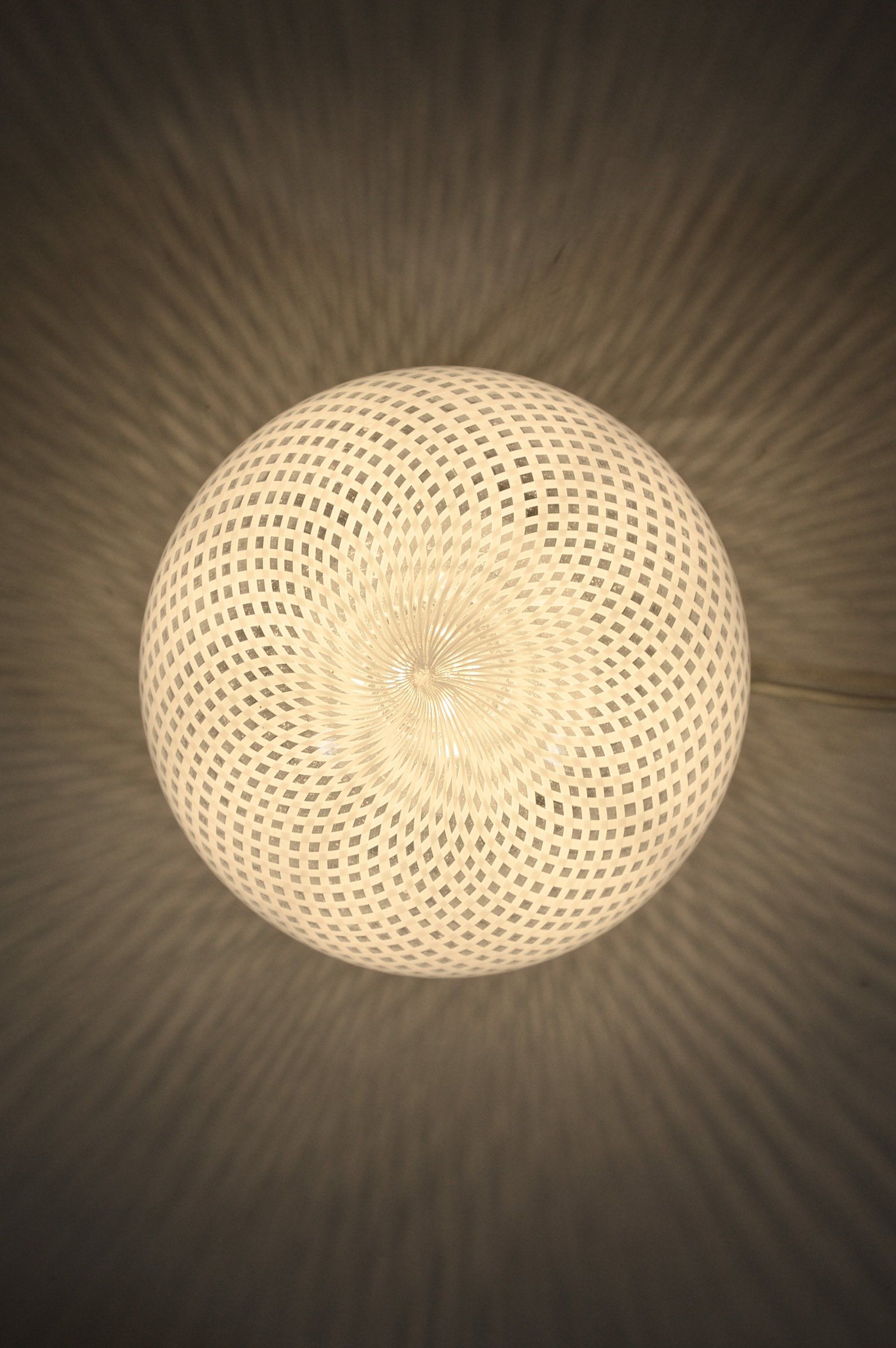 Glass diffusers in perfect condition, small defects almost invisible to the ceiling plate. H120.0 x ø40.0 cm