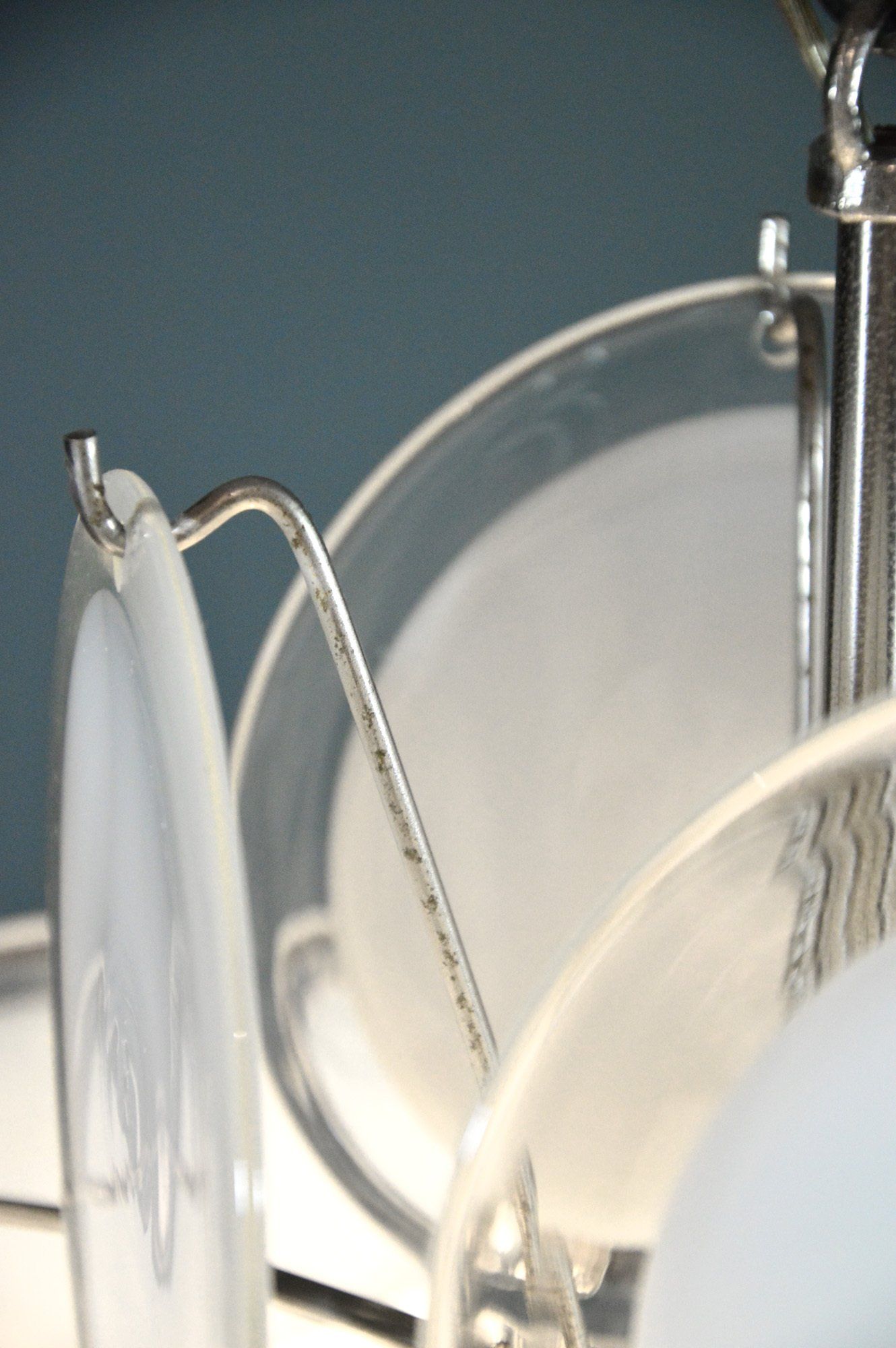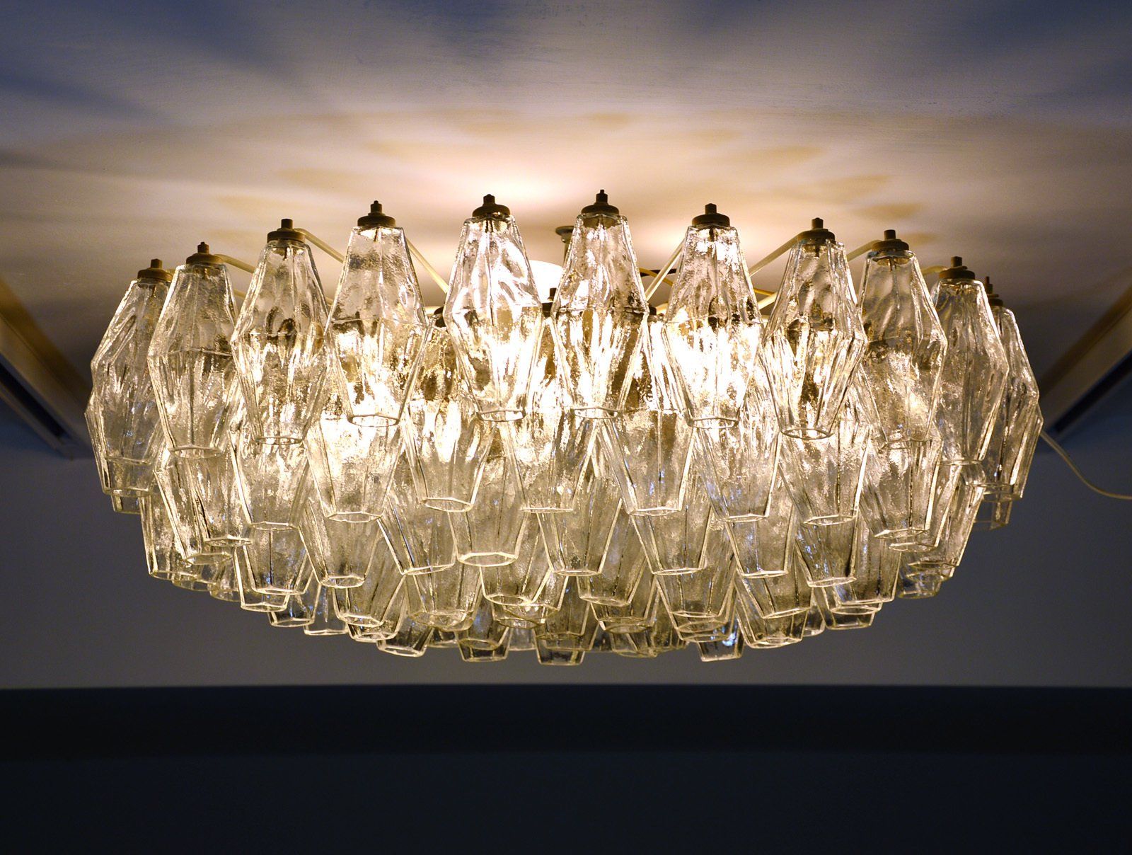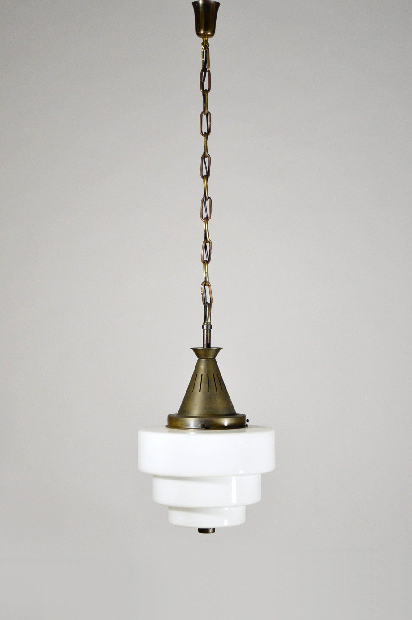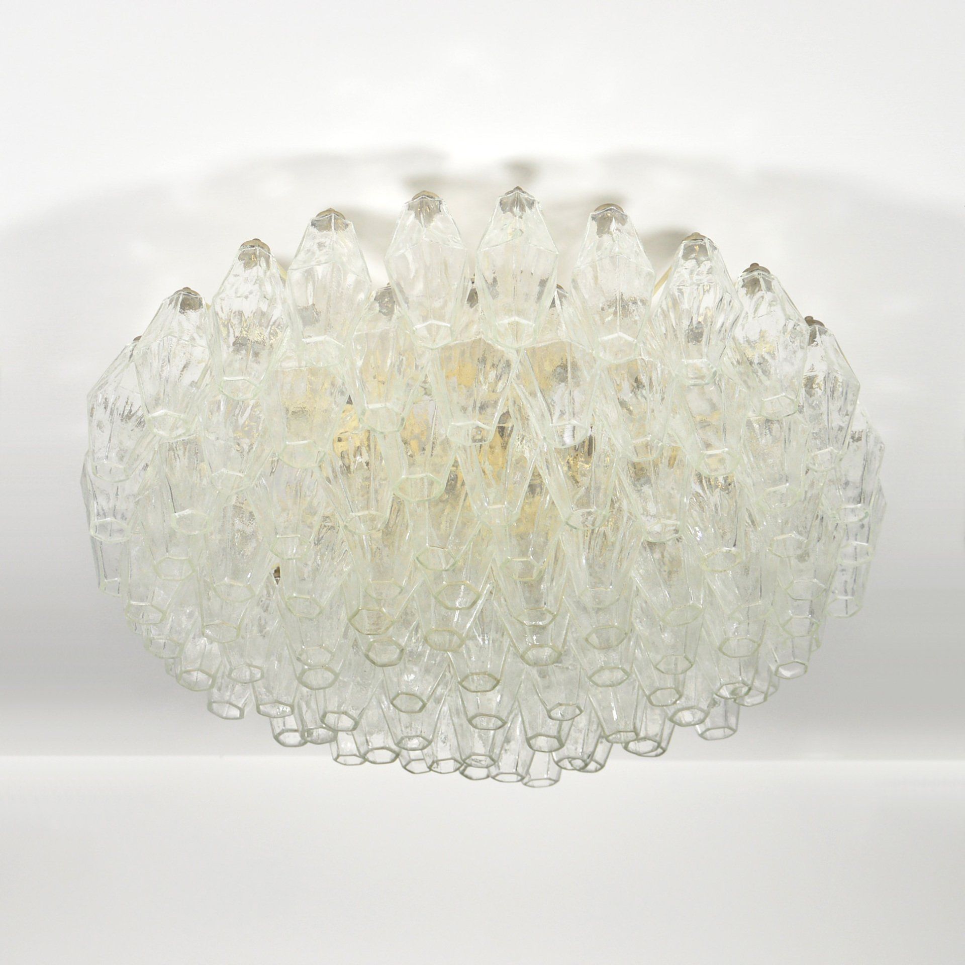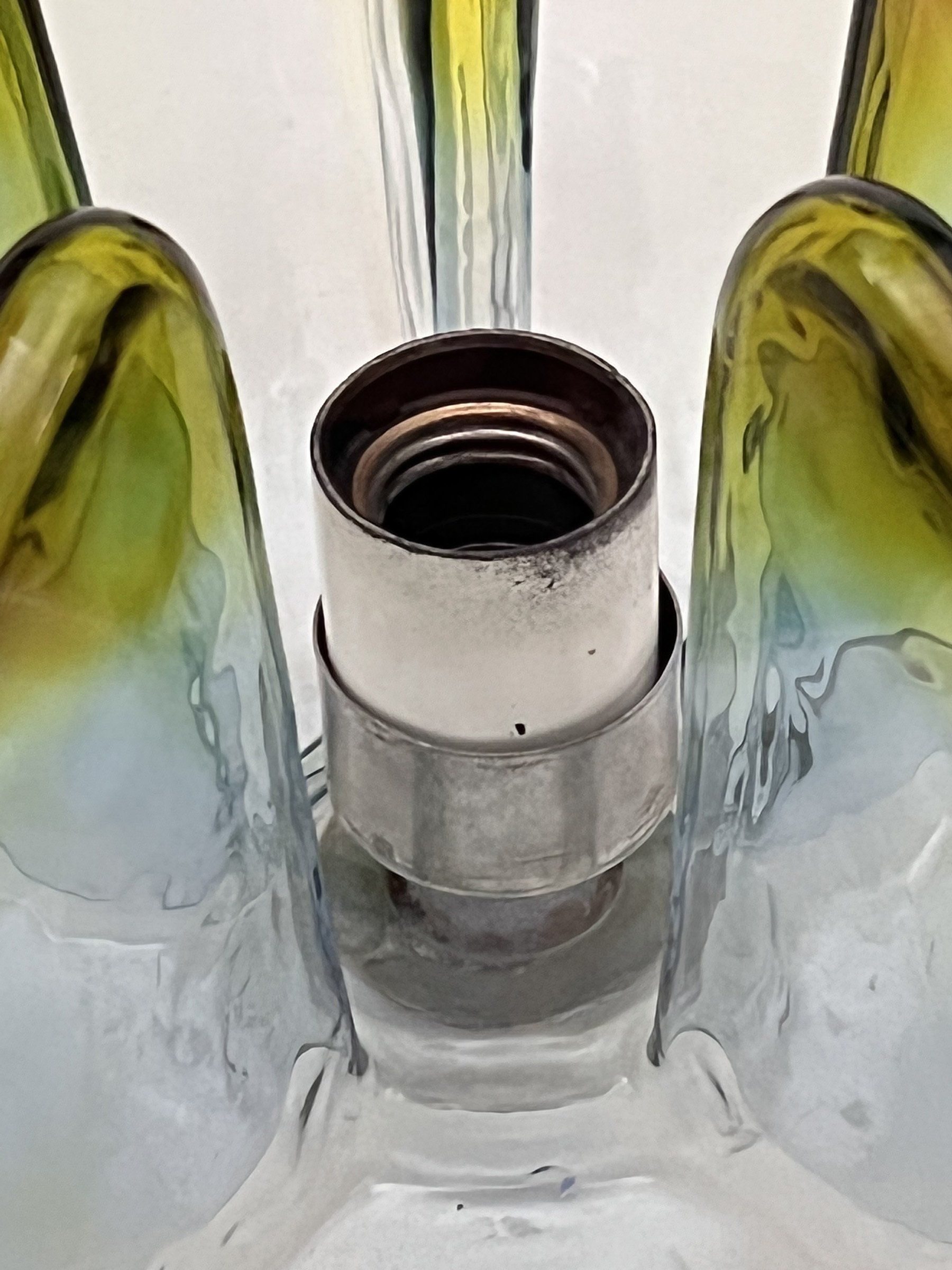 Glass diffusers in perfect condition, small defects almost invisible to the ceiling plate. H120.0 x ø40.0 cm