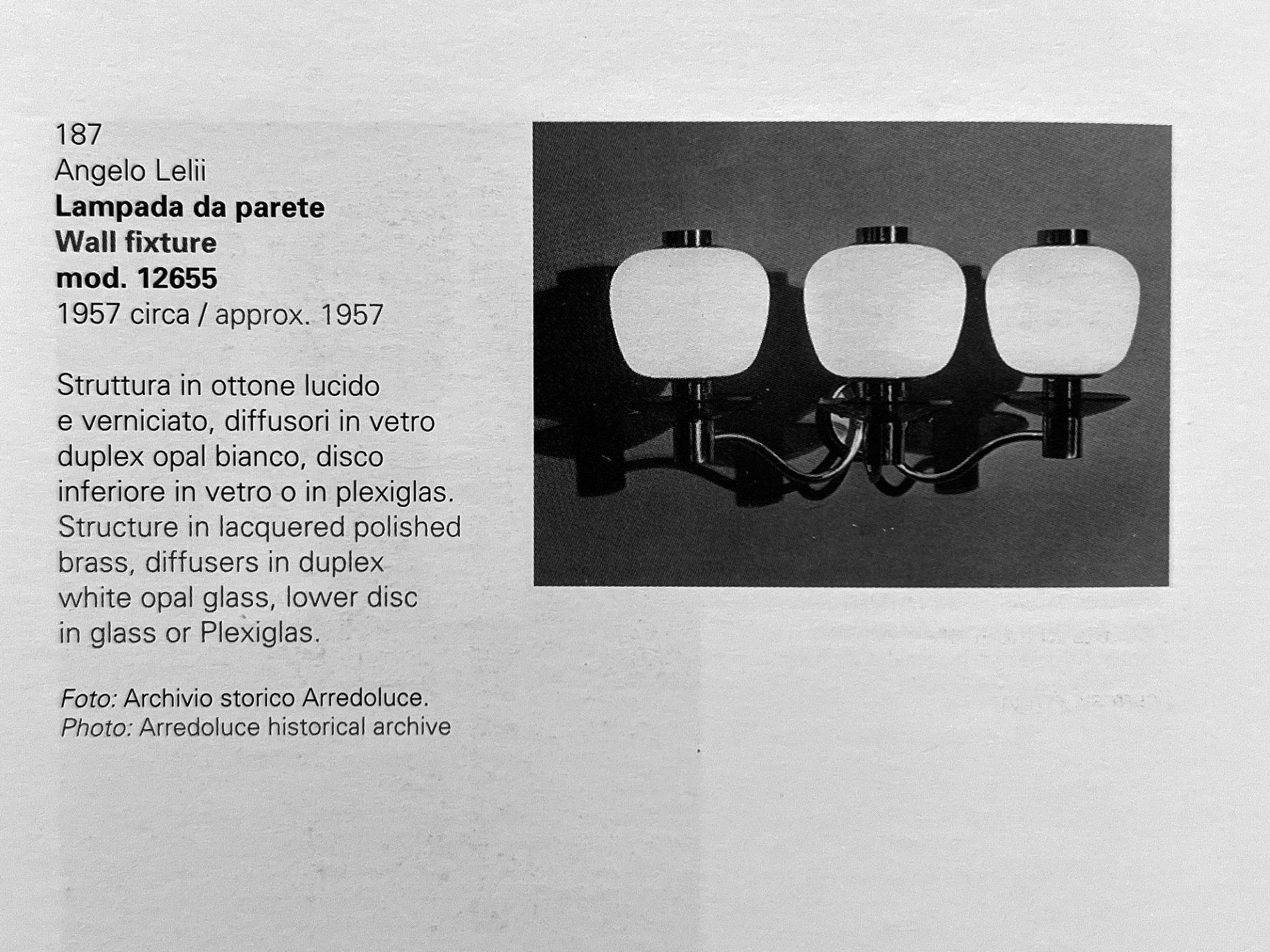 The lamp is published on page 309 of the book 'Arredoluce Catalogo ragionato 1943-1987' by A. Pansera, A. Padoan and A. Palmaghini for SilvanaEditoriale