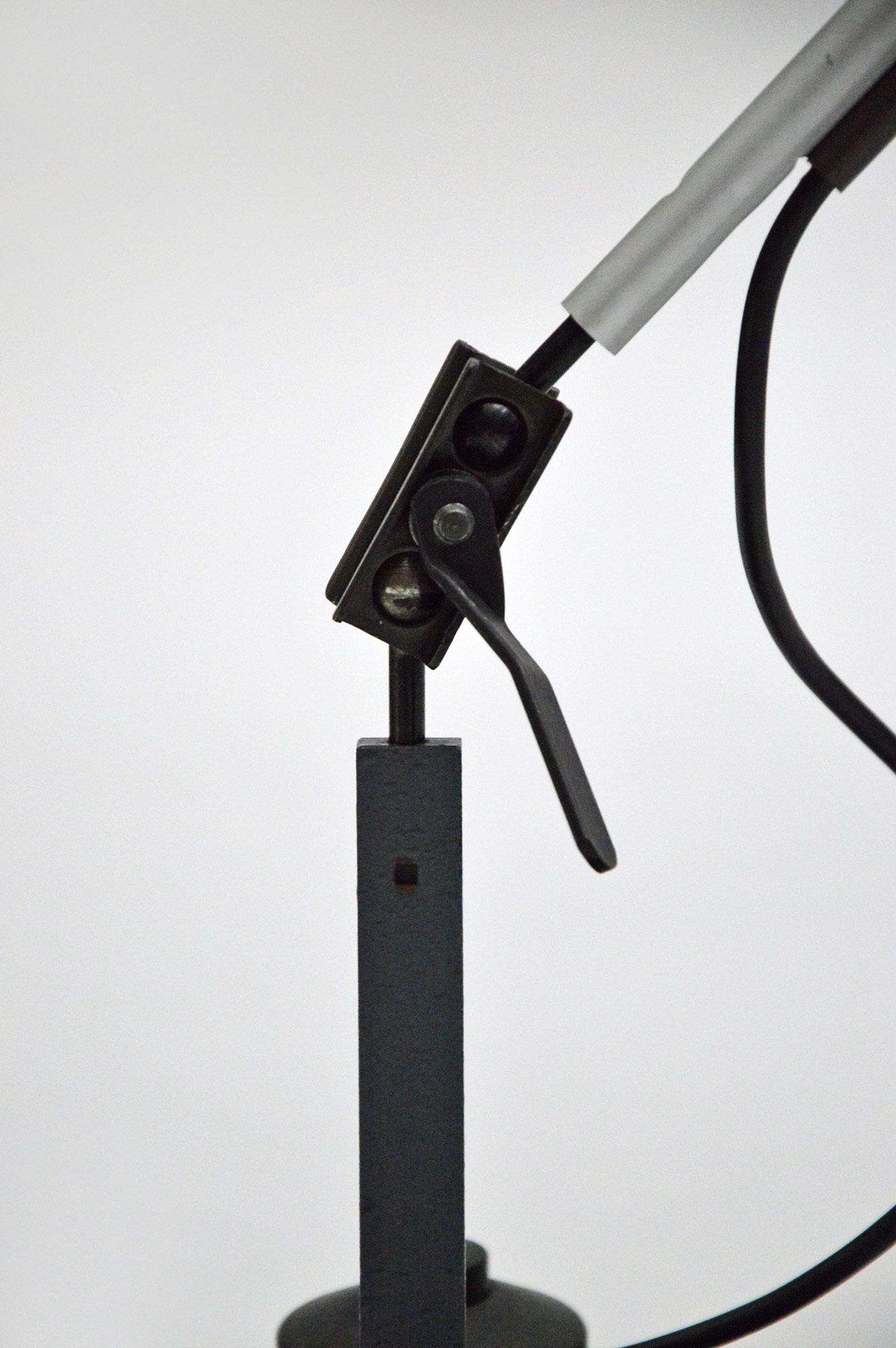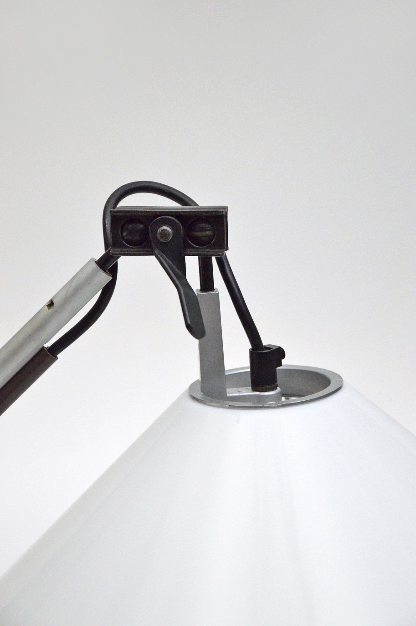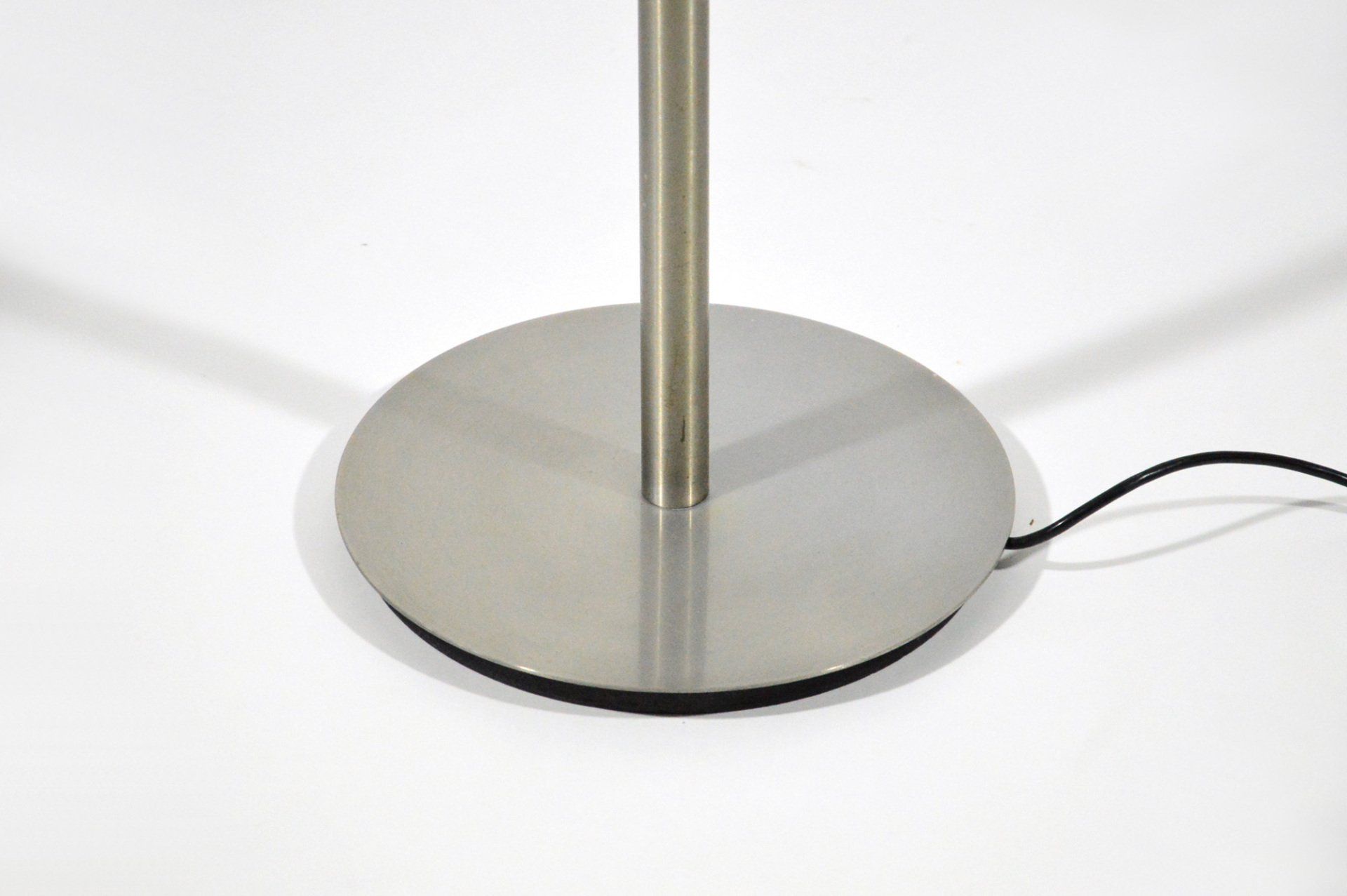 Joe colombo was inspired for this floor lamp by the spotlights used for photographic sets. The light, thanks to the shaped metal shade bent into three parts, is reflected without dazzling. The design is essential but the attention to detail highlights the beauty of the technical object without needing any decoration - cm