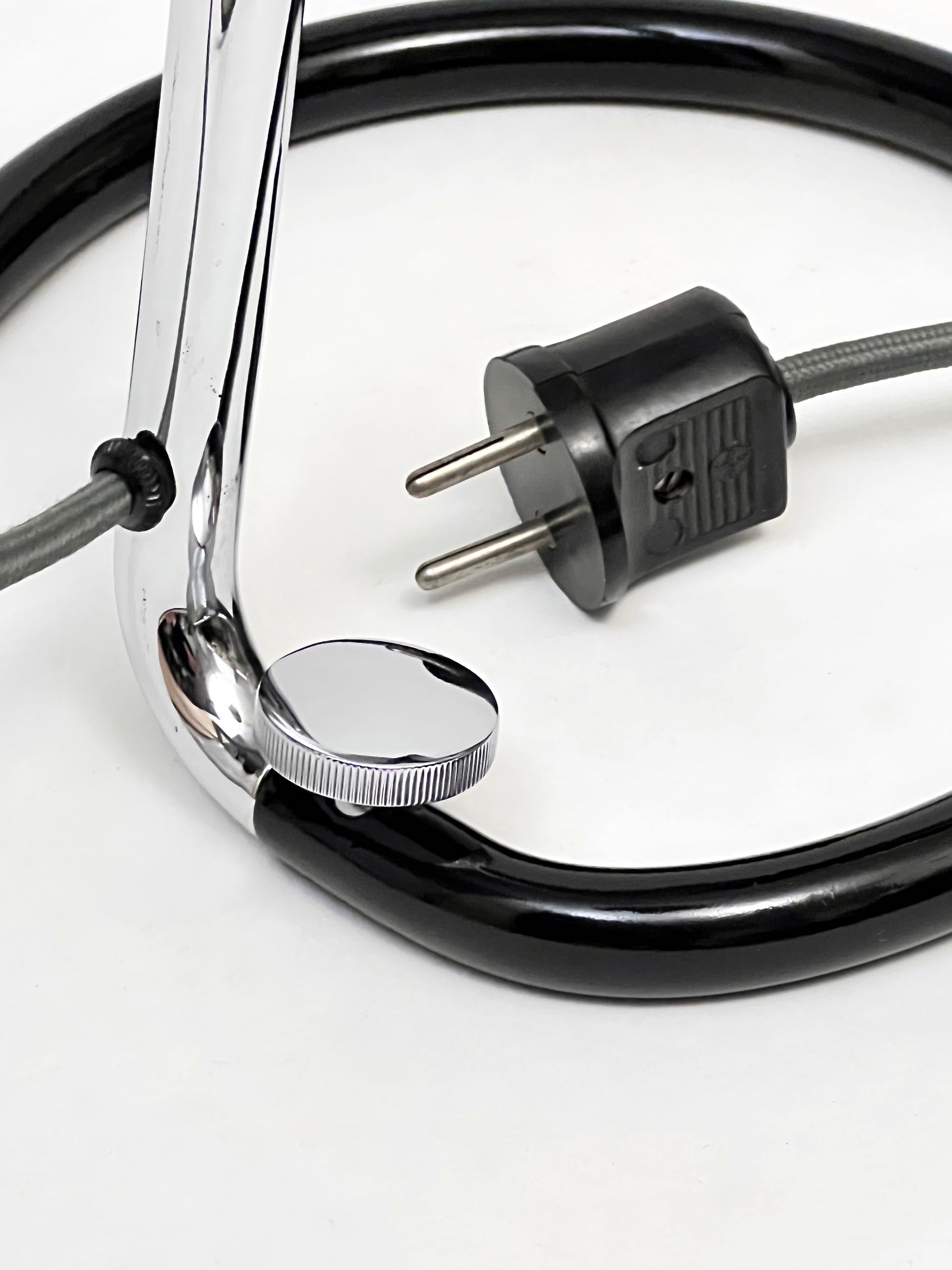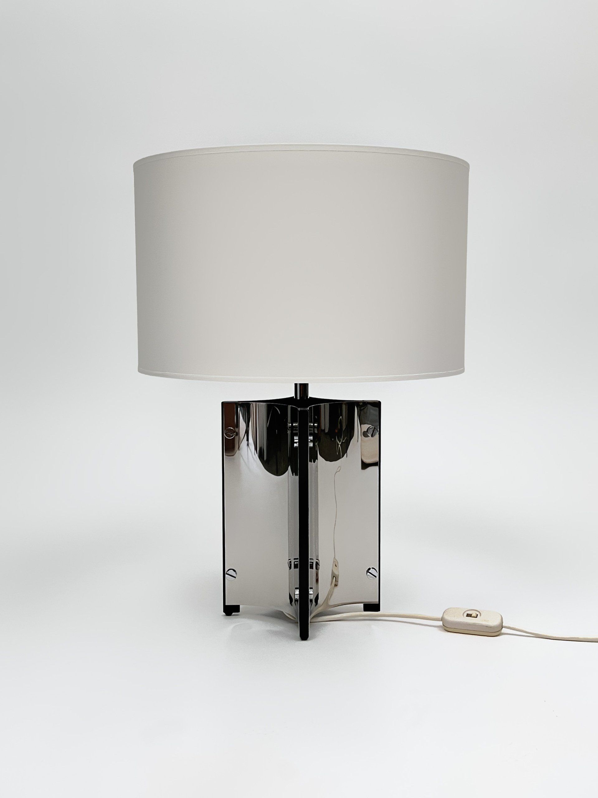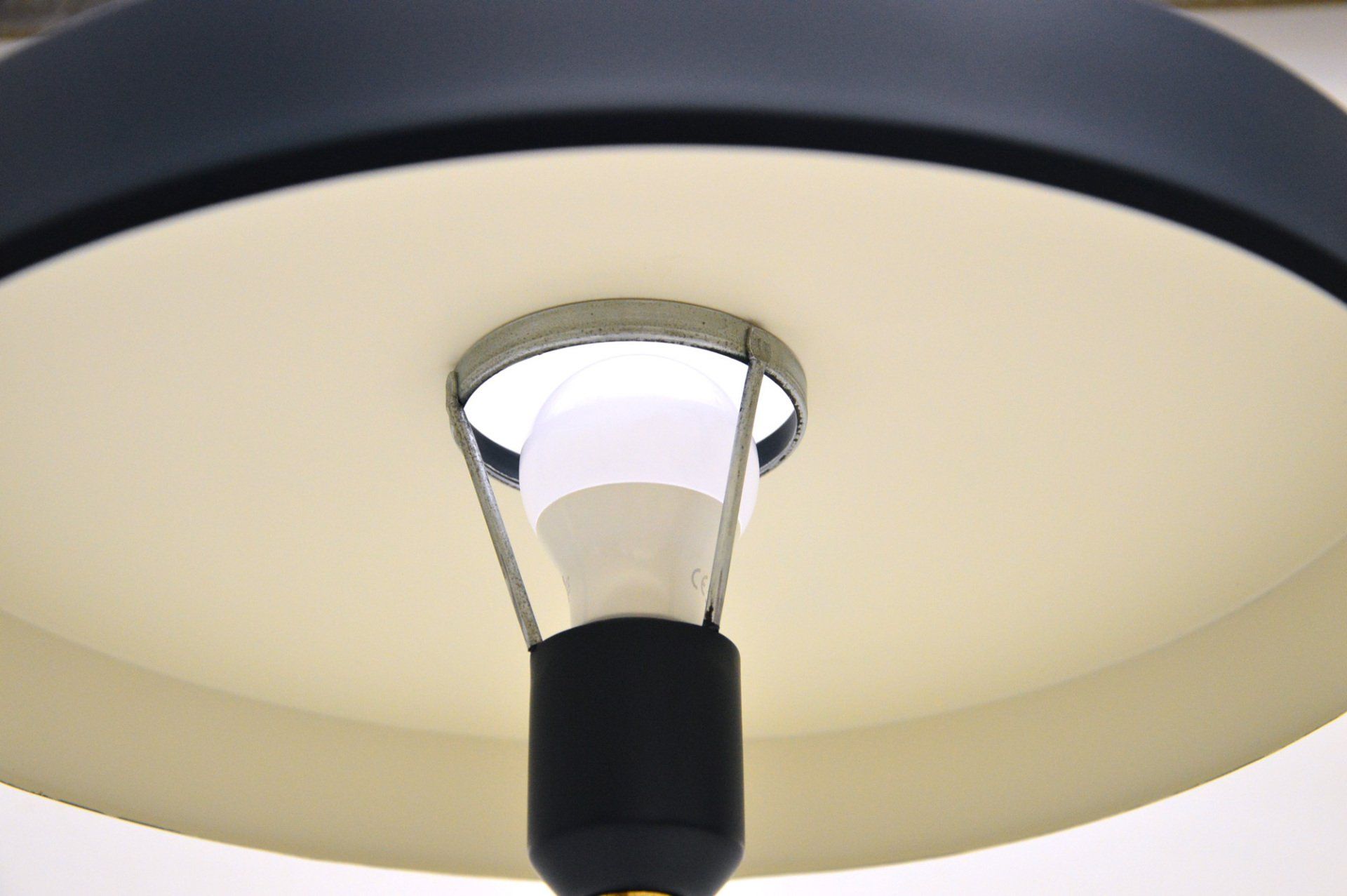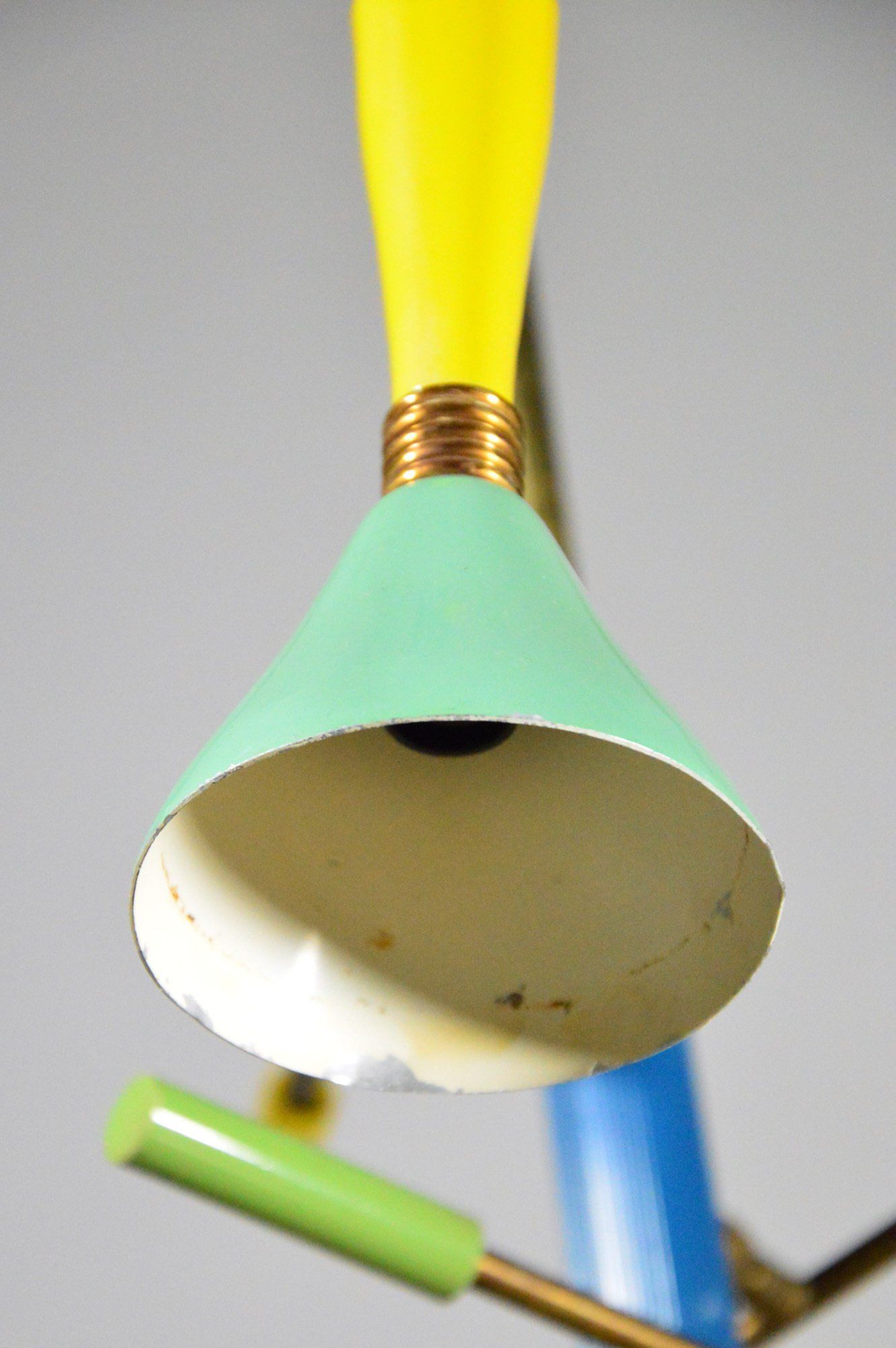 Base and diffuser of painted metal, stem of chrome-plated metal.
