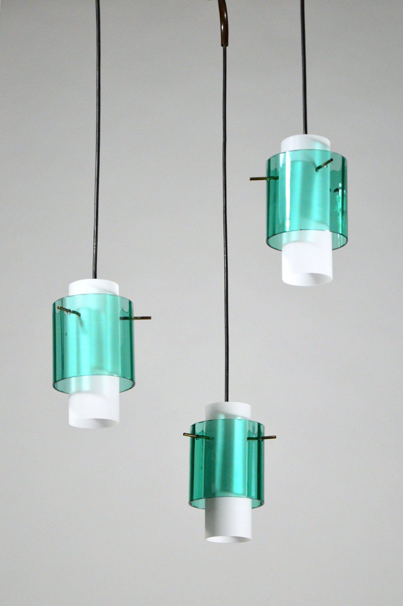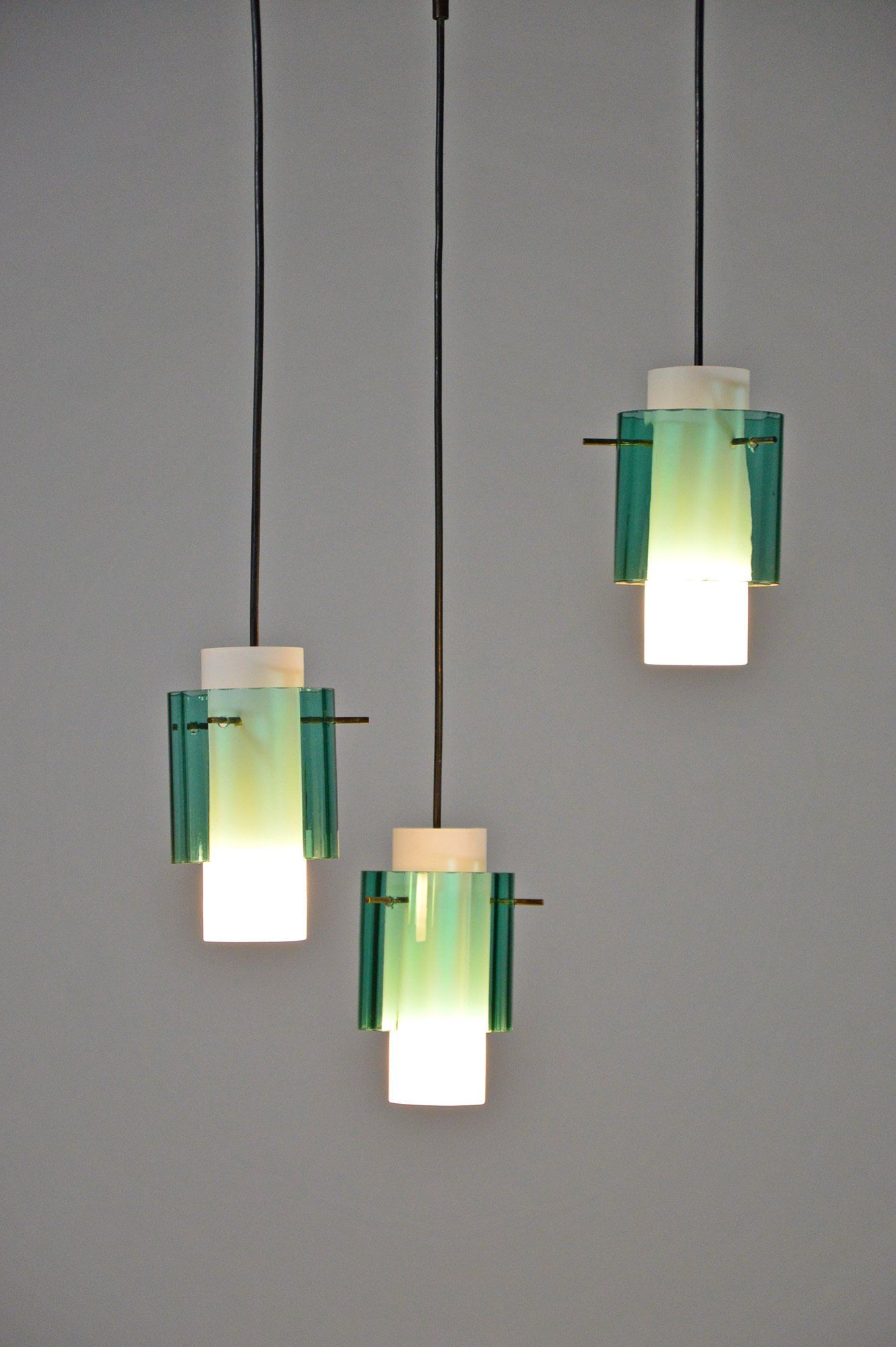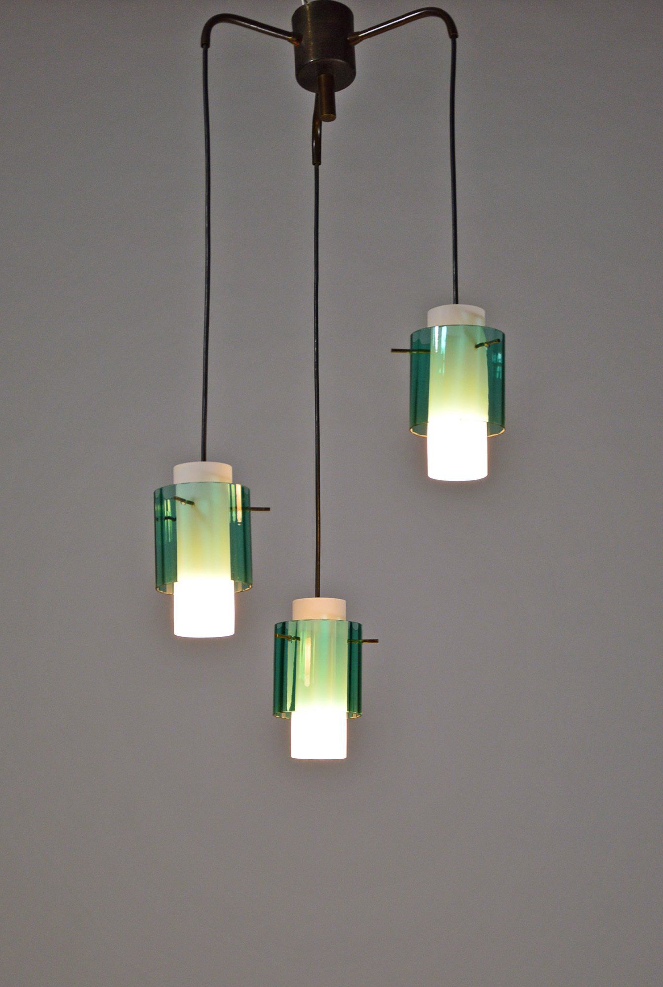 Vintage Italian Chandelier With 3 Glass Pendants, 1960s