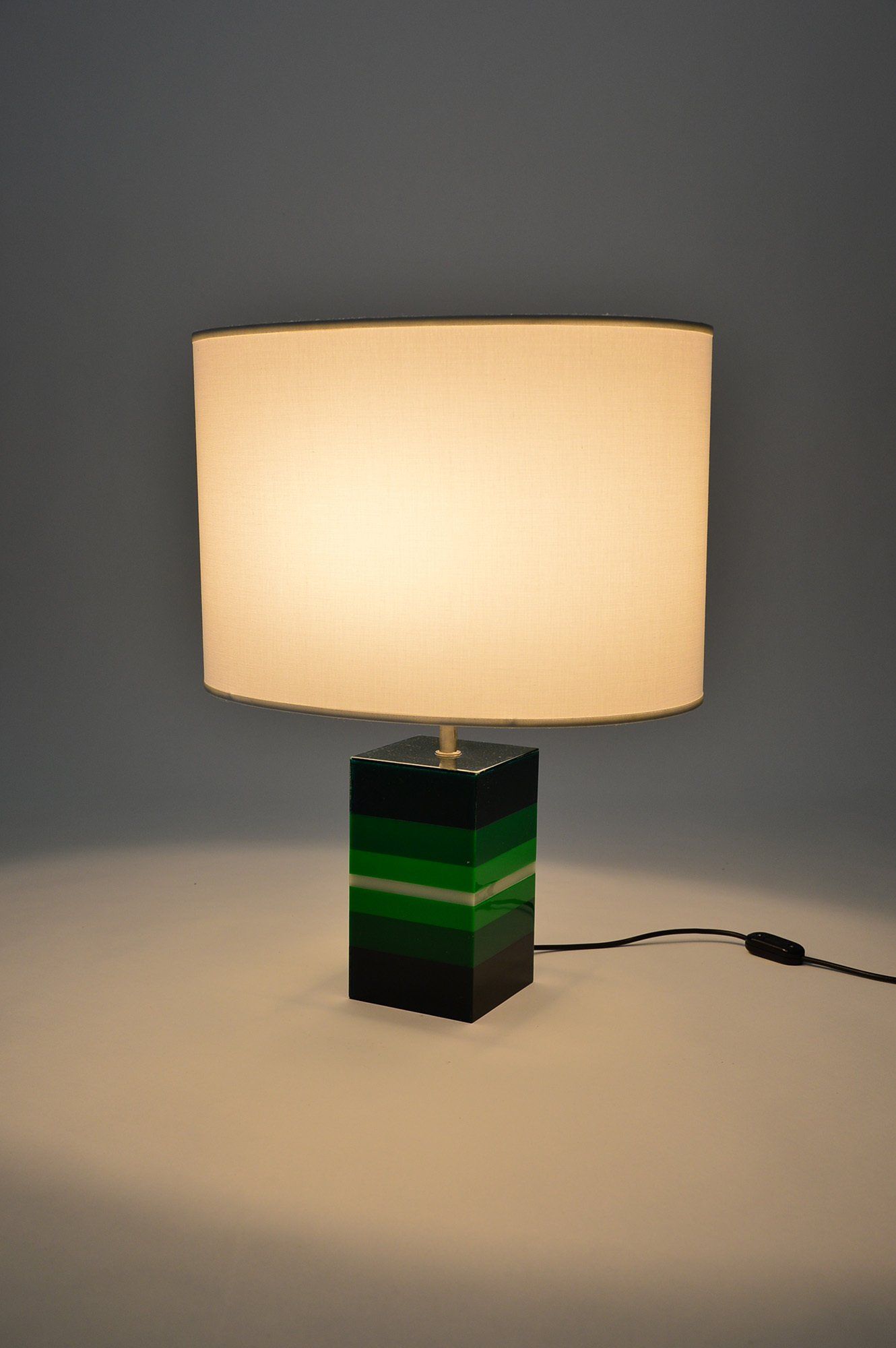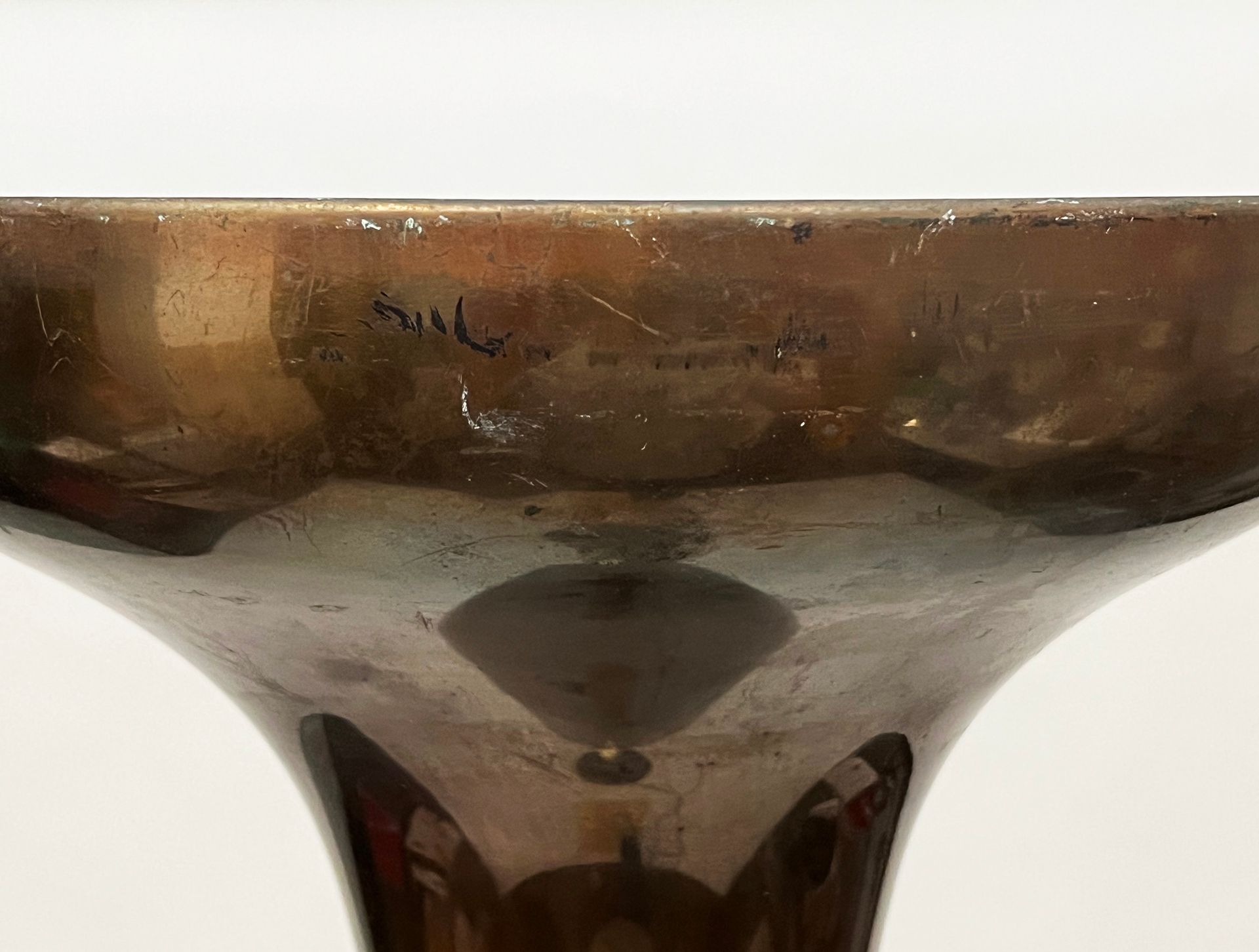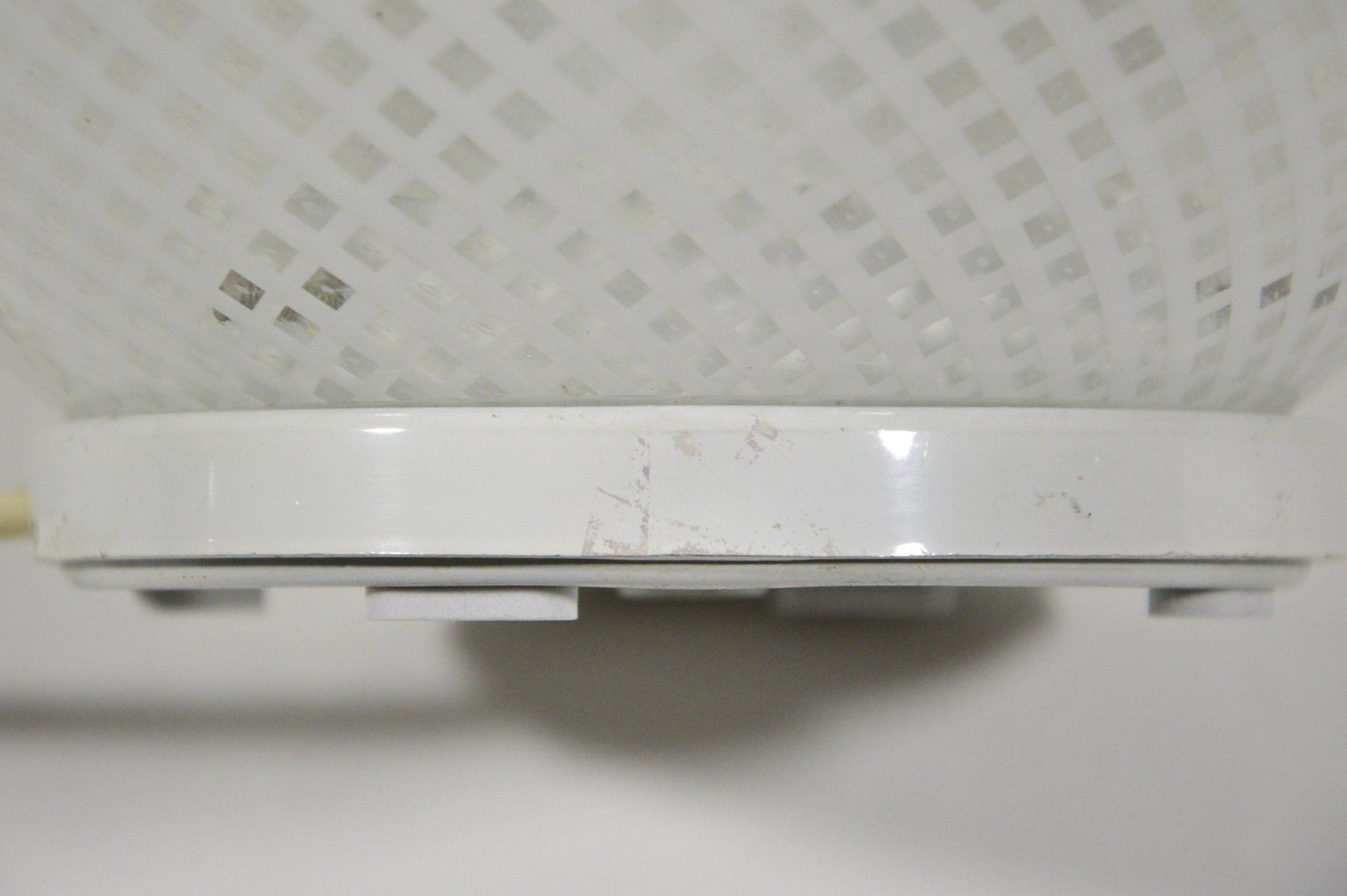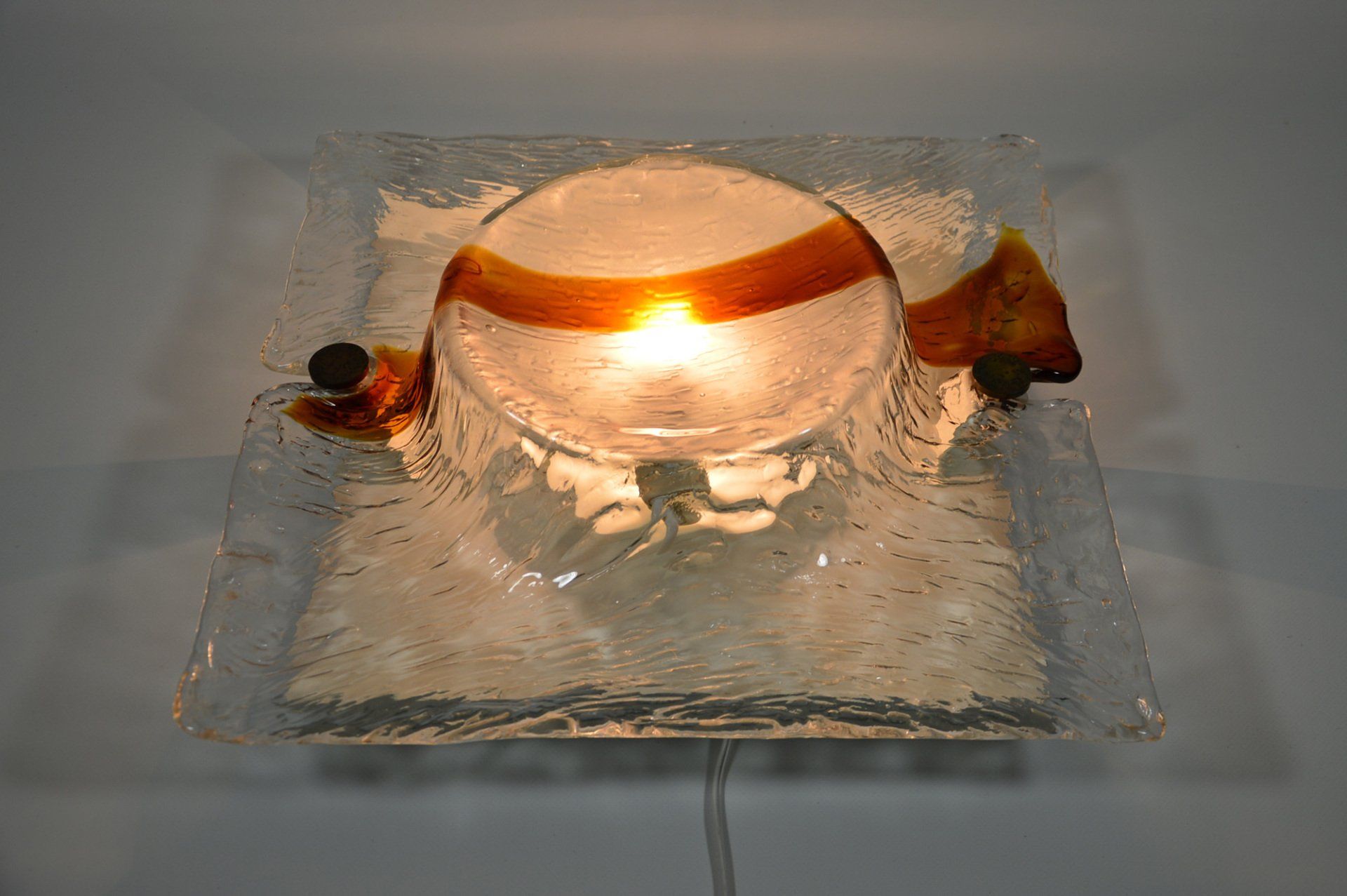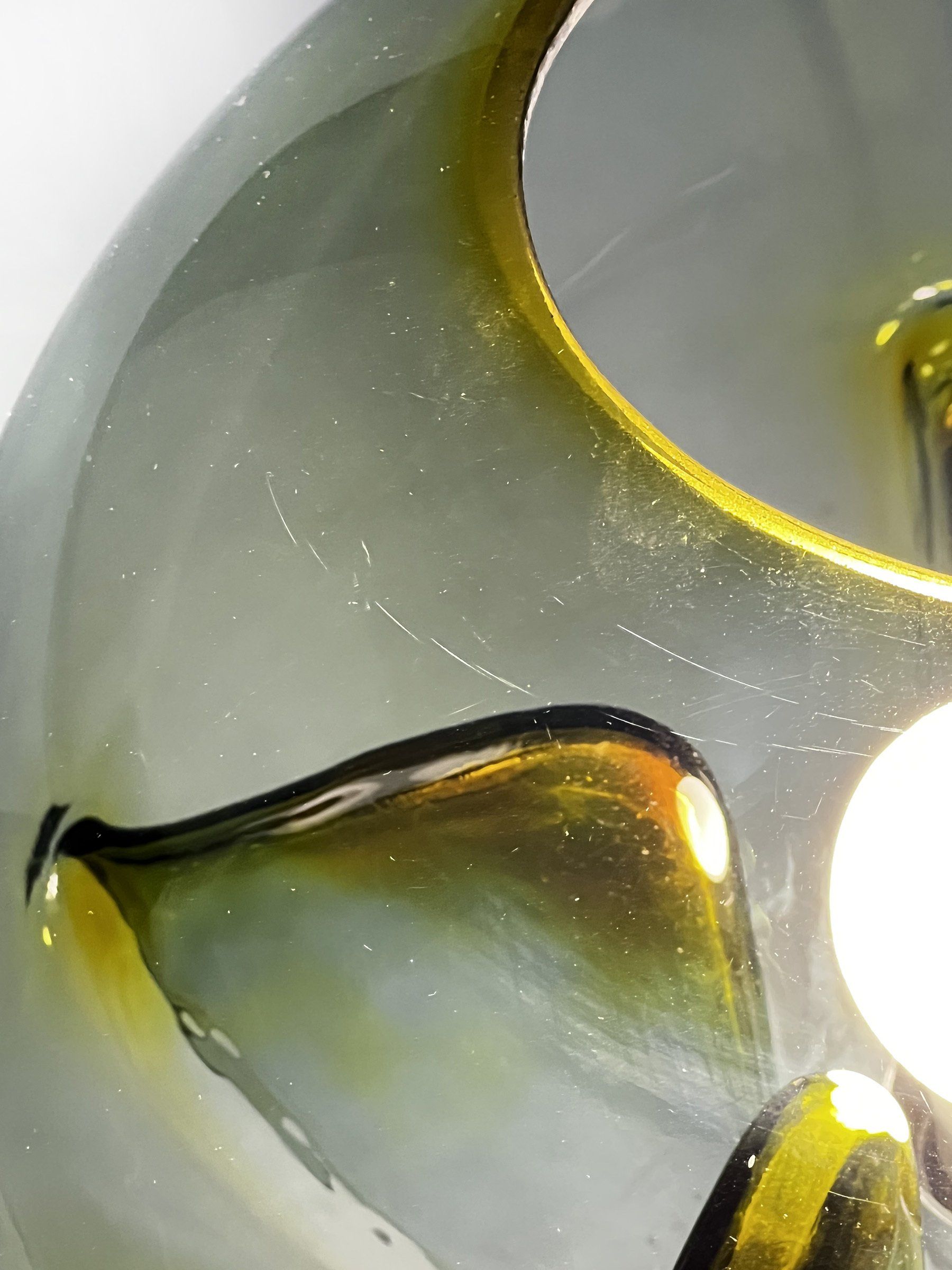 The lamp is in excellent condition apart from a few slight scratches visible when the lamp is switched on (see photo), the lamp plug has been replaced. The item is not marked- cm ø30x27h -