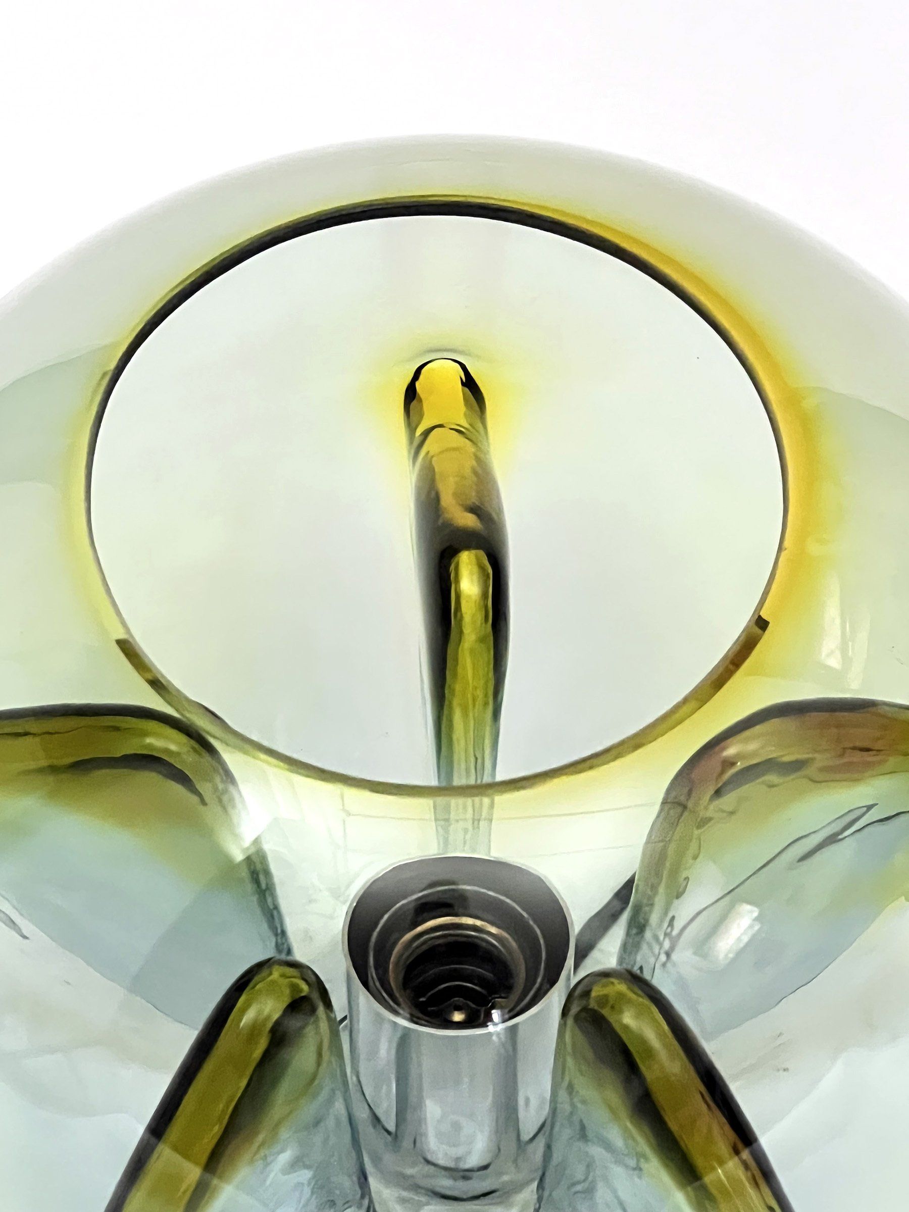 This is the coloured version with shades ranging from yellow to green and ending in a beautiful blue-grey, The lamp is in excellent condition apart from a few slight scratches visible when the lamp is switched on (see photo) - cm ø30x27h -