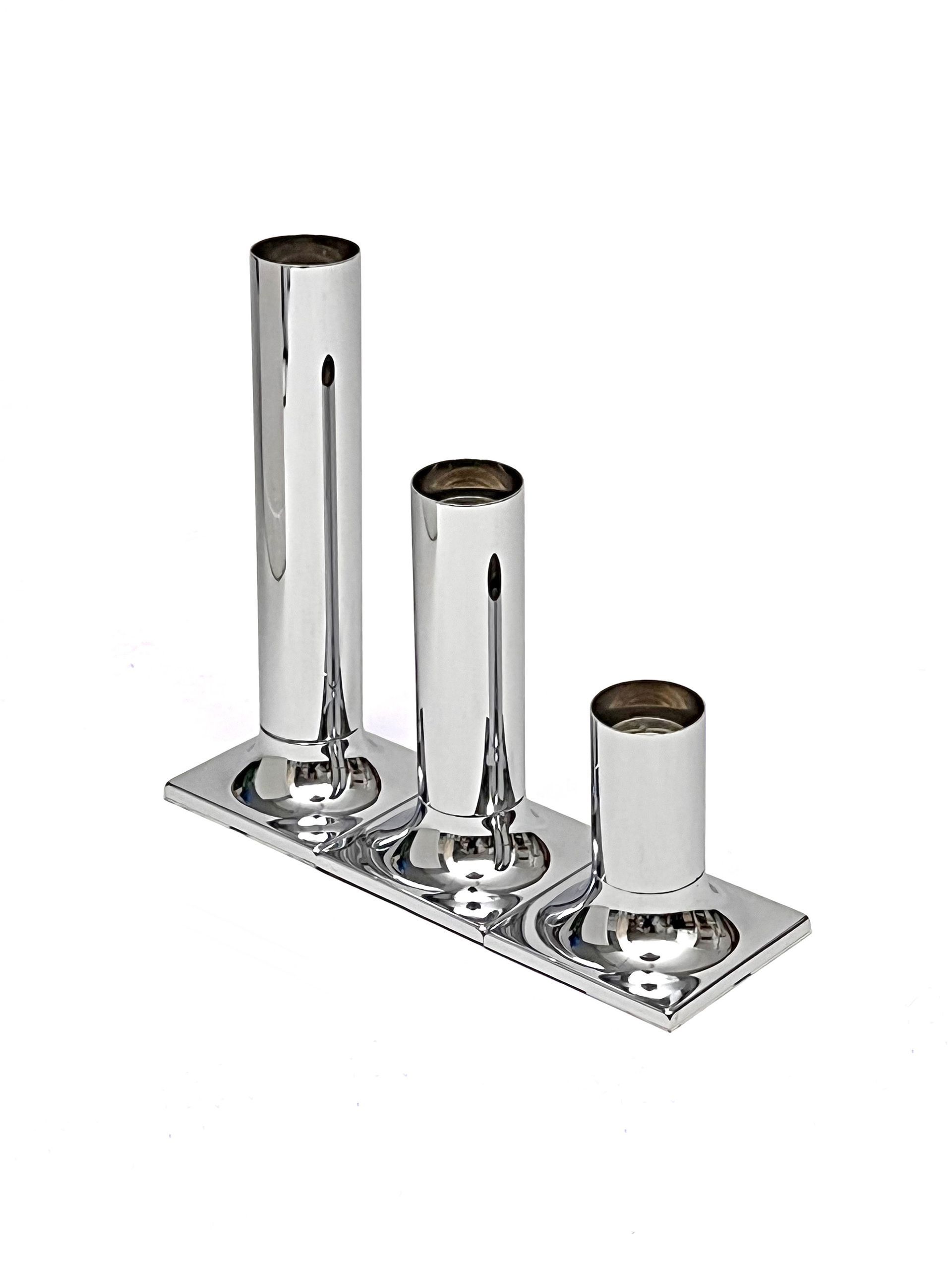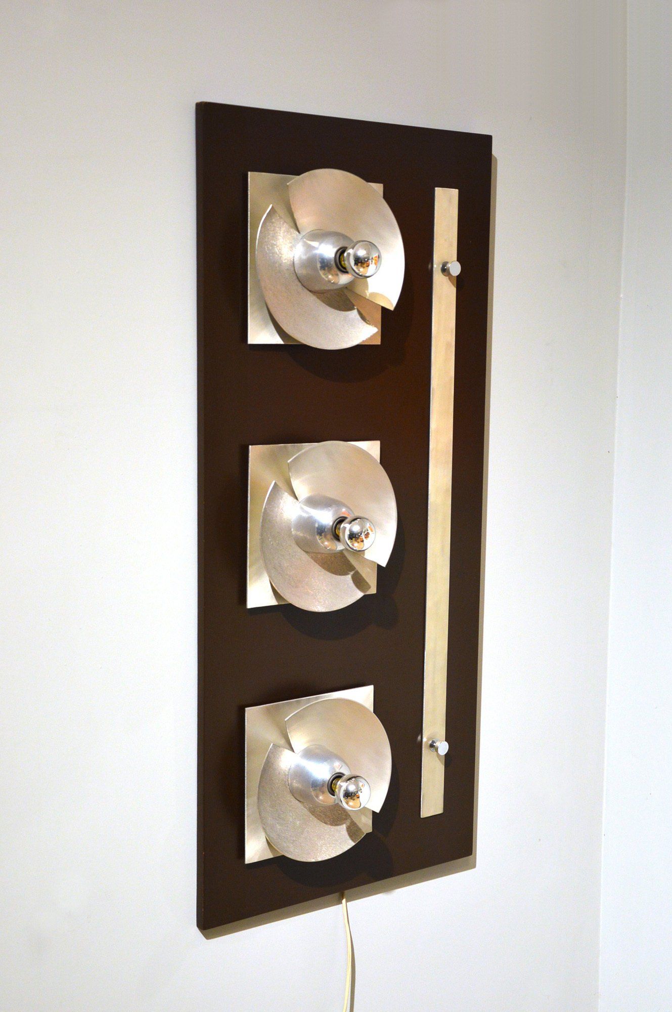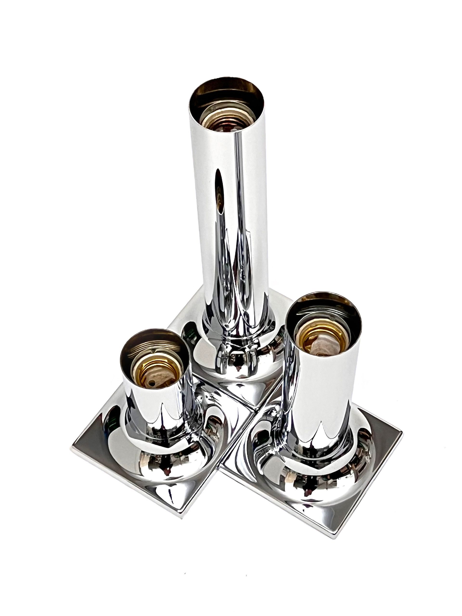 Trio of chromed metal spotlights produced by the german company Staff and designed by Rolf Krüger in 1966.