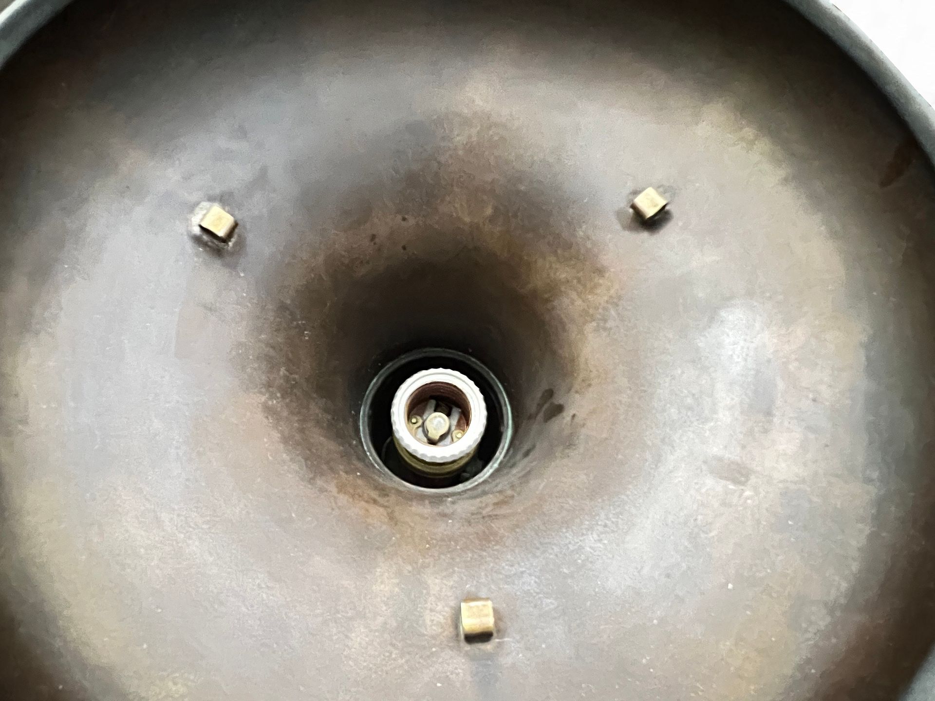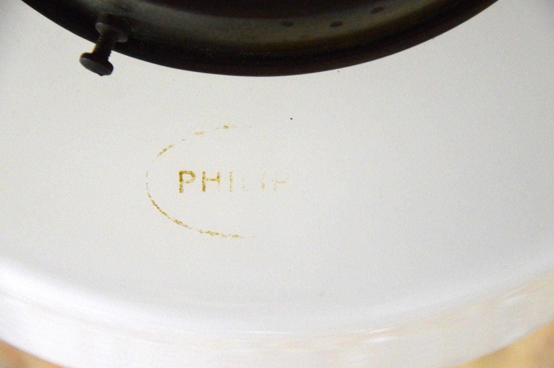 The lamp is in good condition, there are three small holes on the metal top cap, the reason for which is unclear - cm 60øx90h