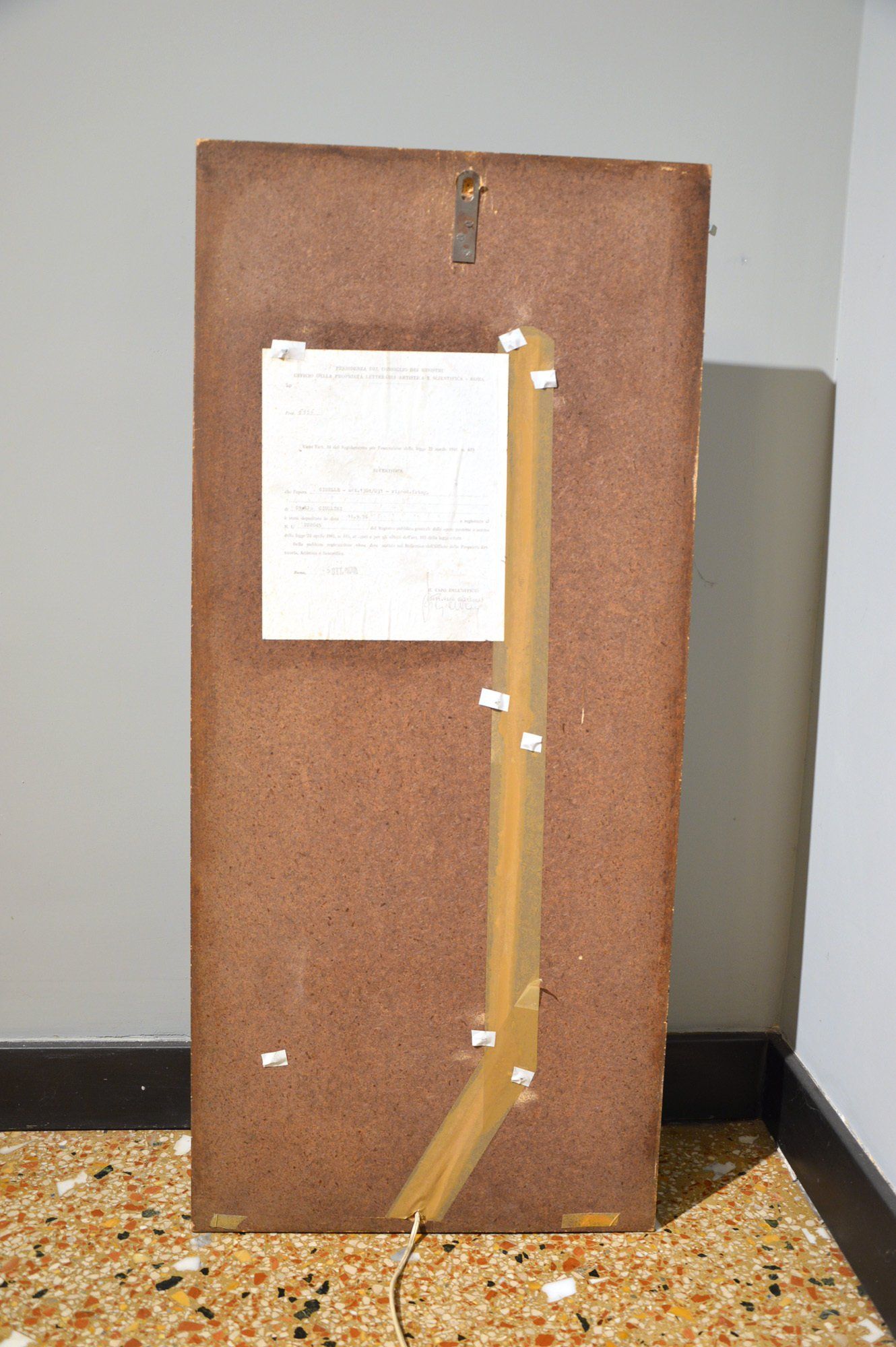 Bibliography: Catalogo Arteluce anni '70, p. 69; G. Gramigna, Repertorio del design italiano 1950-2000 volume 1, p.130. The object is in good original condition apart from some age-related oxidation spots visible on the brass rod. cm 50x65x165h