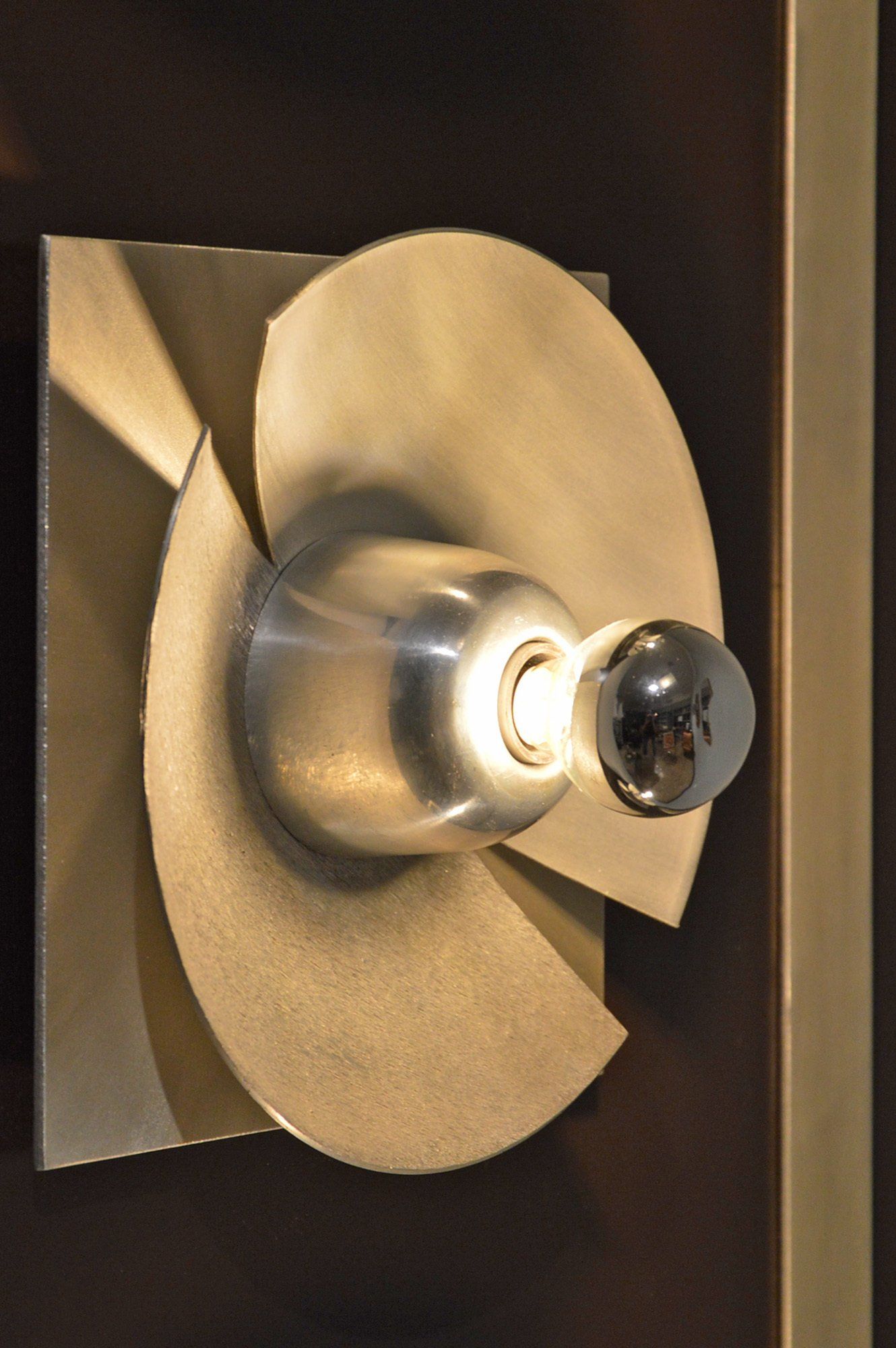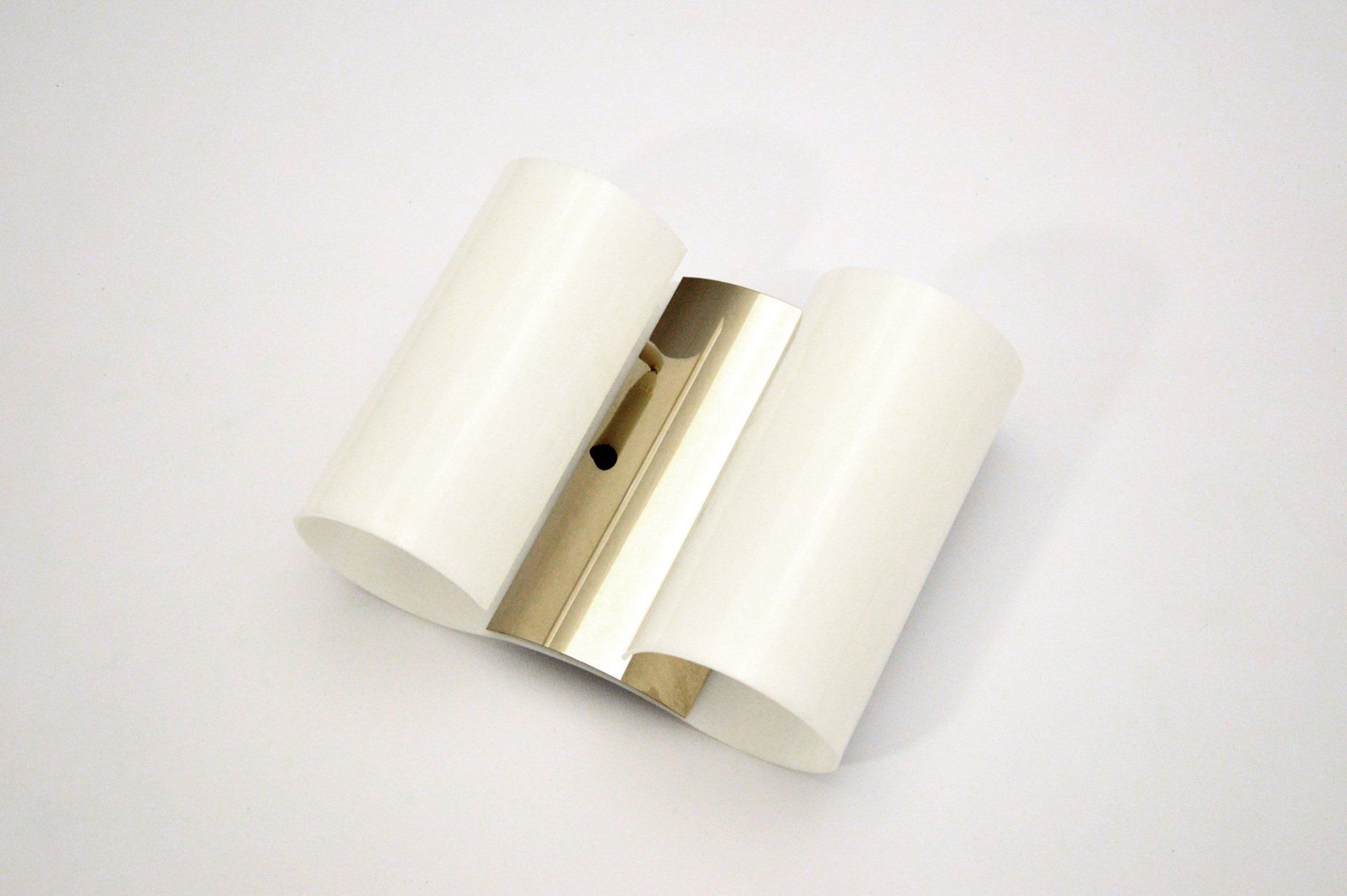 Methacrylate (Vedril Montecatini) with junction elements in satin and burnished nickel-plated brass.