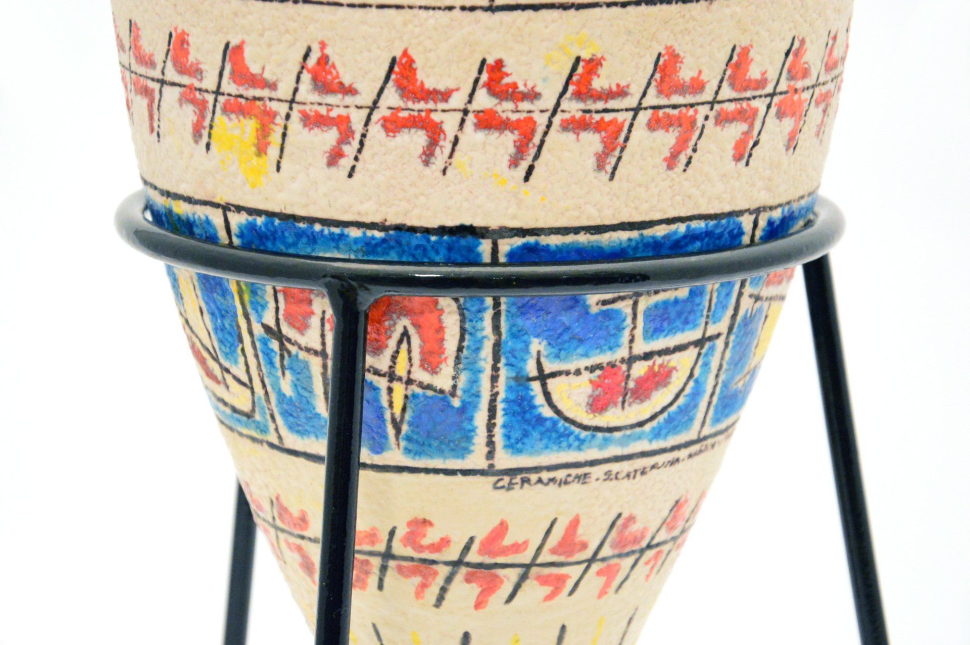 The 'Alba' lamp was designed by Ettore Sottsass for the electricity company Enel, this is a version made in only 100 signed and numbered pieces. In contrast to the current production lamp, which has a glass base, this version has a ceramic base while the blue sphere is still made of frosted glass. The lamp is in perfect condition and shows no signs of wear. Under the base the lamp is signed and numbered 75/100 and there is a label with the name of the designer, the year of production and the manufacturing company. - cm H32 x W16 x D16