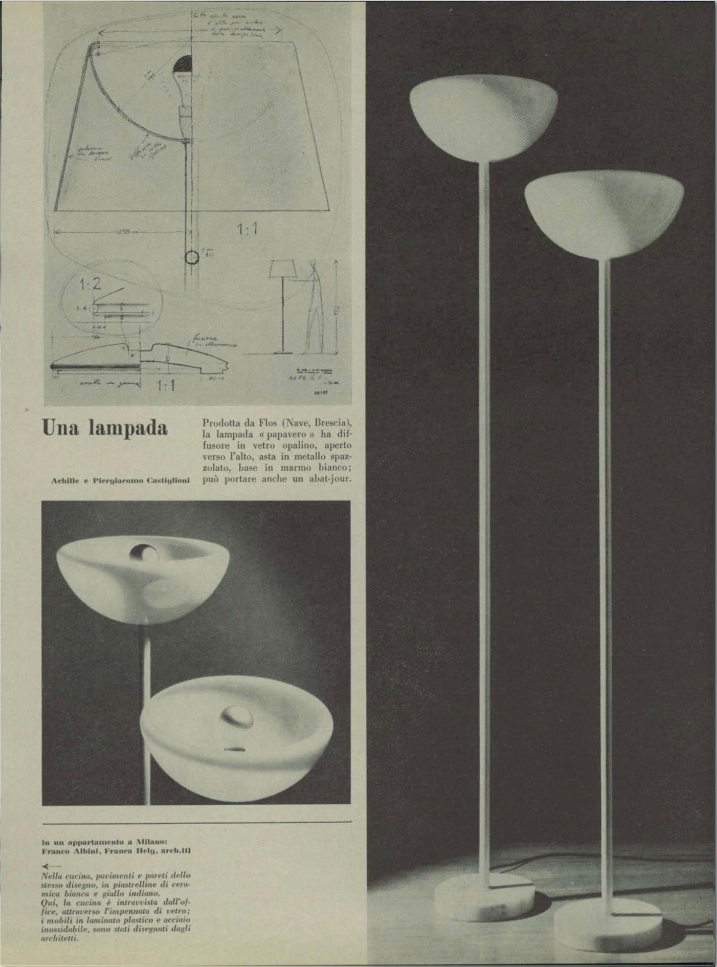 The lamp was published in Domus No. 242 of January 1950.