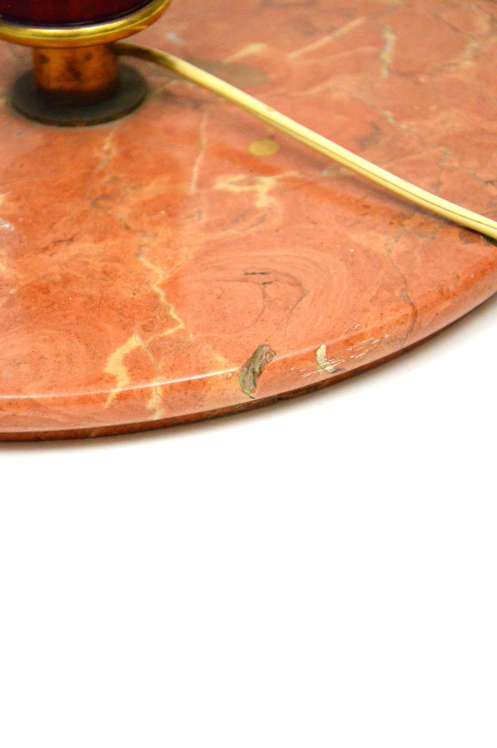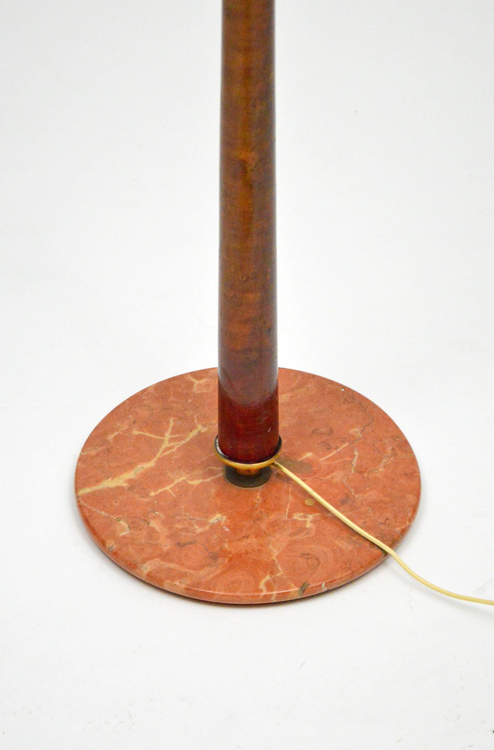 The lamp is in good condition, the cup holding the lampshade has been repainted externally. The brass retains its original patina. There is a chipping on the marble base visible in the photos - cm H176 x ø60