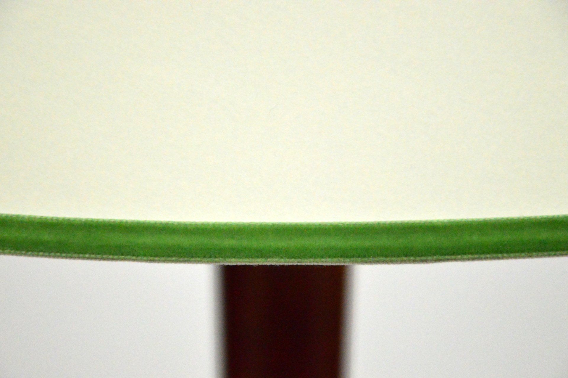 The floor lamp is one of the first lamps produced by Stilnovo. The base in this version is made of Verona marble, the shade was made new with a green velvet border.